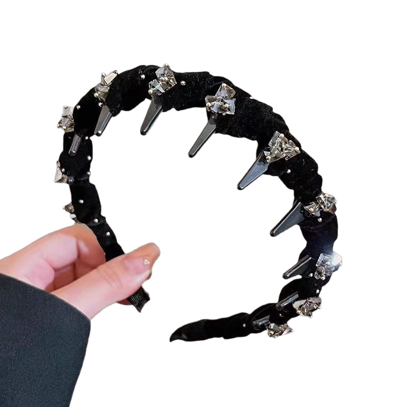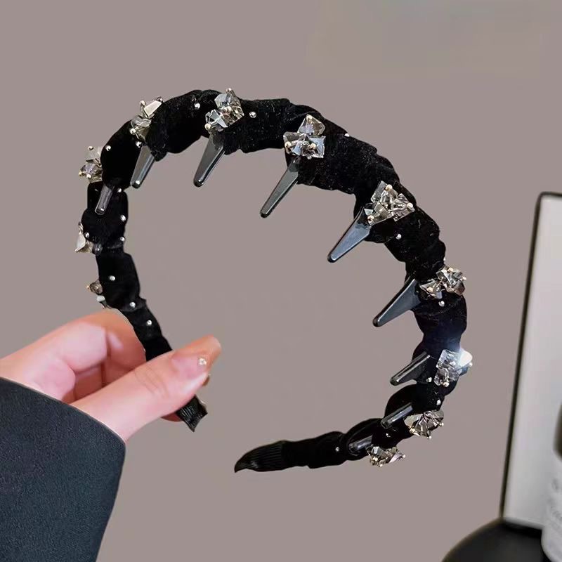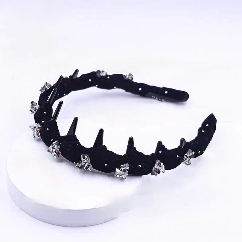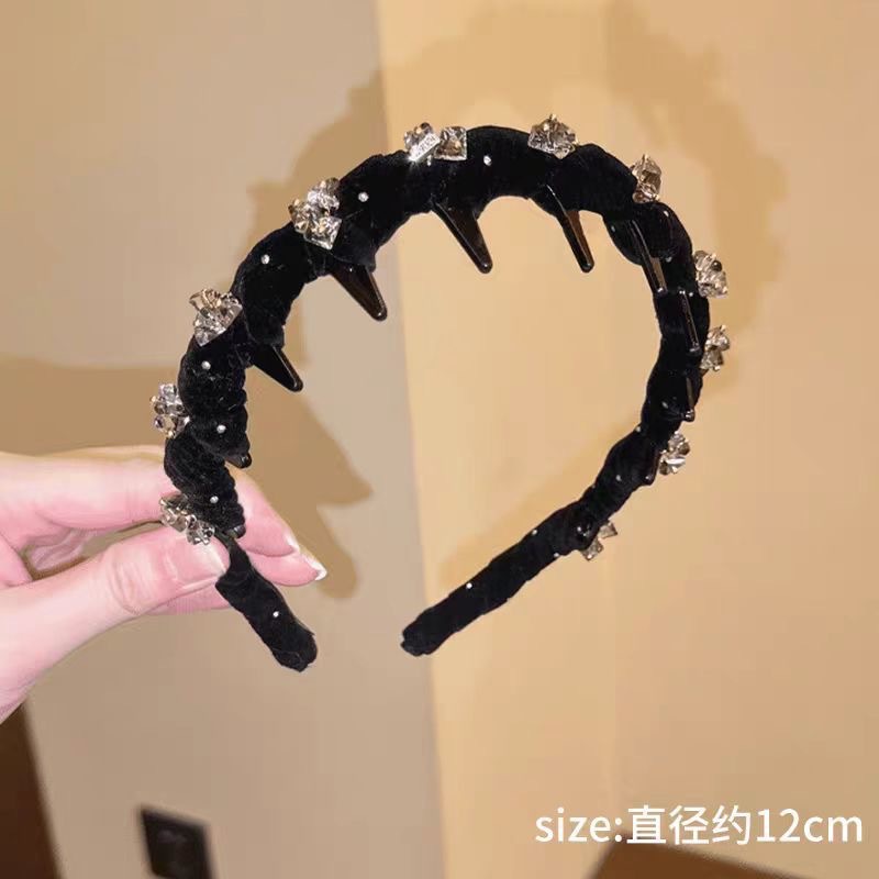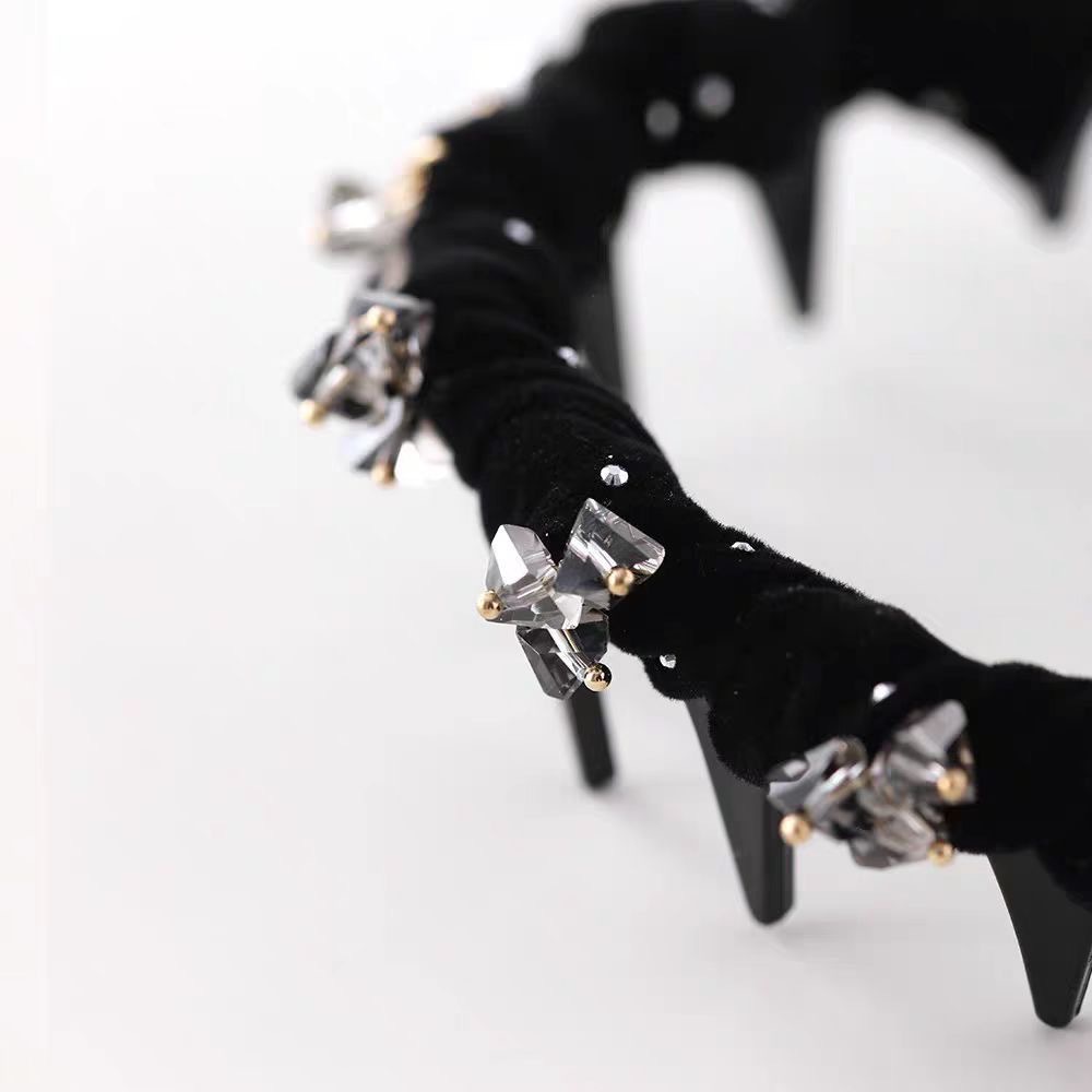 [high grade velvet rhinestone crystal headband] black artificial sewing