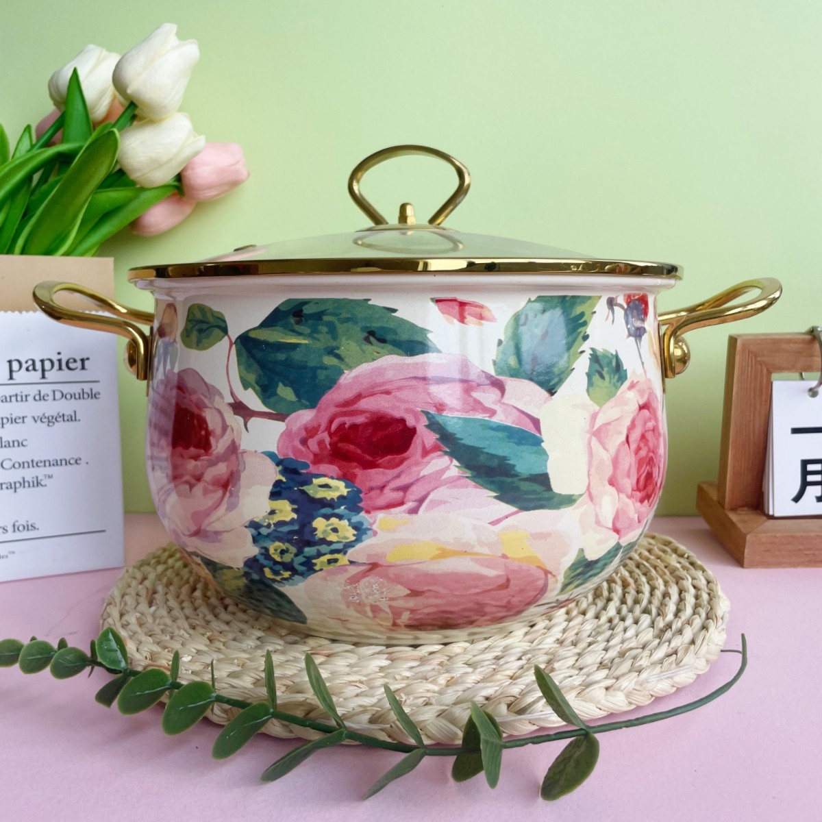24cm golden edge soup pot with luxuriant branches and leaves