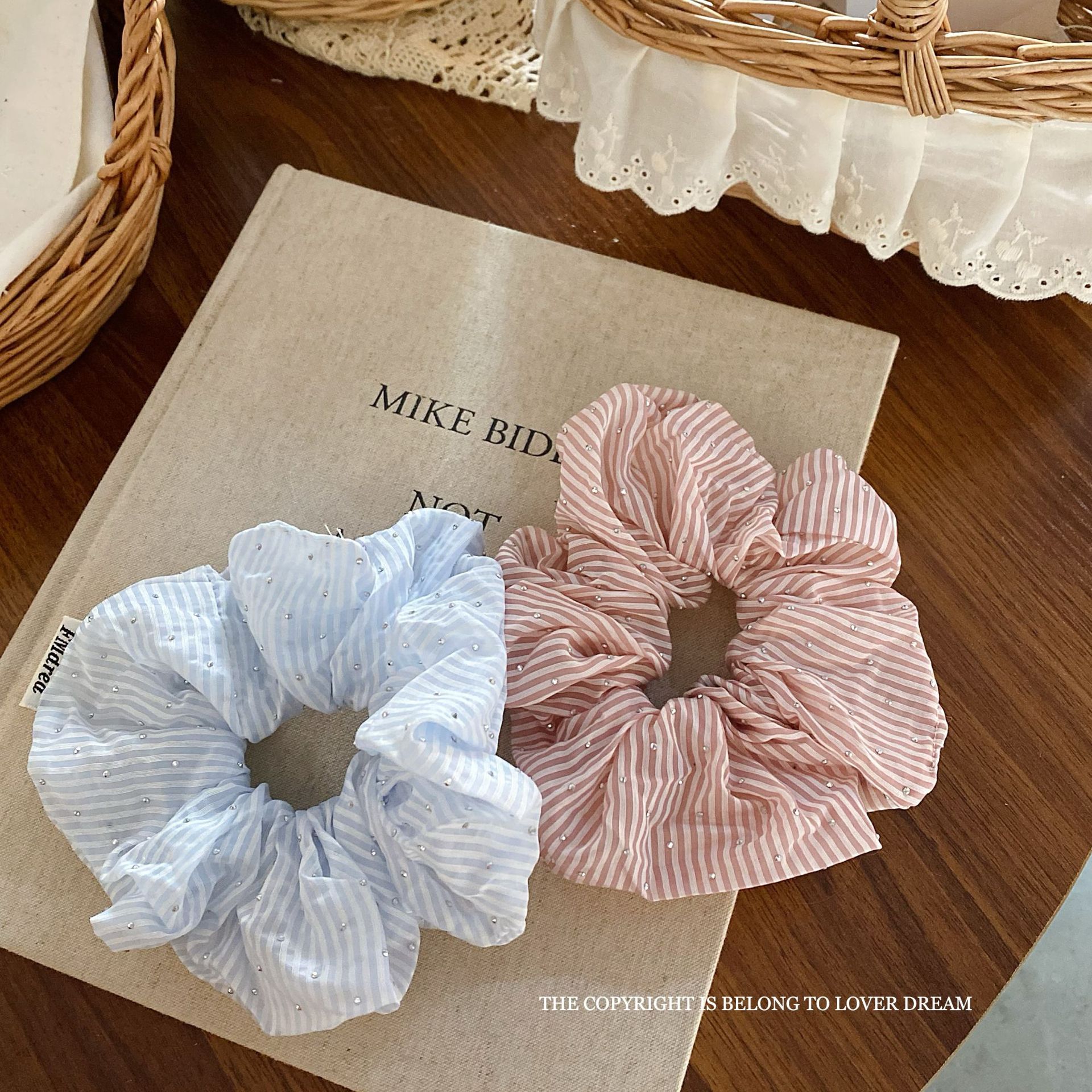 blingbling diamond blue striped hair ring large intestine ring