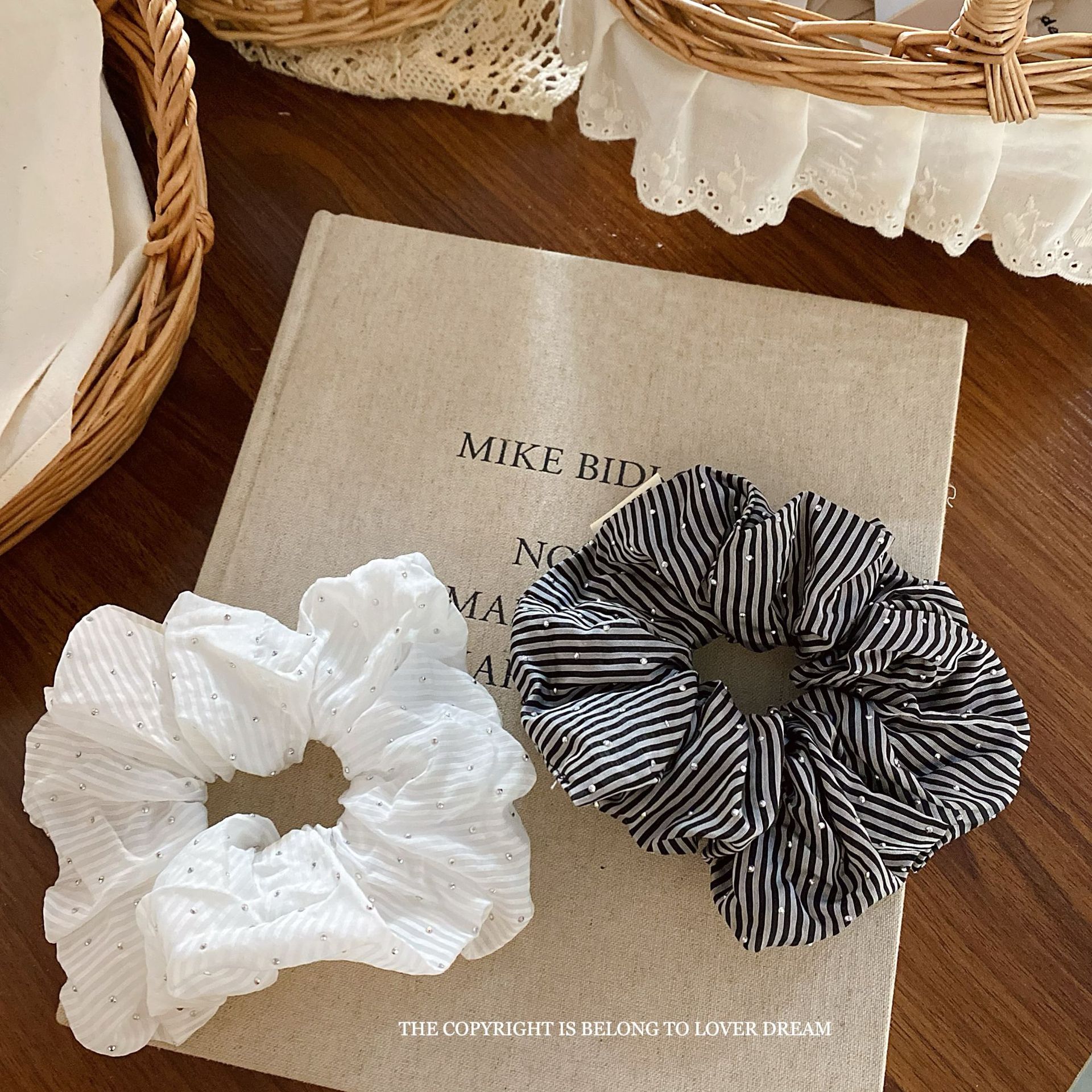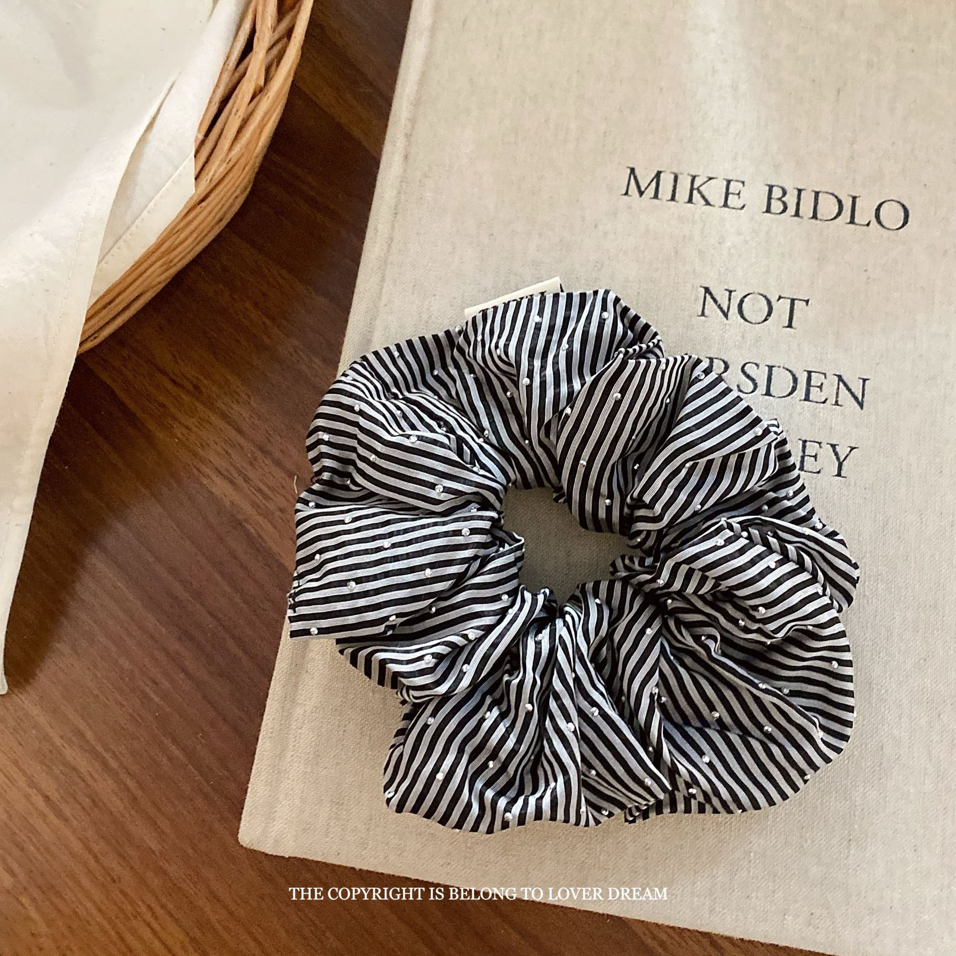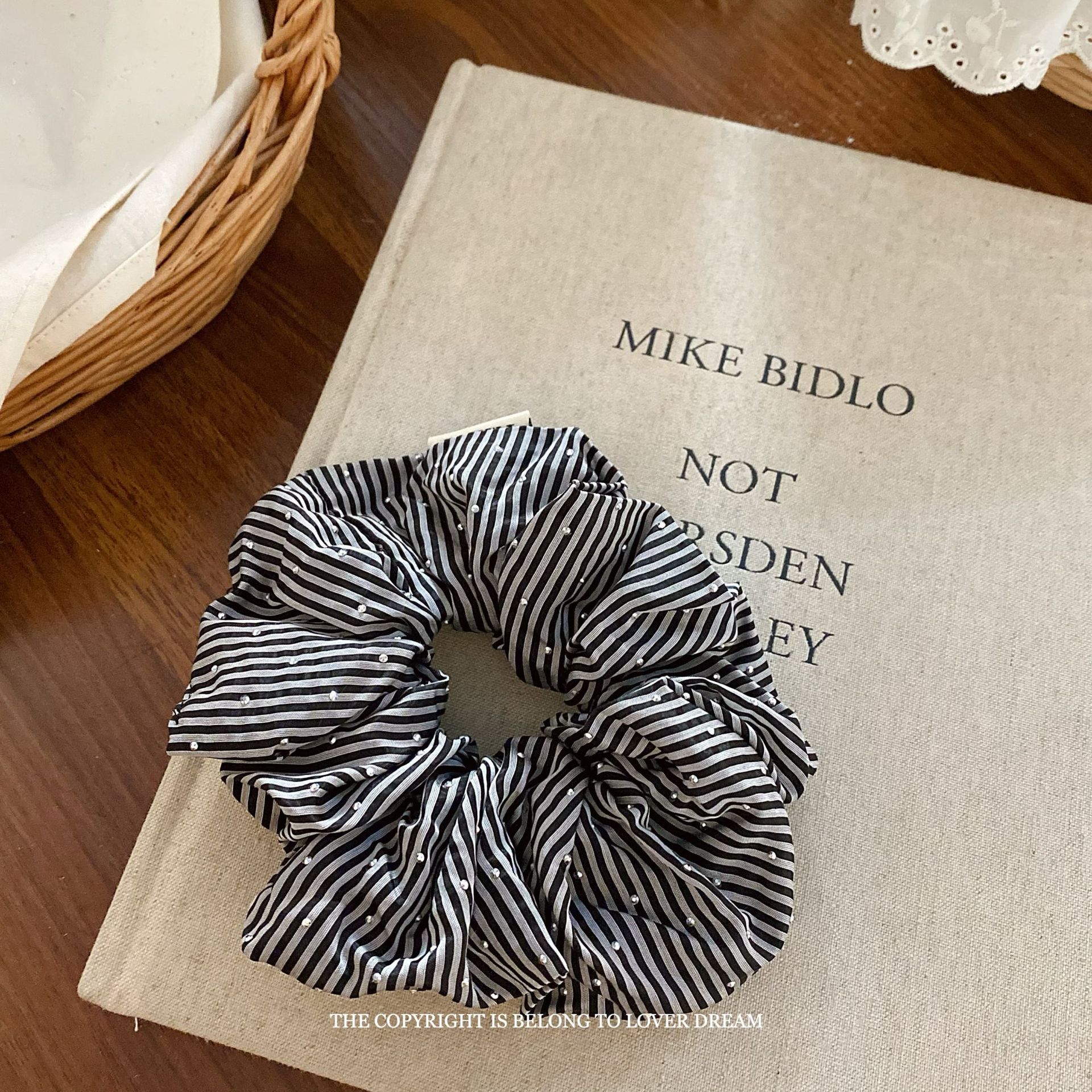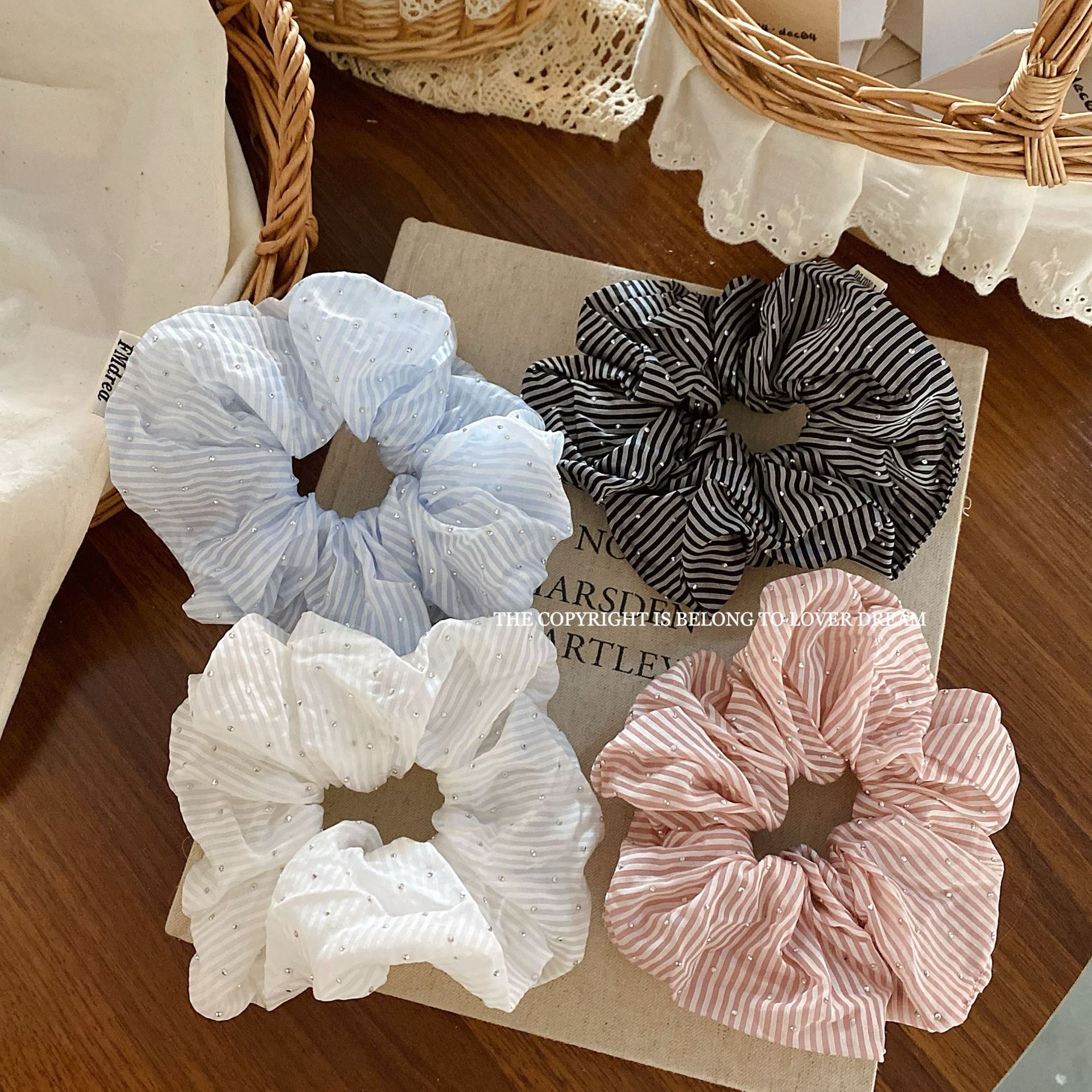 blingbling diamond black striped hair band large intestine ring