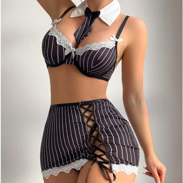 Product includes: tie + shirt + skirt (does not include socks).