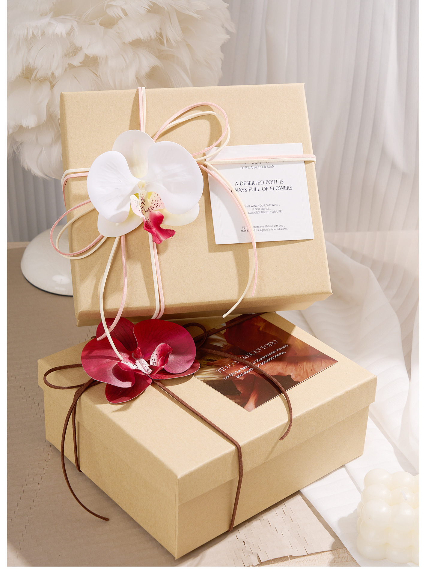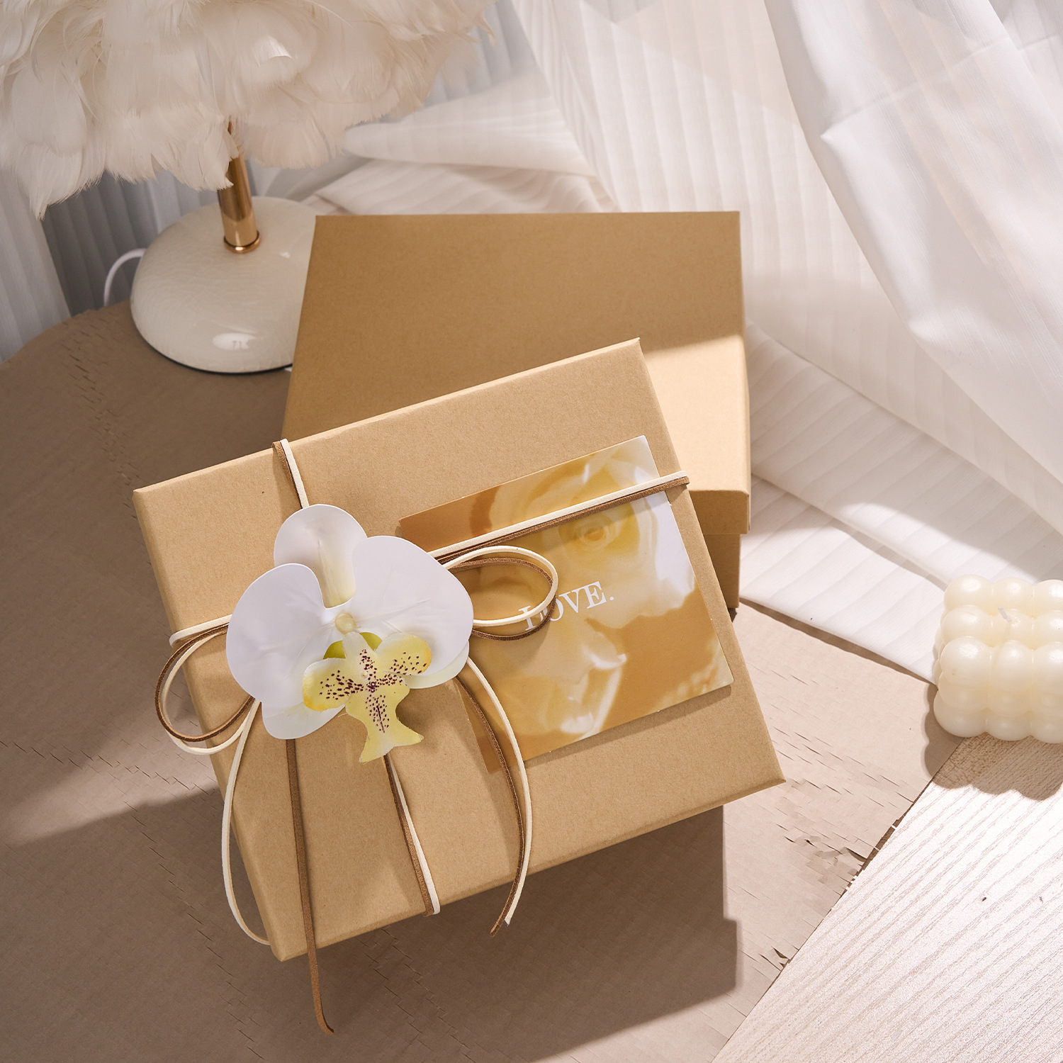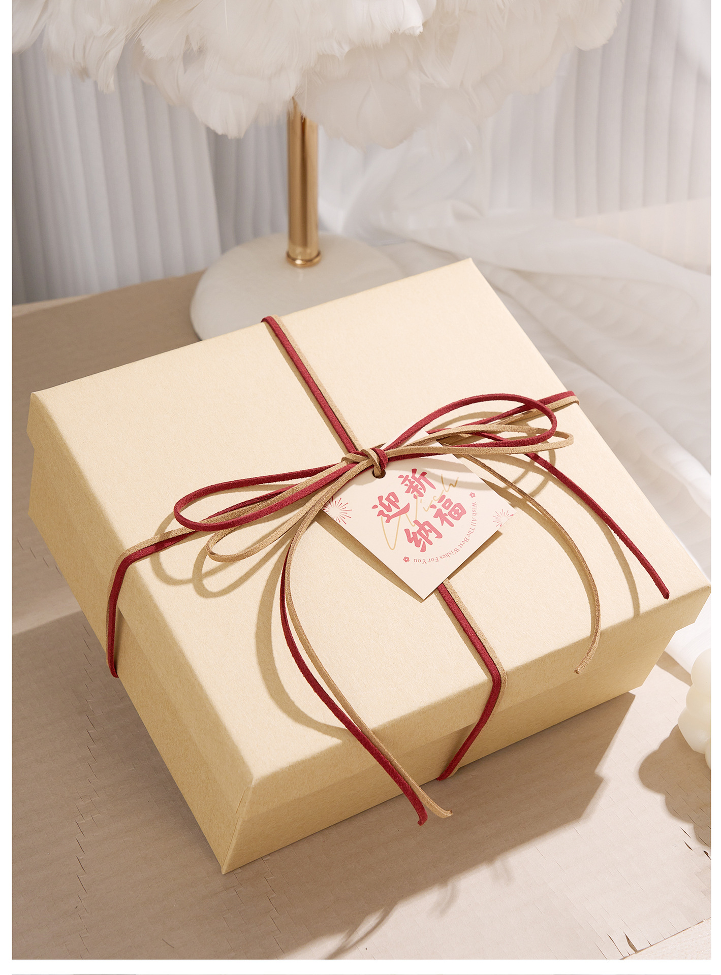 cowhide-colored gift box (accessories not included); 20cm long, 18cm wide, 8cm high.