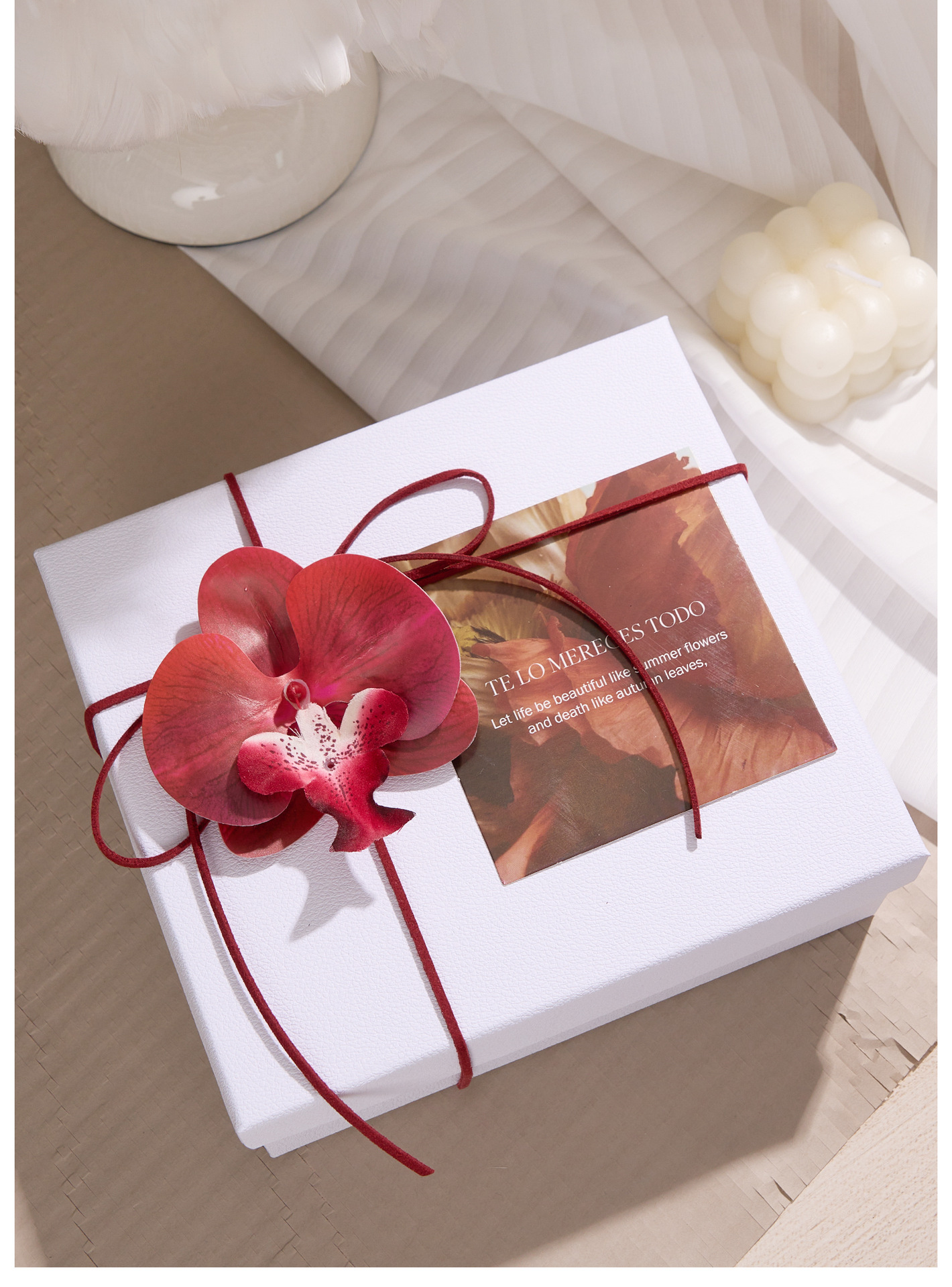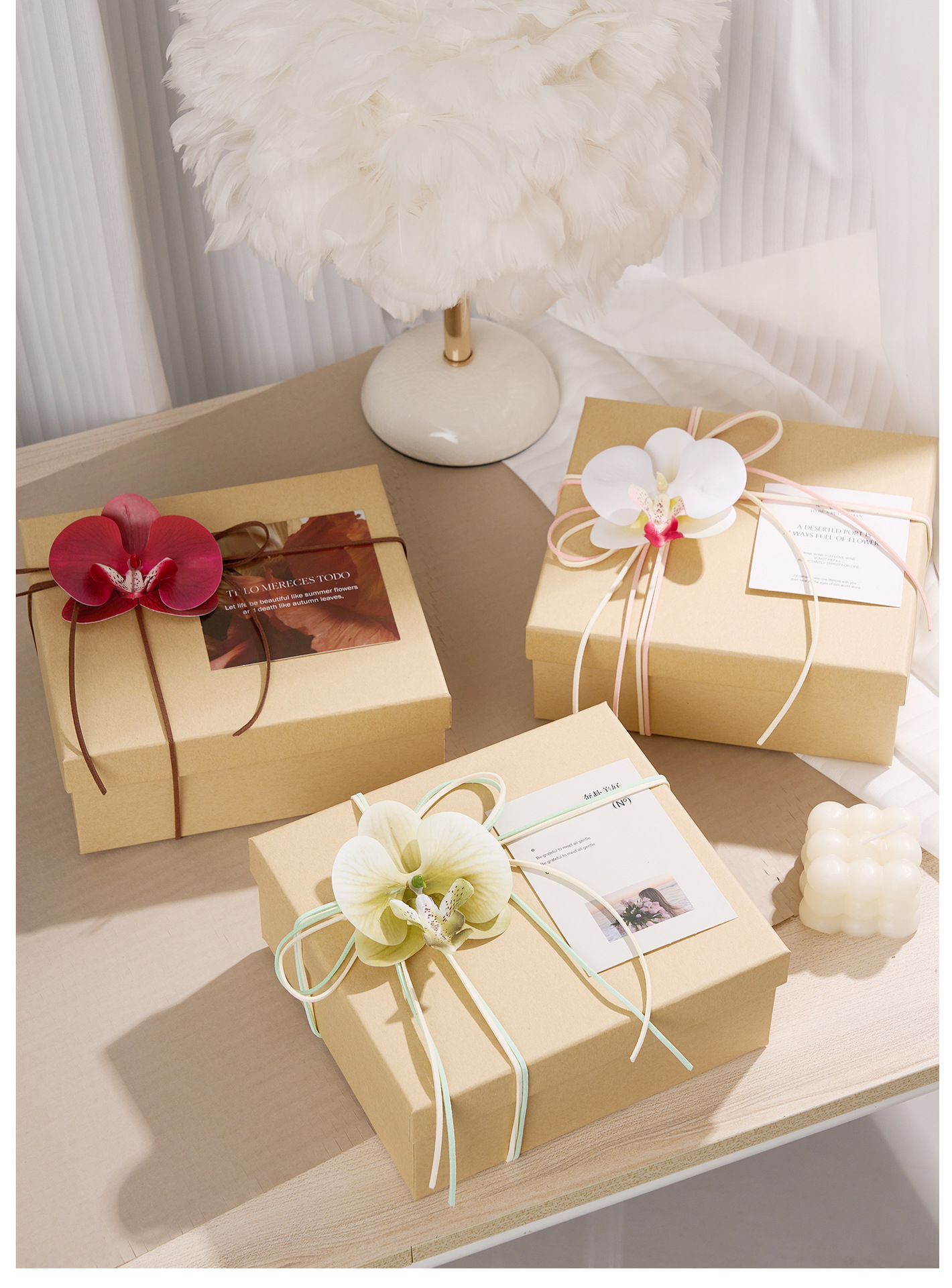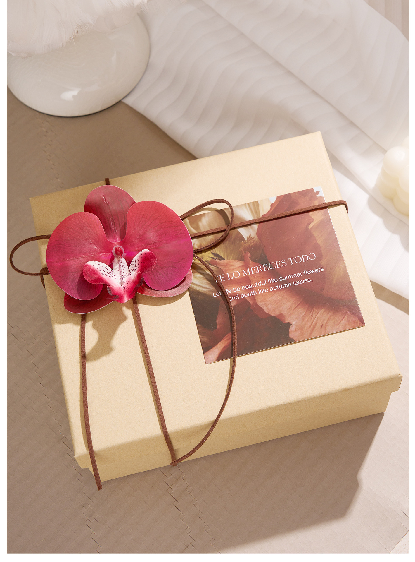 cowhide-colored gift box (accessories not included); 20cm long, 18cm wide, 8cm high.