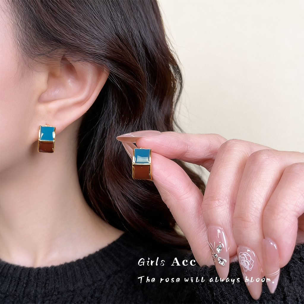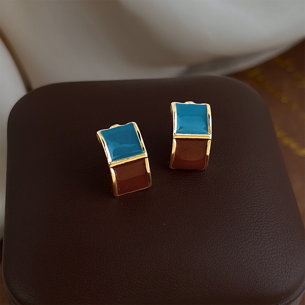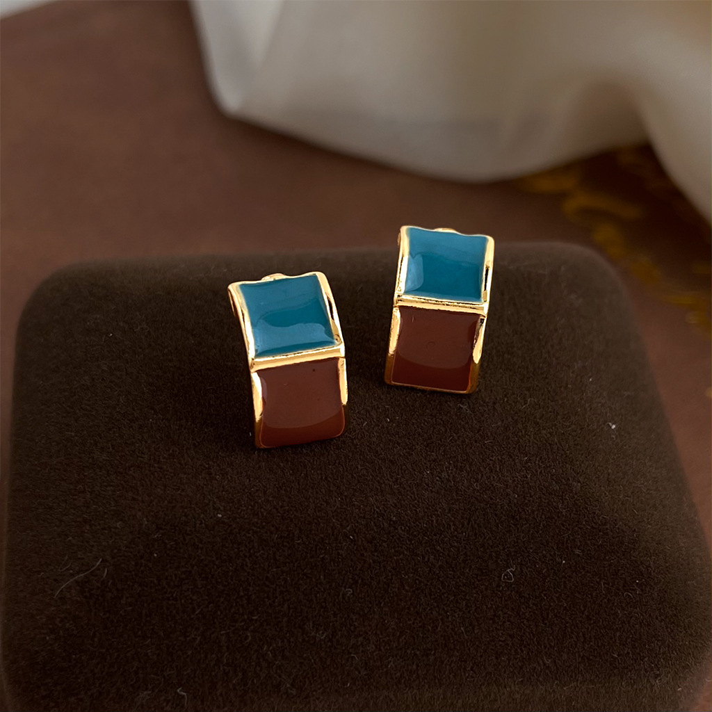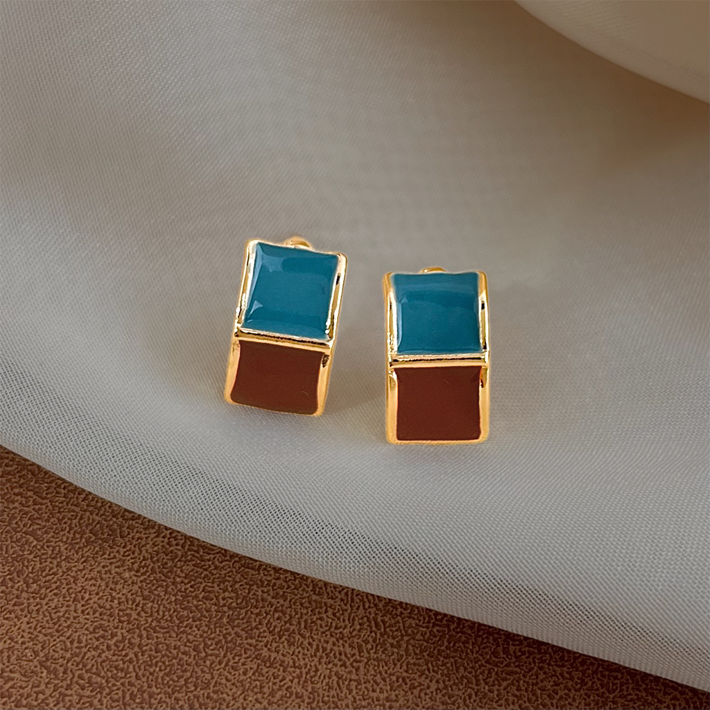 brown blue contrast earrings