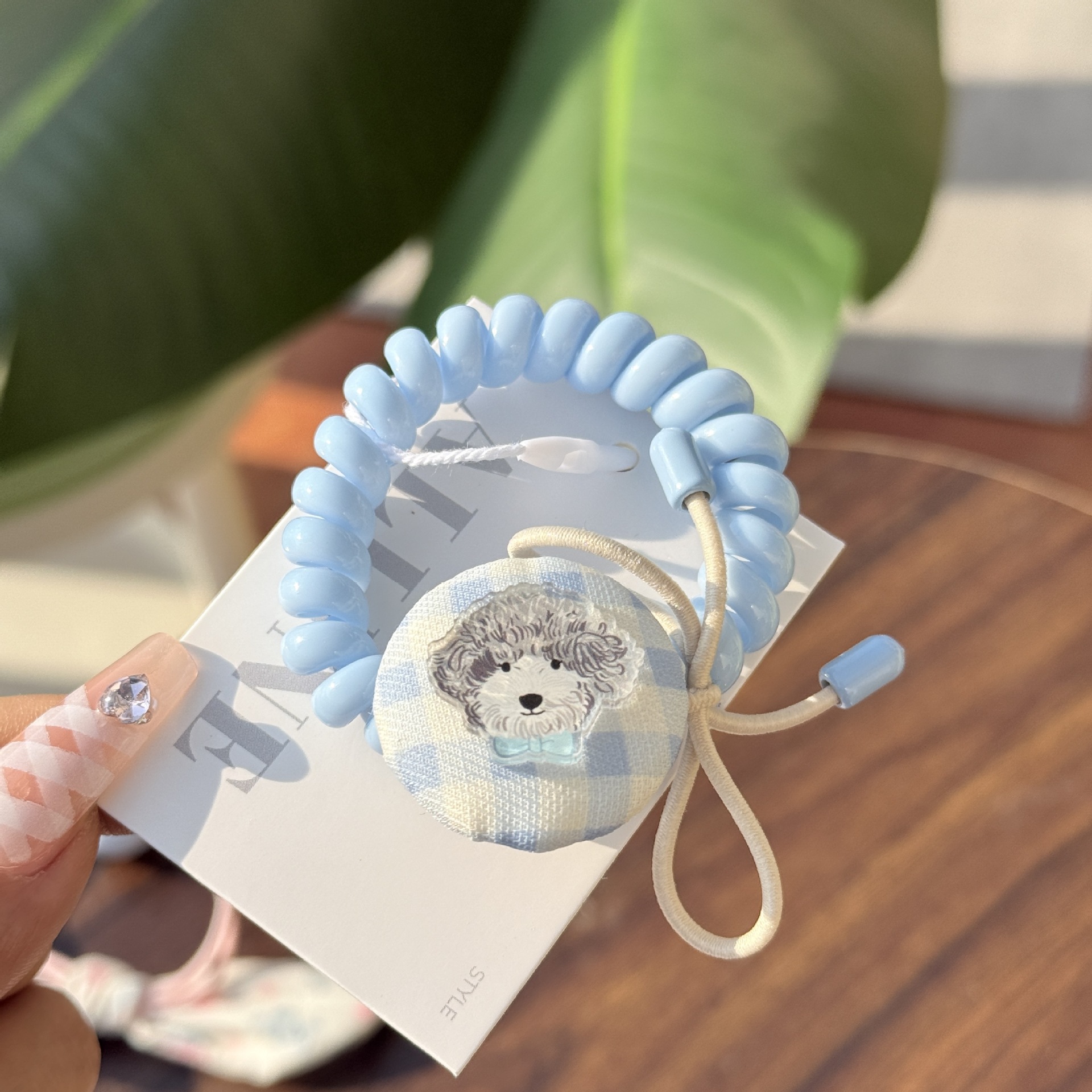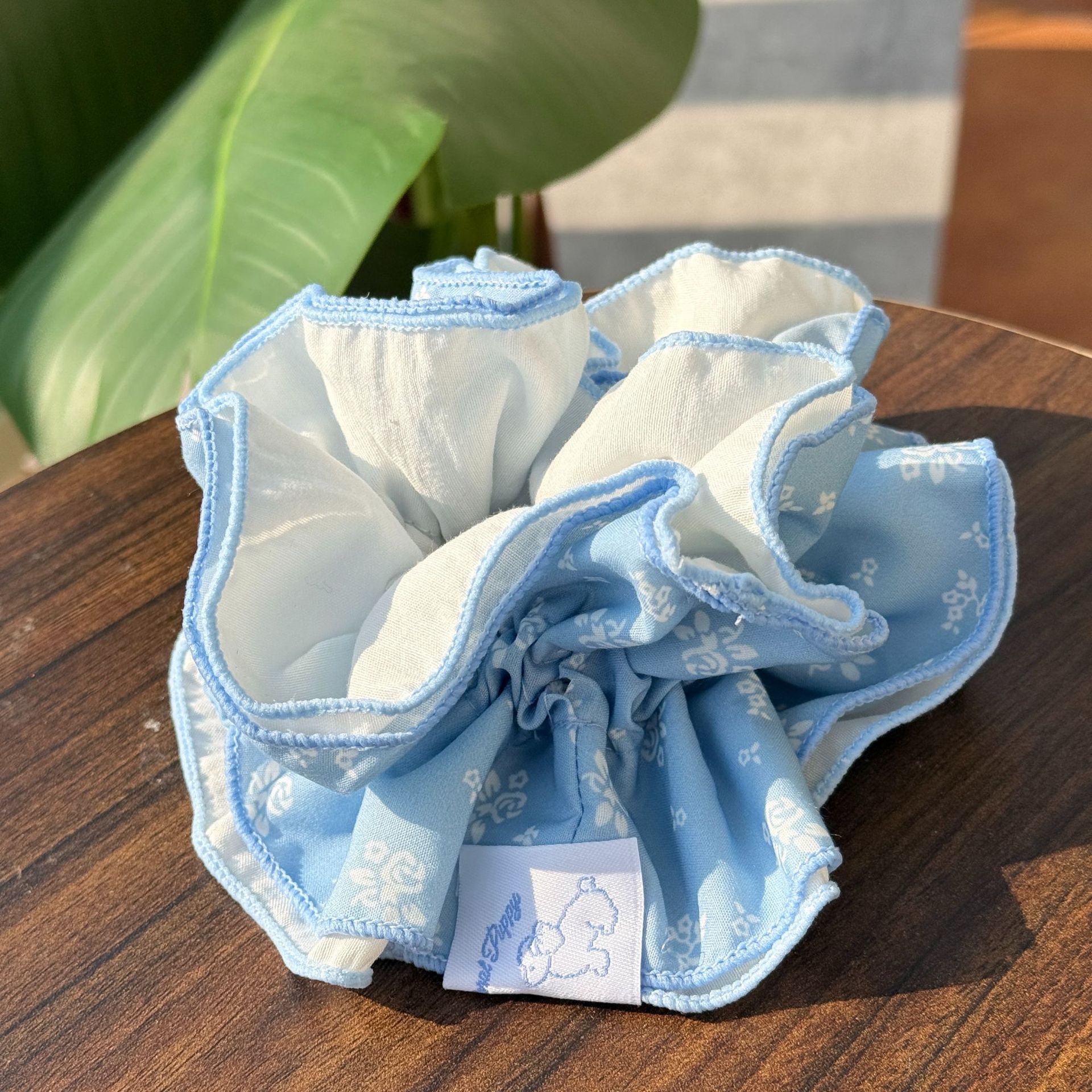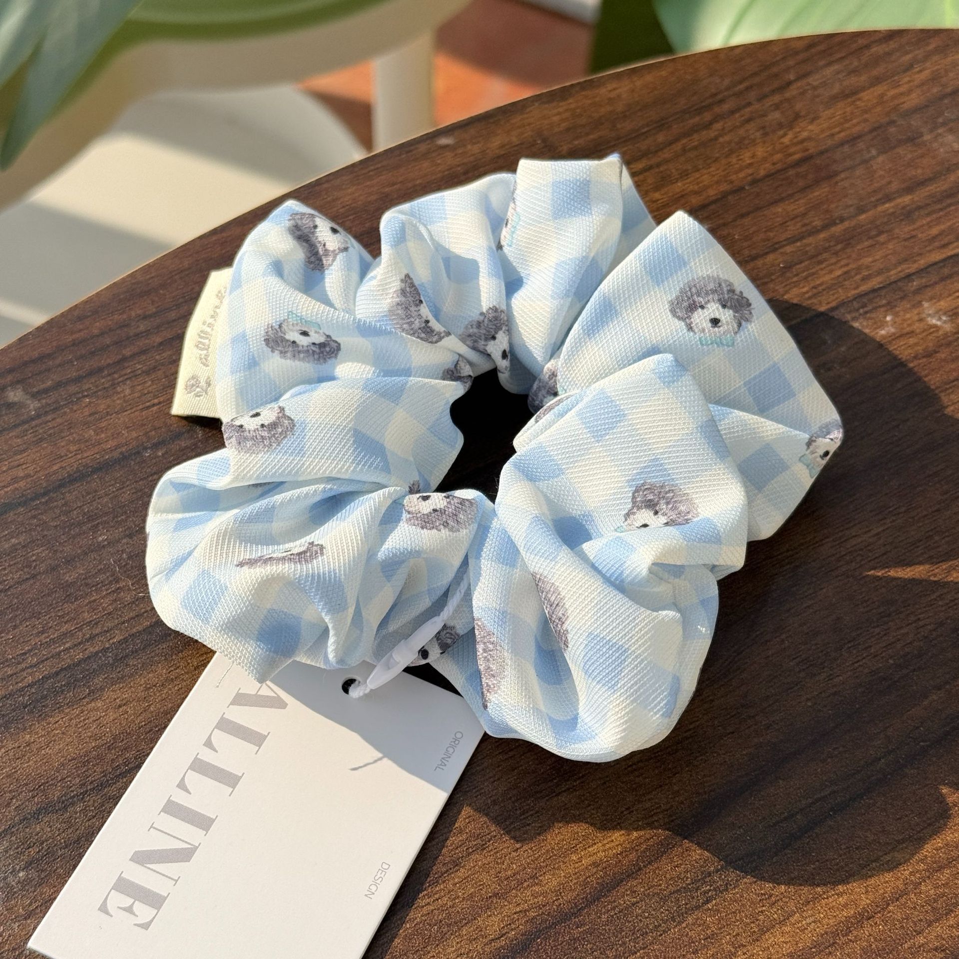 blue plaid teddy pleated hair ring