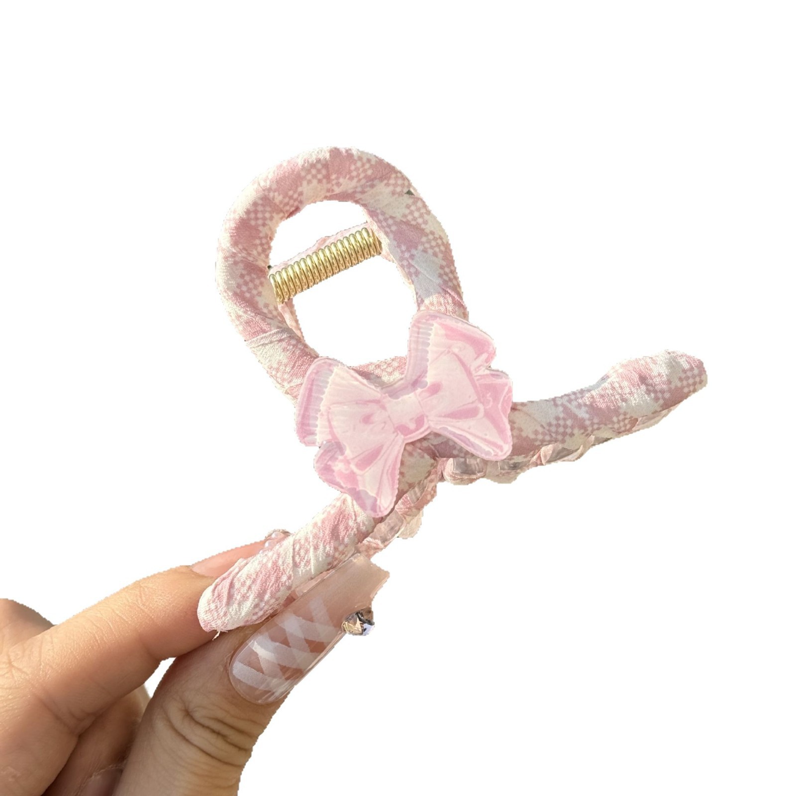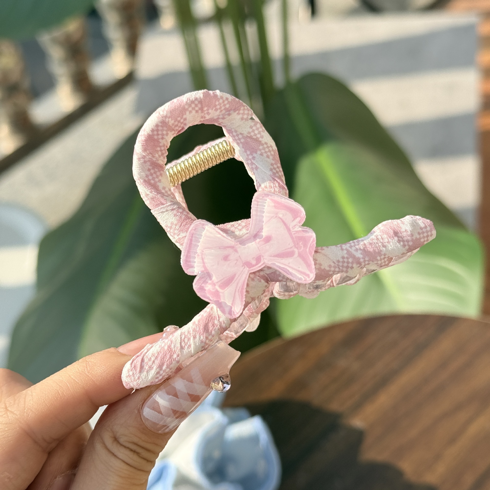 pink plaid bow clip