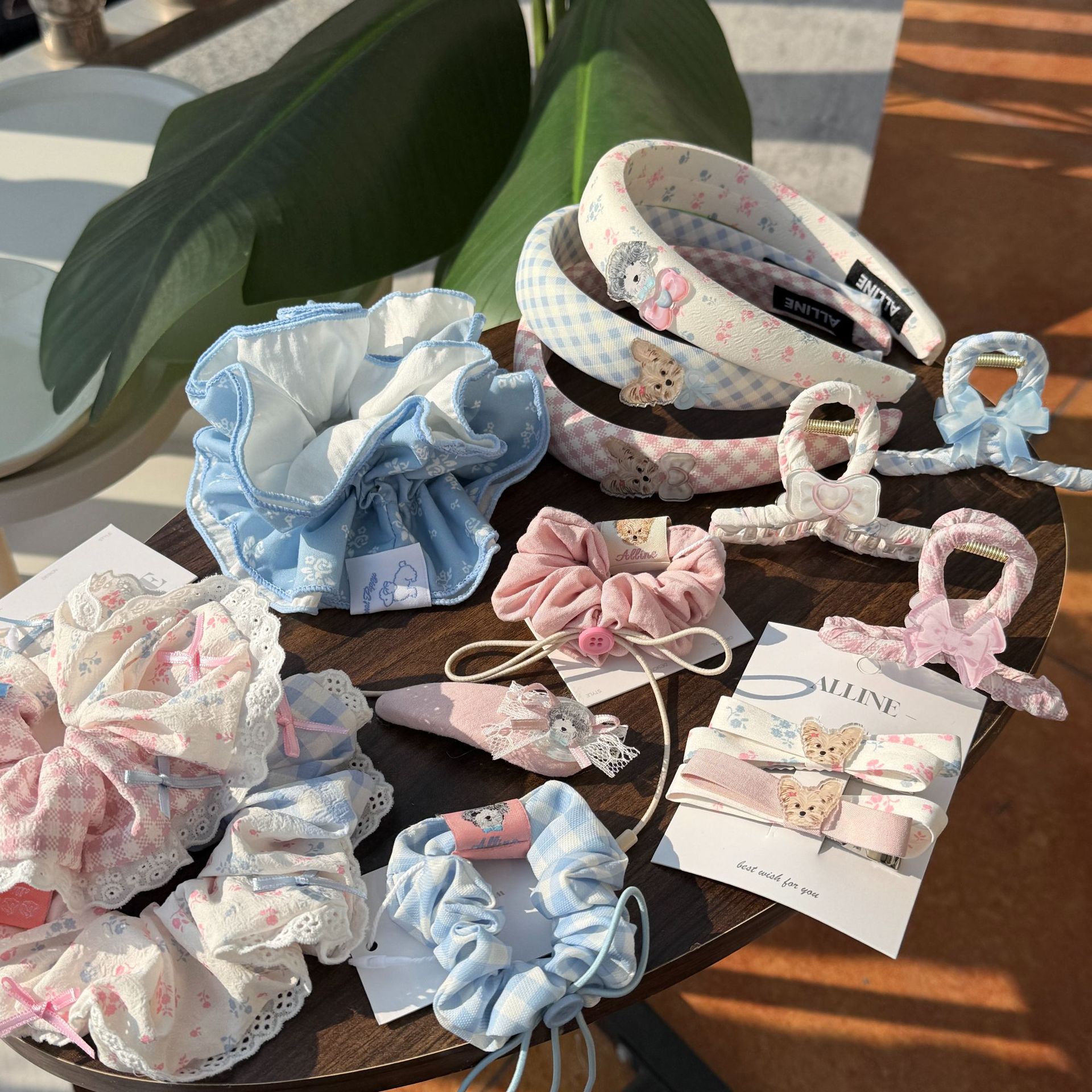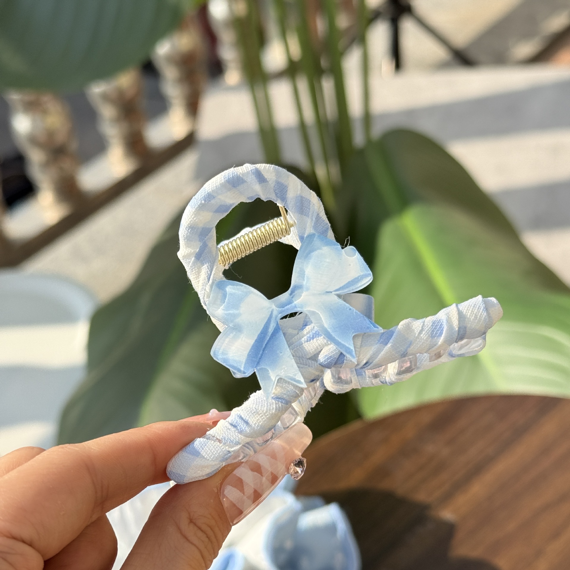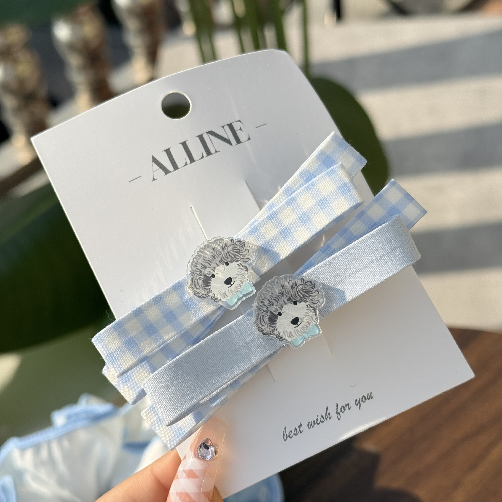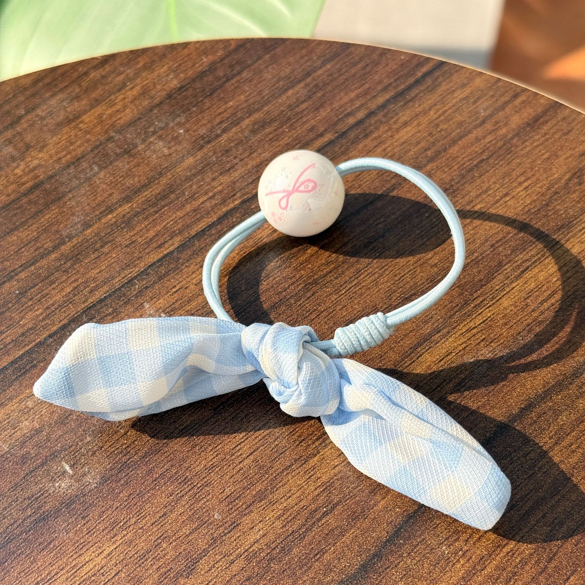 bow round beads-irregular bow-blue plaid hair rope
