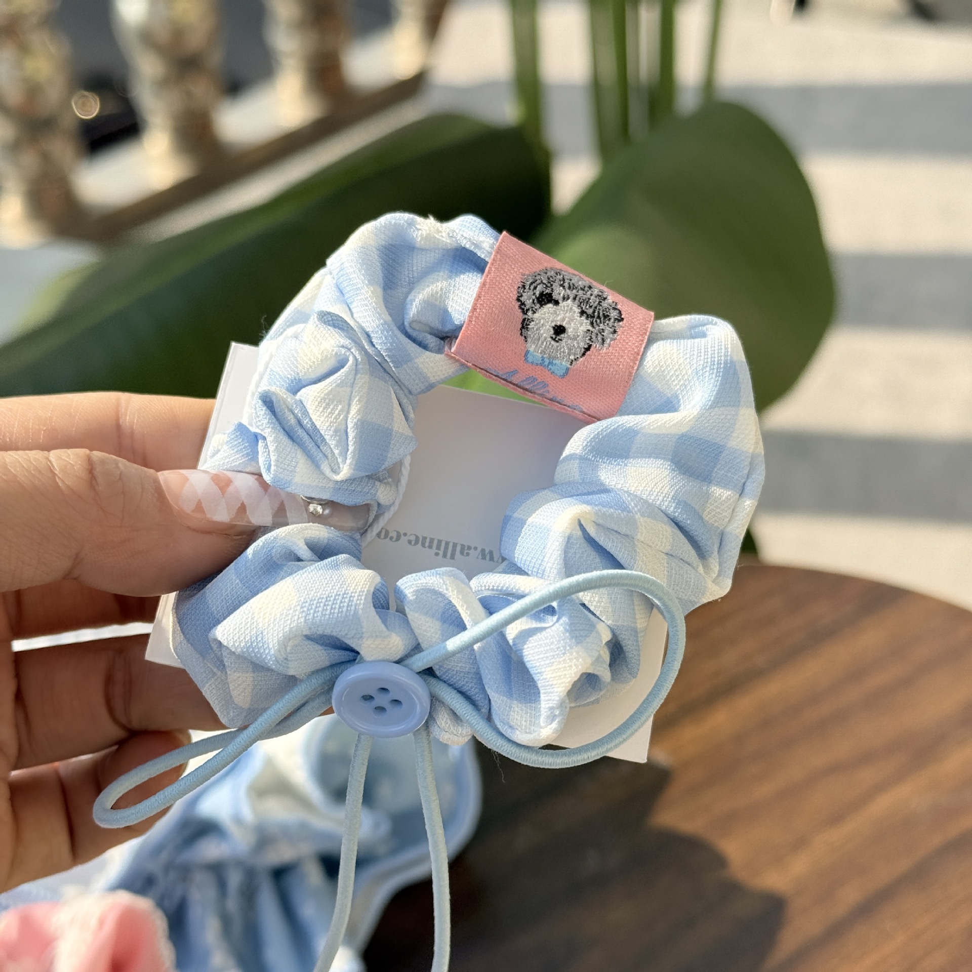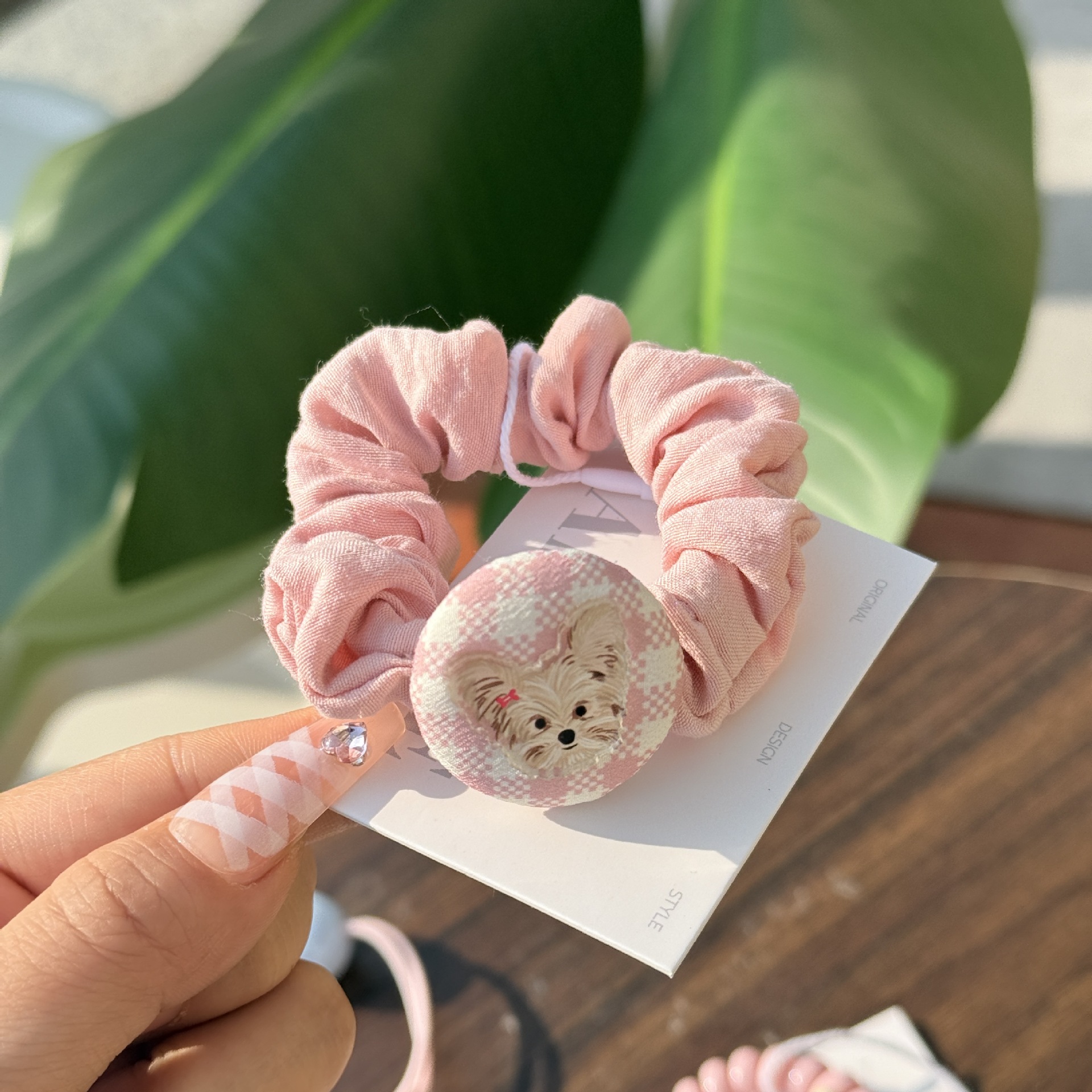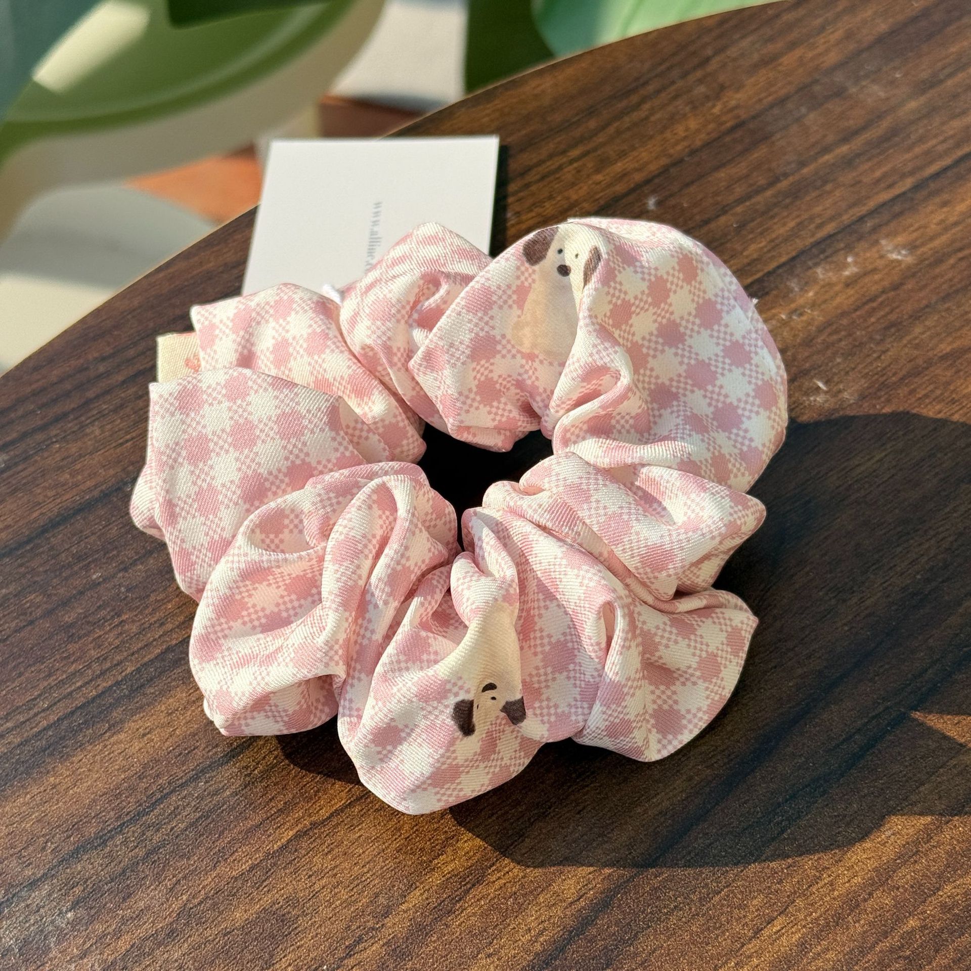 pink plaid dog pleated hair ring