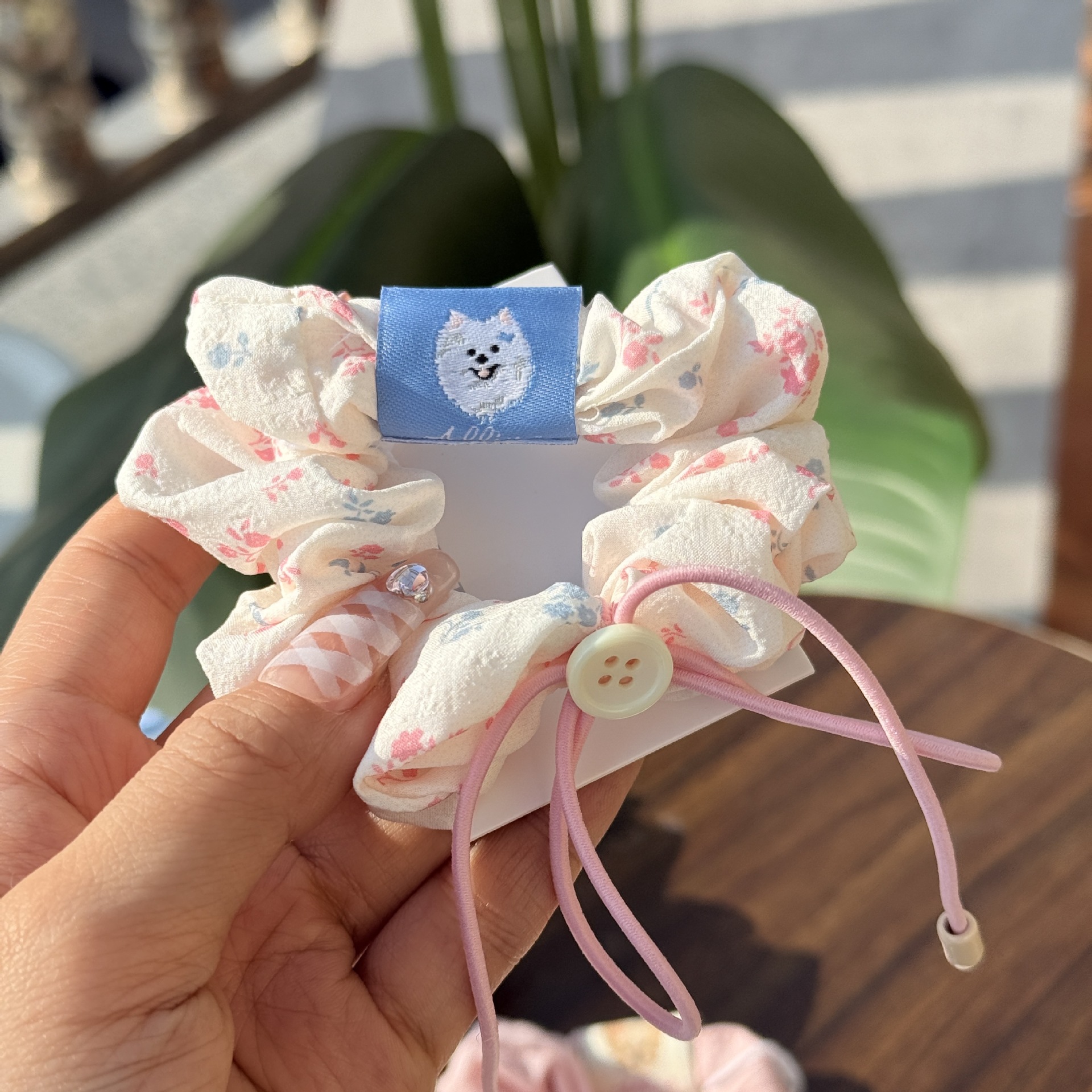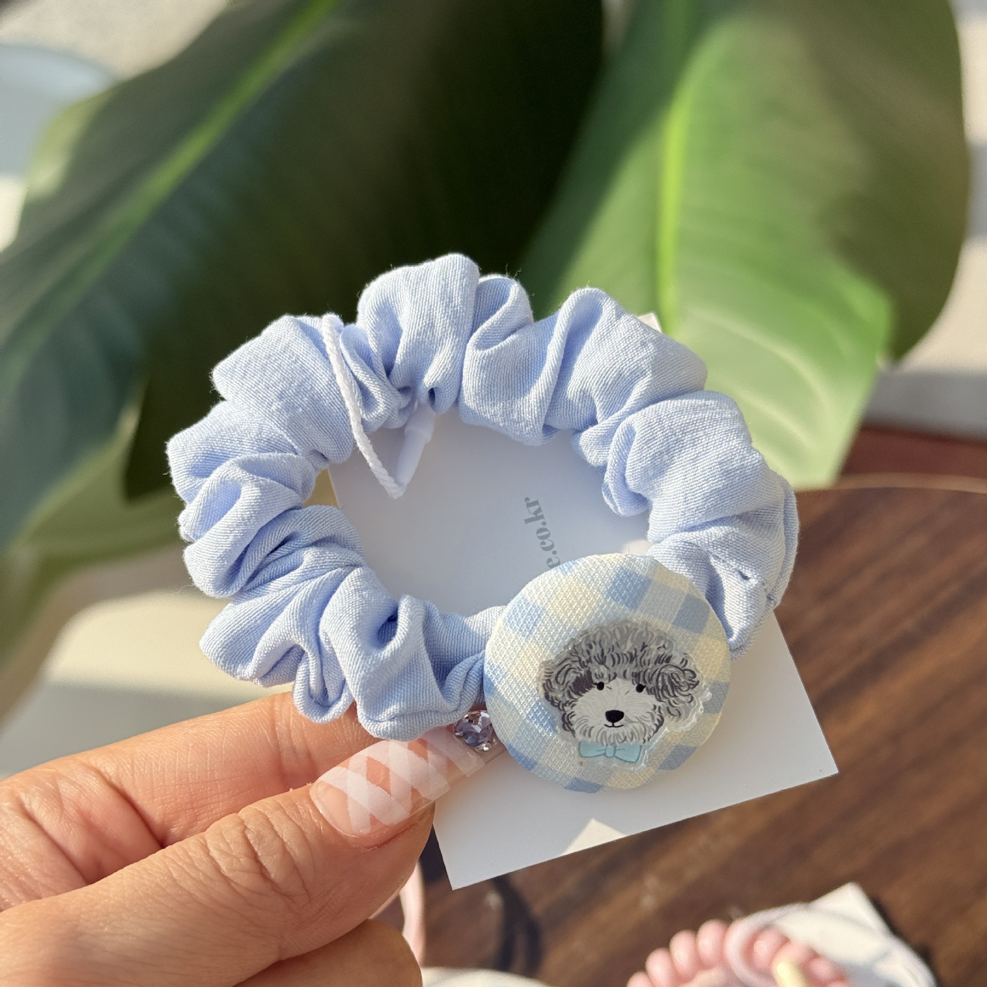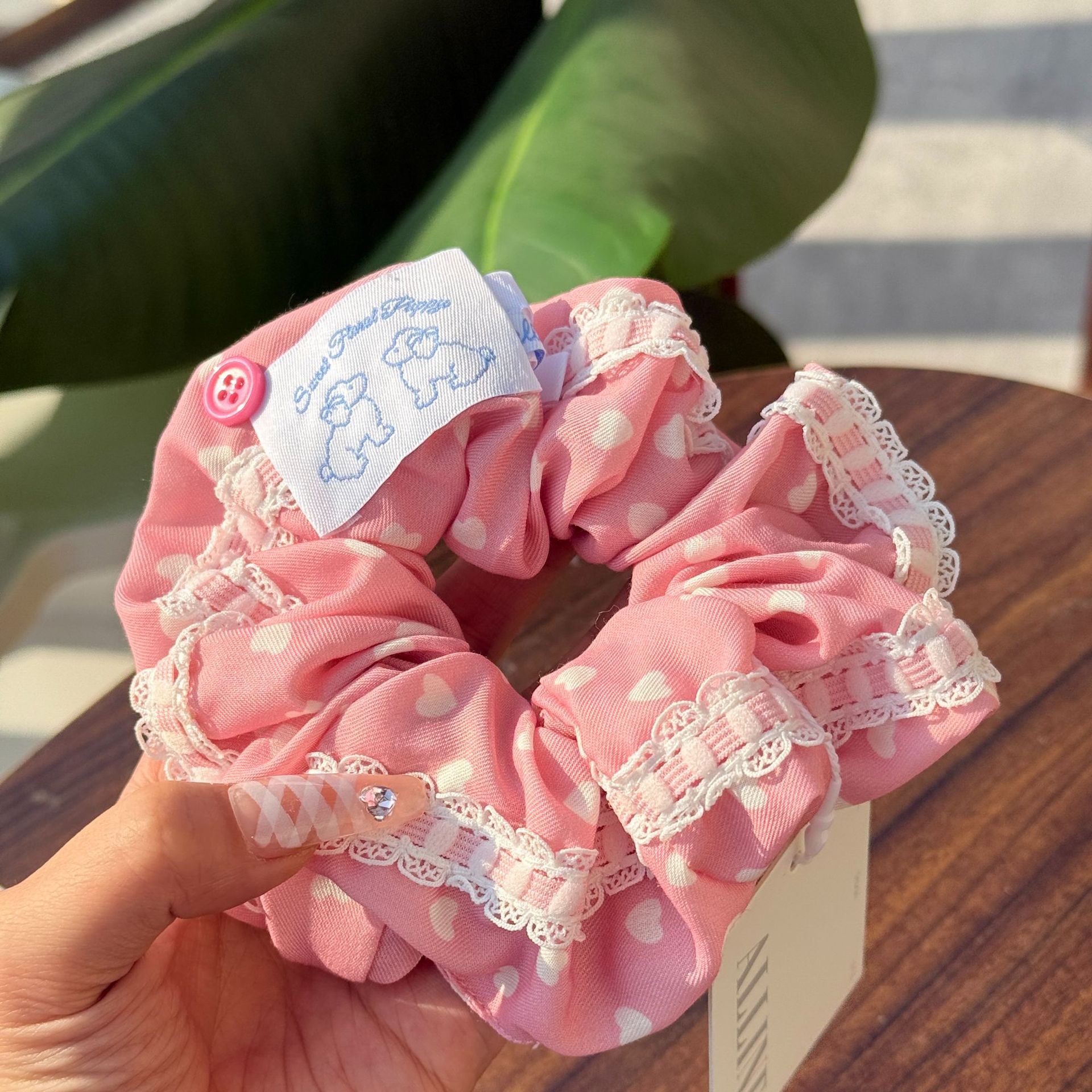 pink plaid dog pleated hair ring