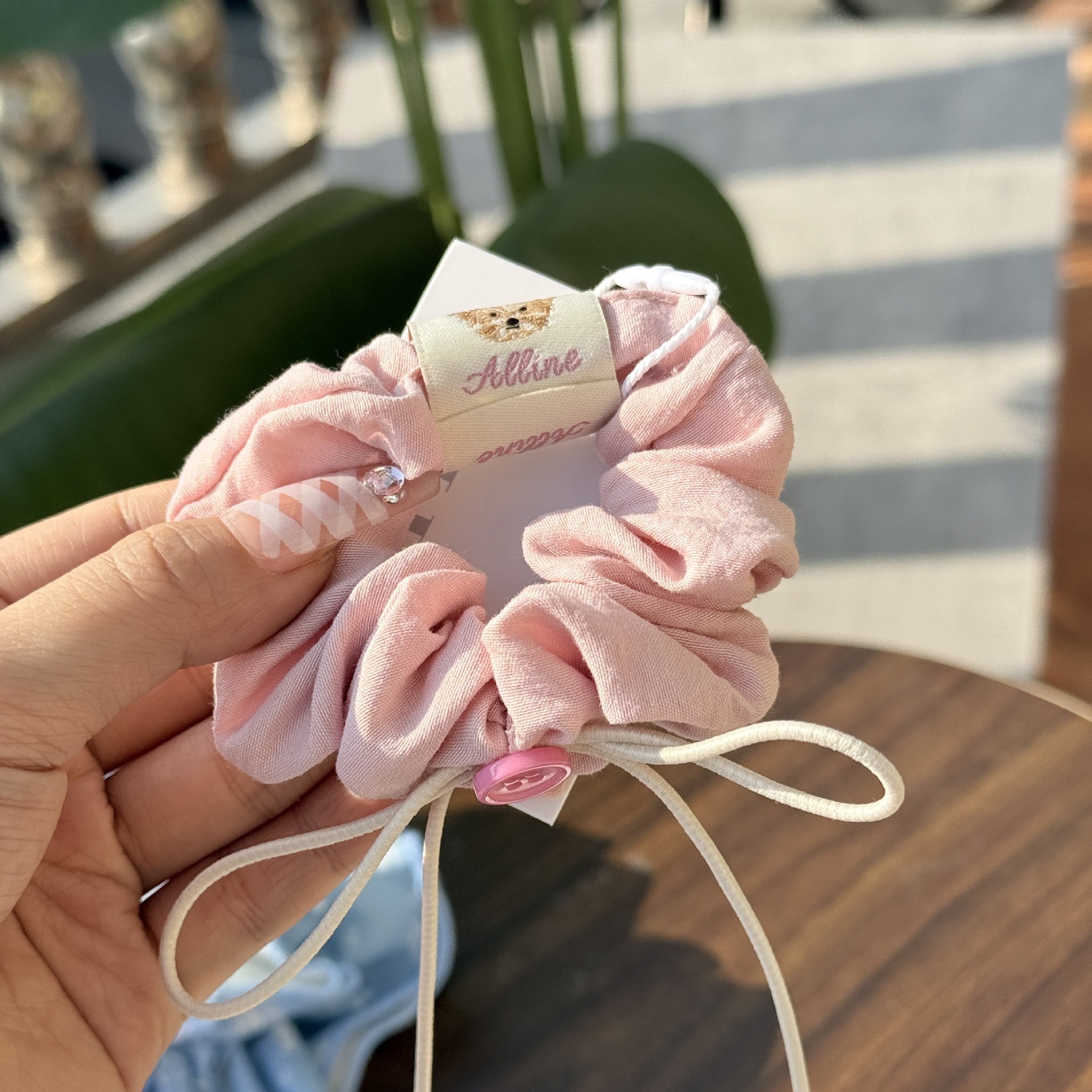 bow round beads-irregular bow-pink hair rope