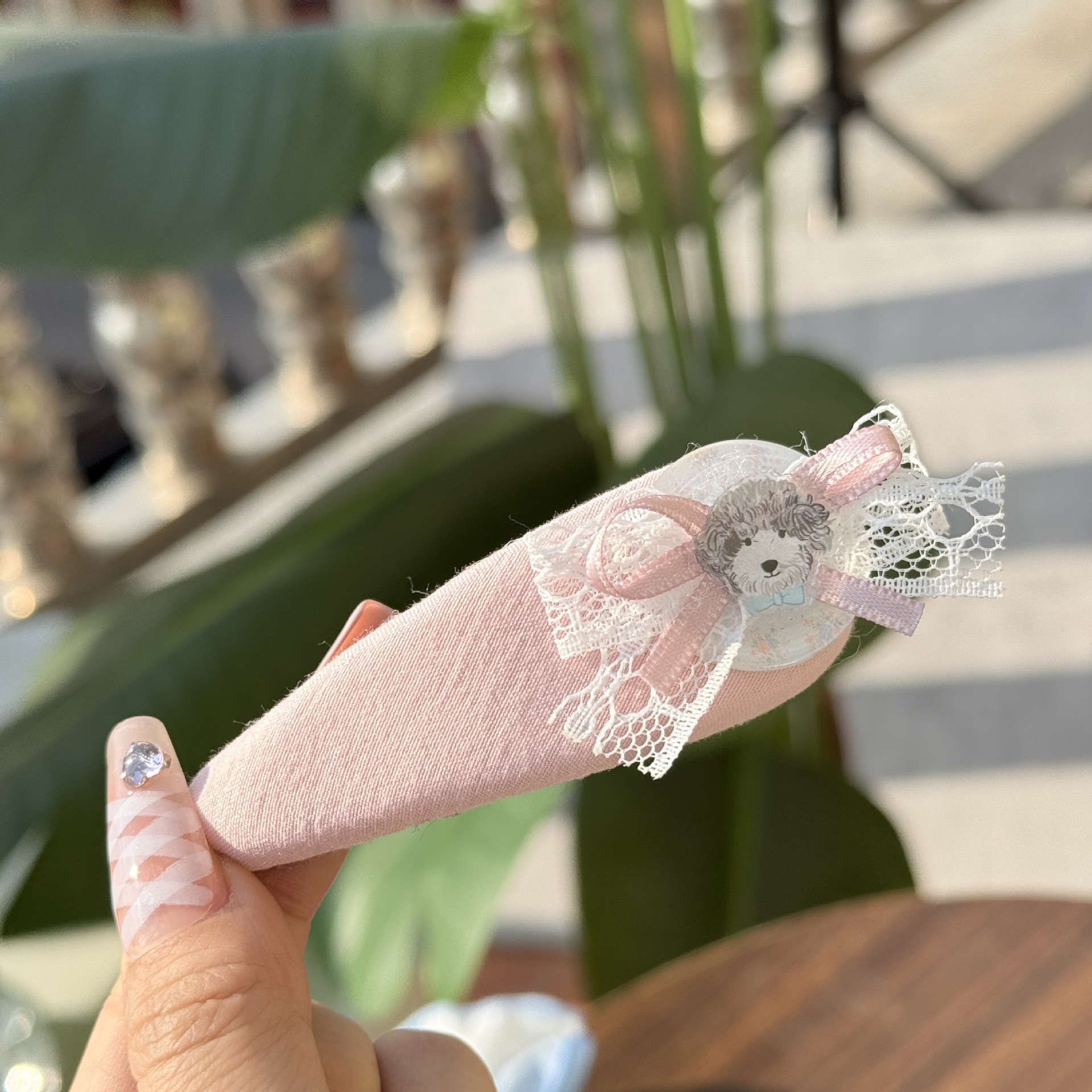 teddy-lace bow pink bb clip