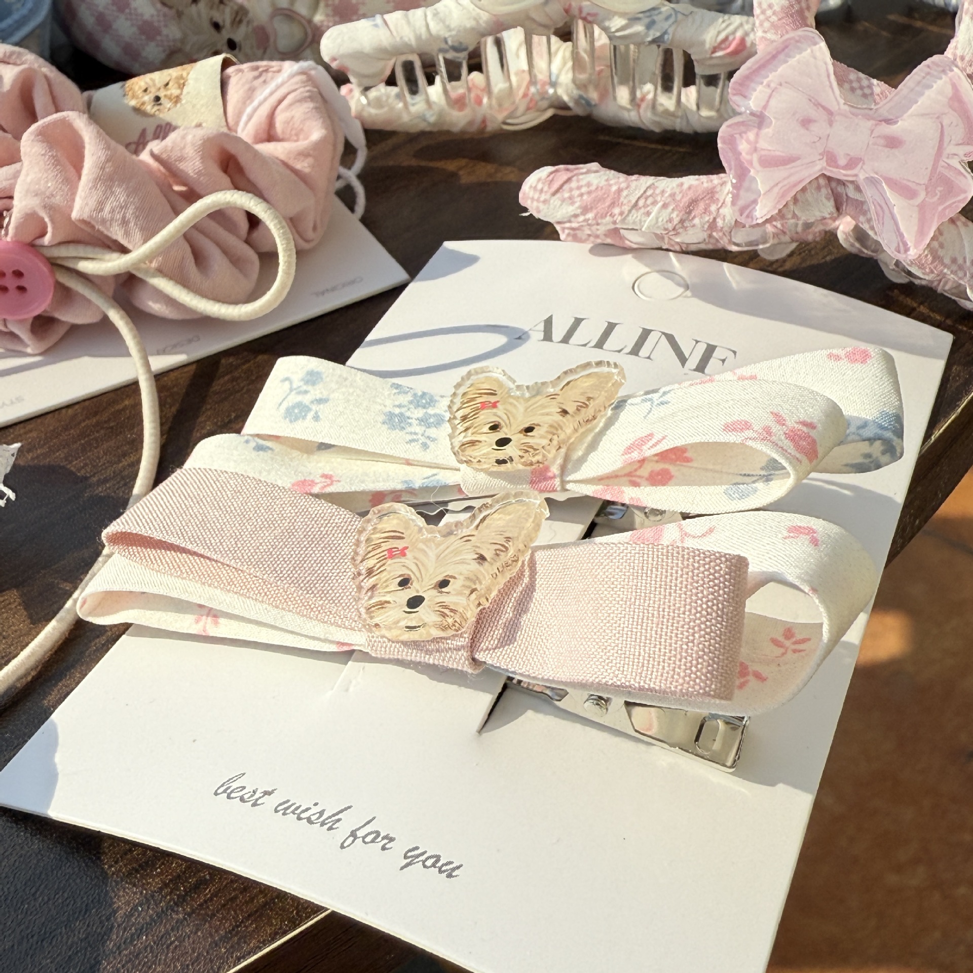 yorkshire standard-pink button bow hair rope