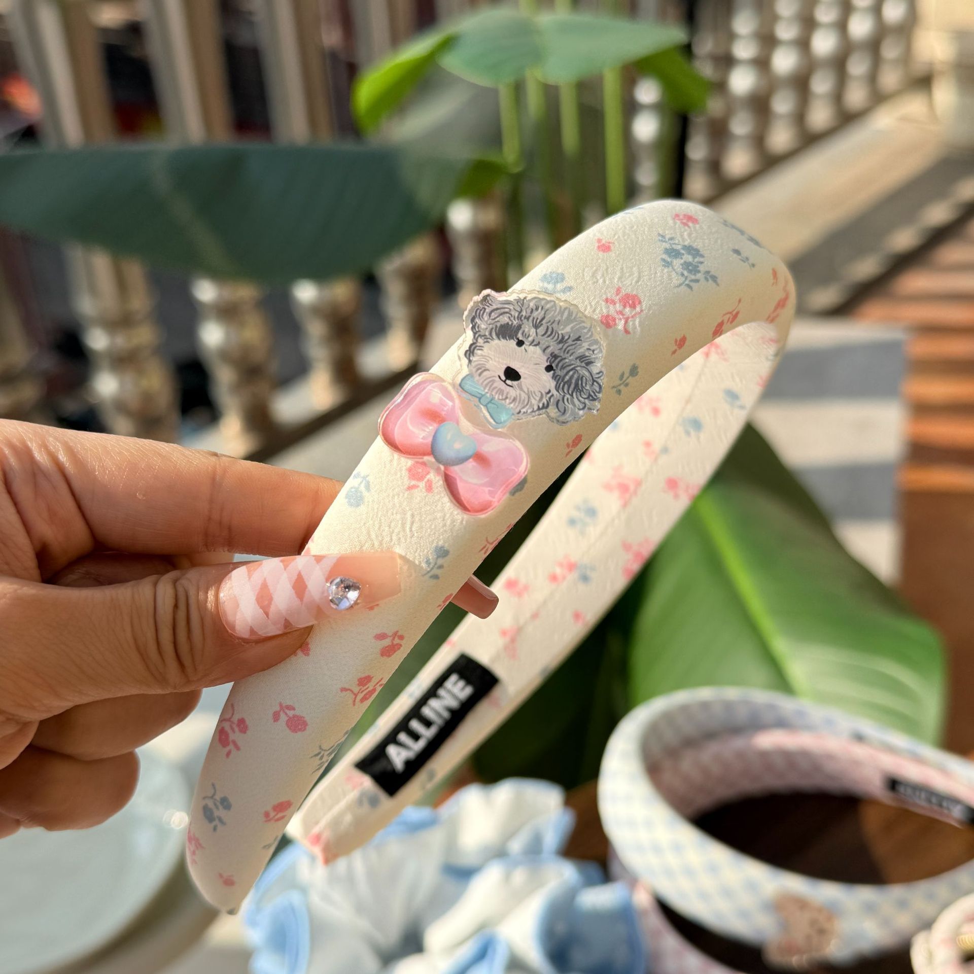 teddy-blue bow-knot-milky white blue plaid headband