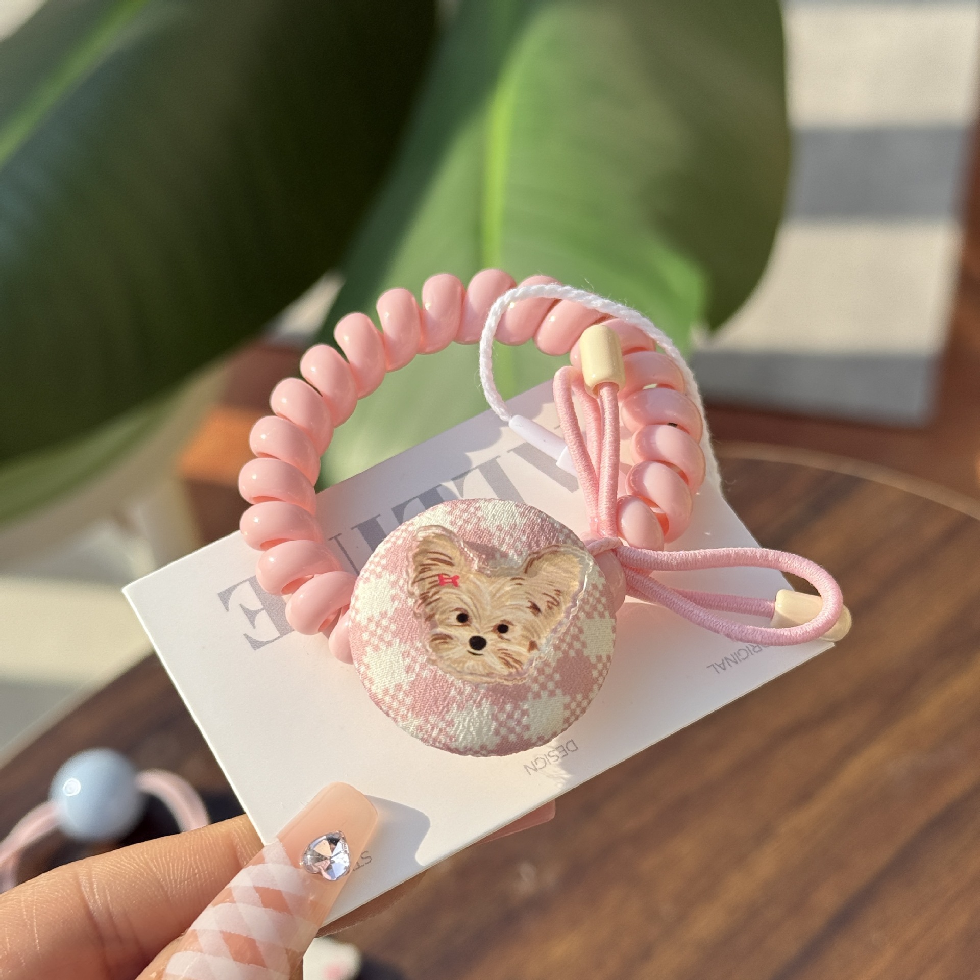 pink plaid yorkshire-pink elastic rubber hair band rope