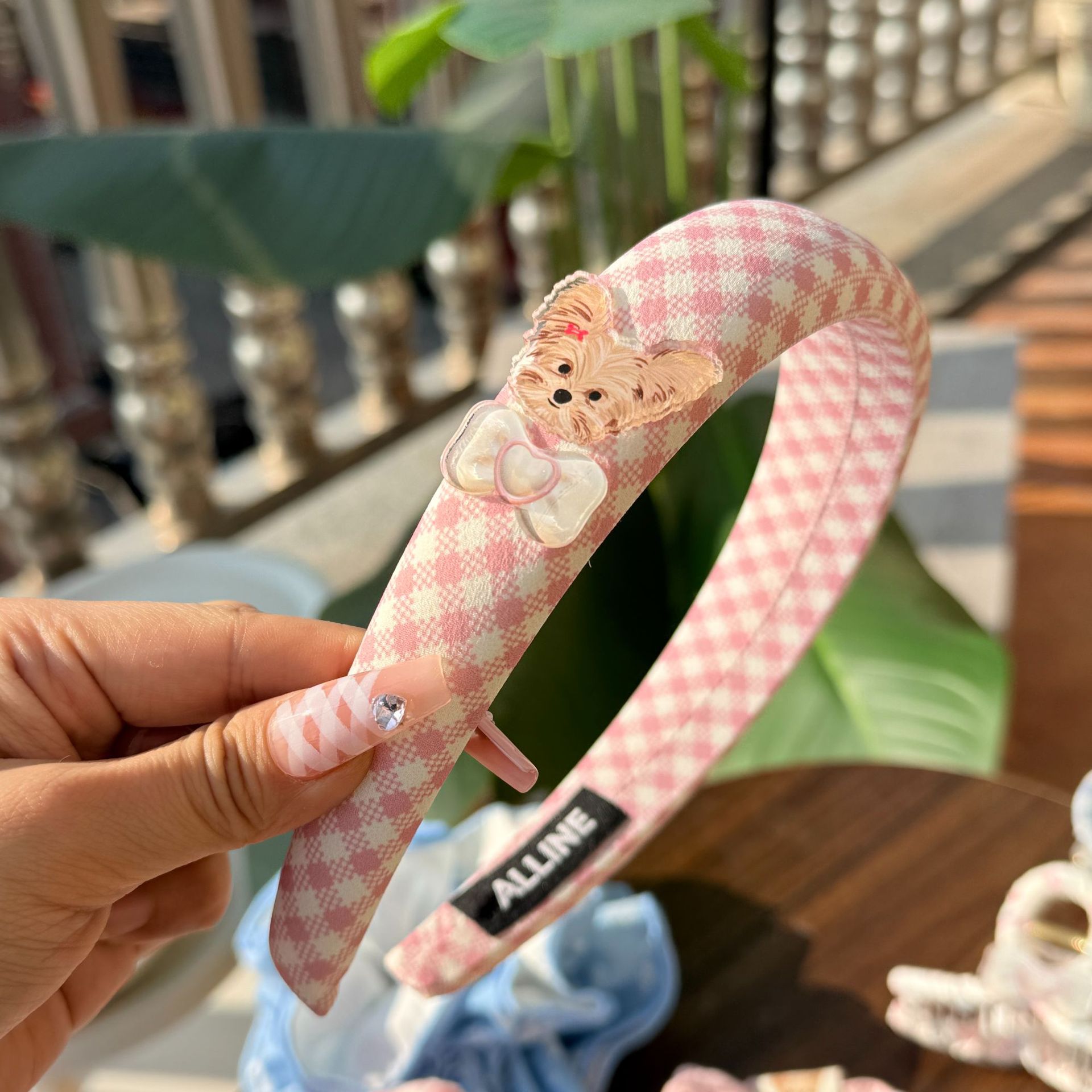 pink plaid yorkshire-pink hair rope