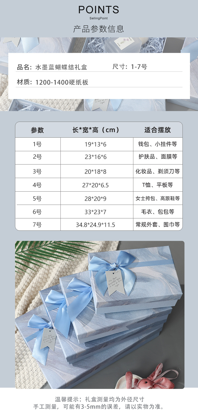 ink blue bow gift box; no.7 34.8*24.8*11.5cm