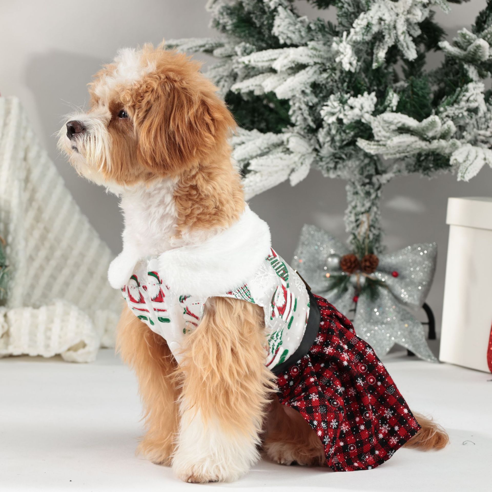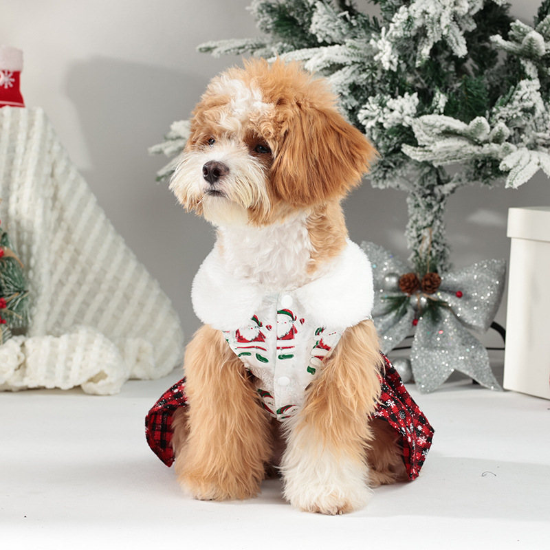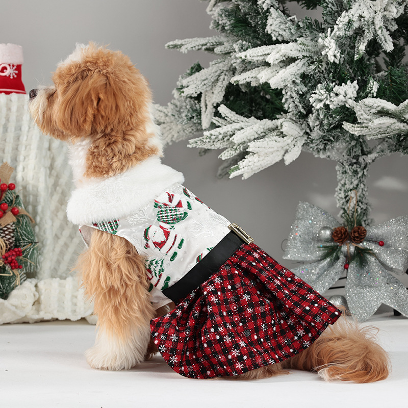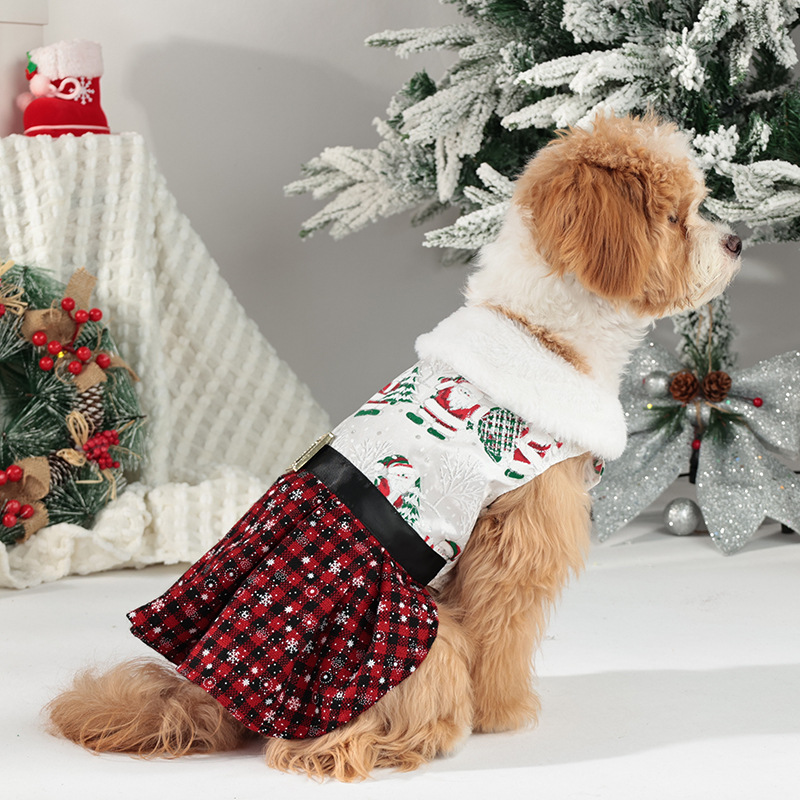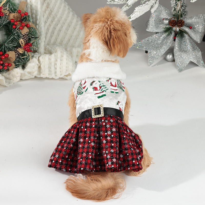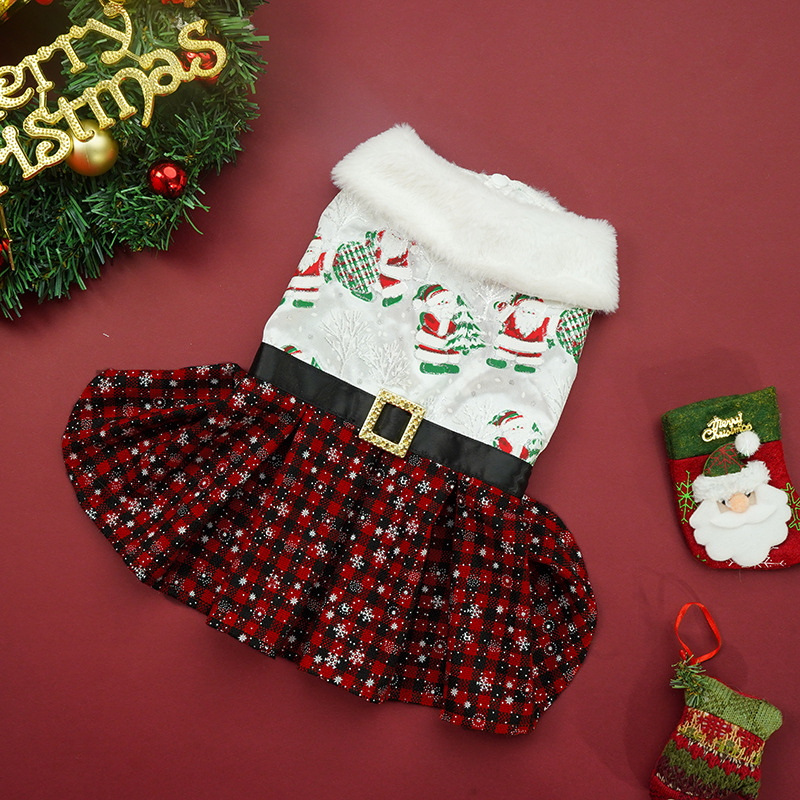 new christmas pet costume classic santa claus play snowflake skirt puppy dog party dress up