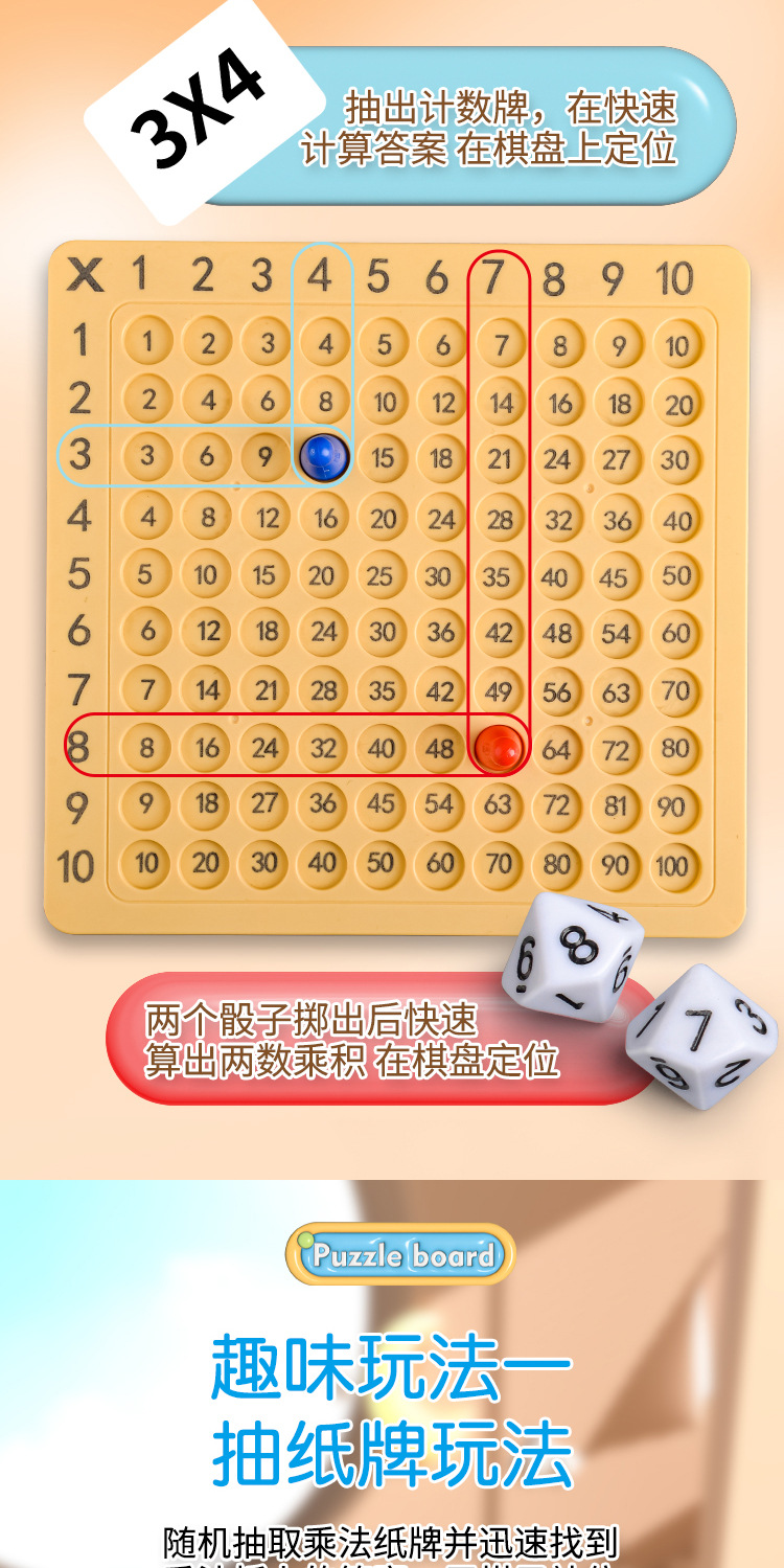 [e-commerce box] multiplication formula chessboard [100 cards +4 chess pieces +2 dice]]