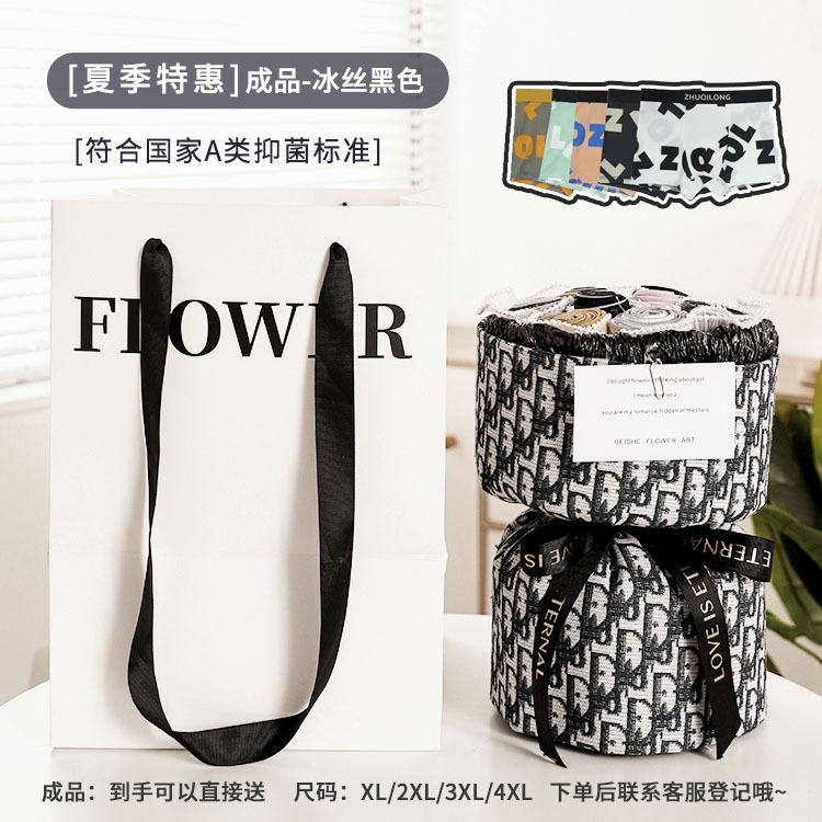 05 [summer ice silk] gift bag-black packaging-solid color classic-9 underwear finished product delivery