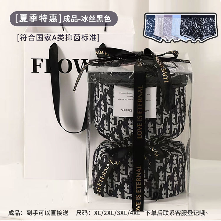06 [summer ice silk] gift box-black packaging-solid color classic-9 underwear finished product delivery