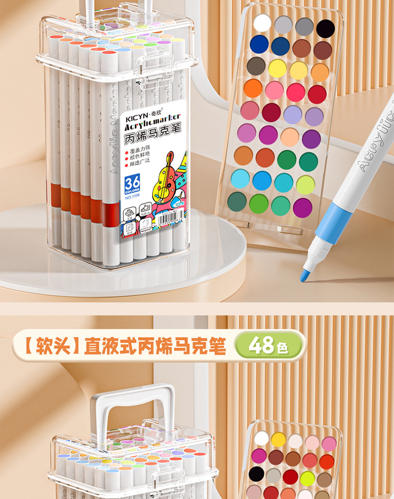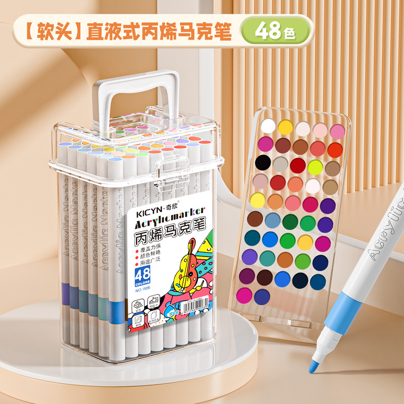 [48 colors] soft head acrylic marker pen-easy to wash