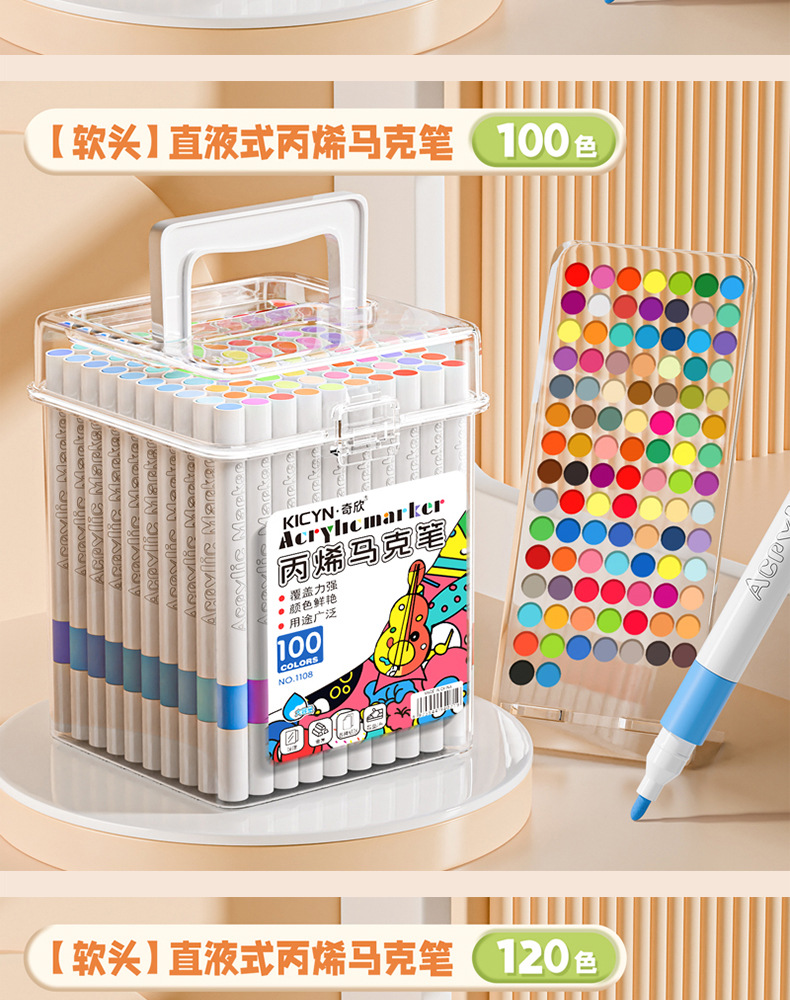 [100 colors] soft head acrylic marker pen-easy to wash