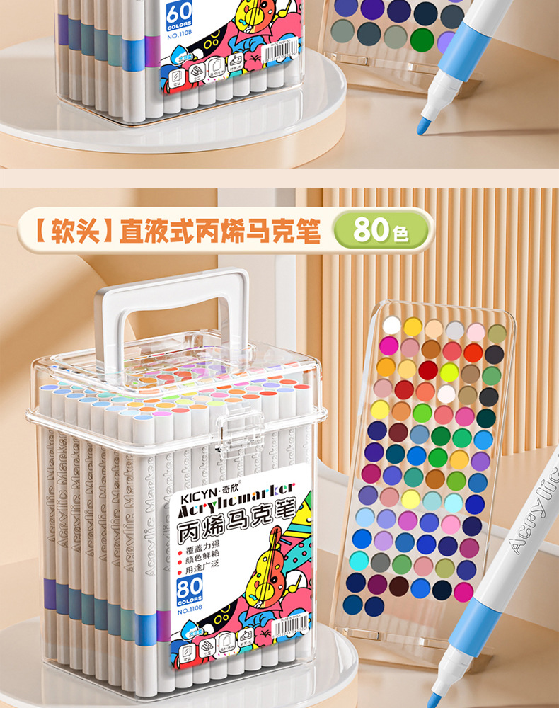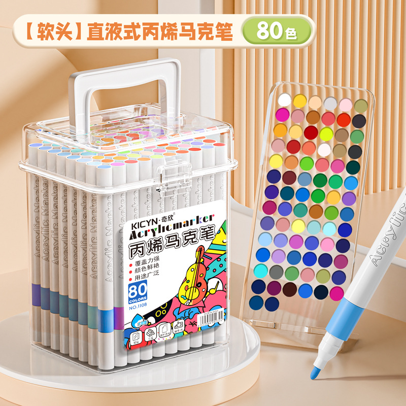 [80 colors] soft head acrylic marker pen-easy to wash