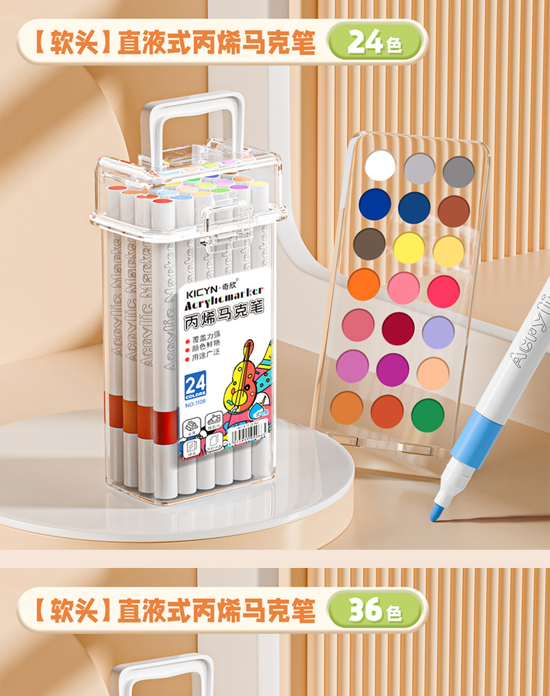 [24 colors] soft head acrylic marker pen-easy to wash