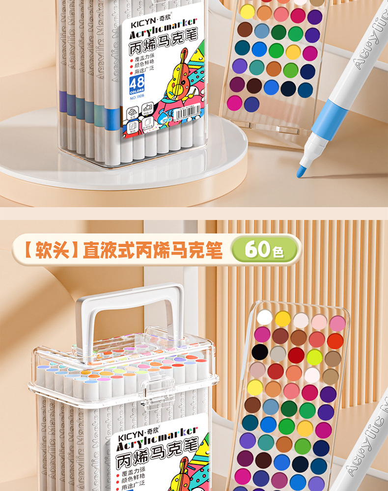 [60 colors] soft head acrylic marker pen-easy to wash