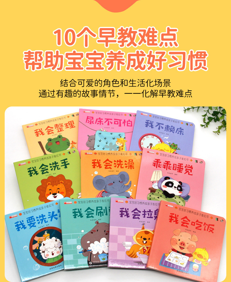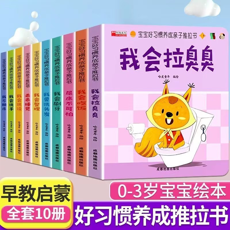 [full set of 10 volumes] baby's good habits develop parent-child push-pull books