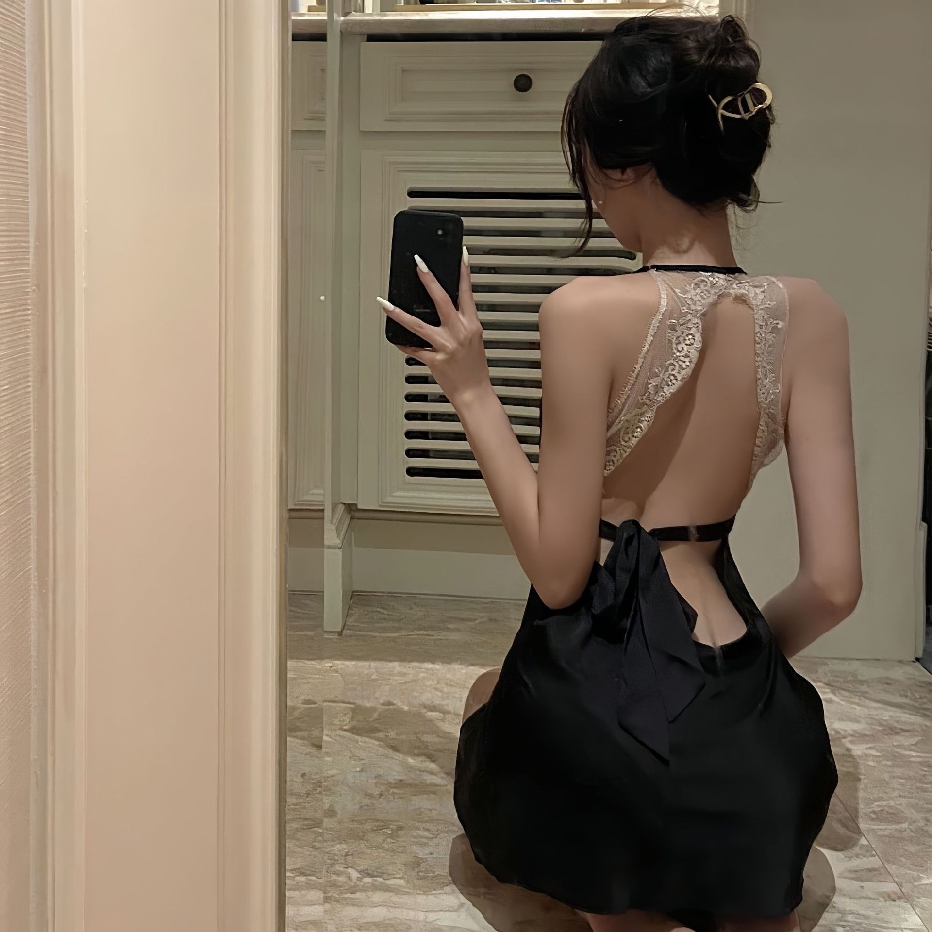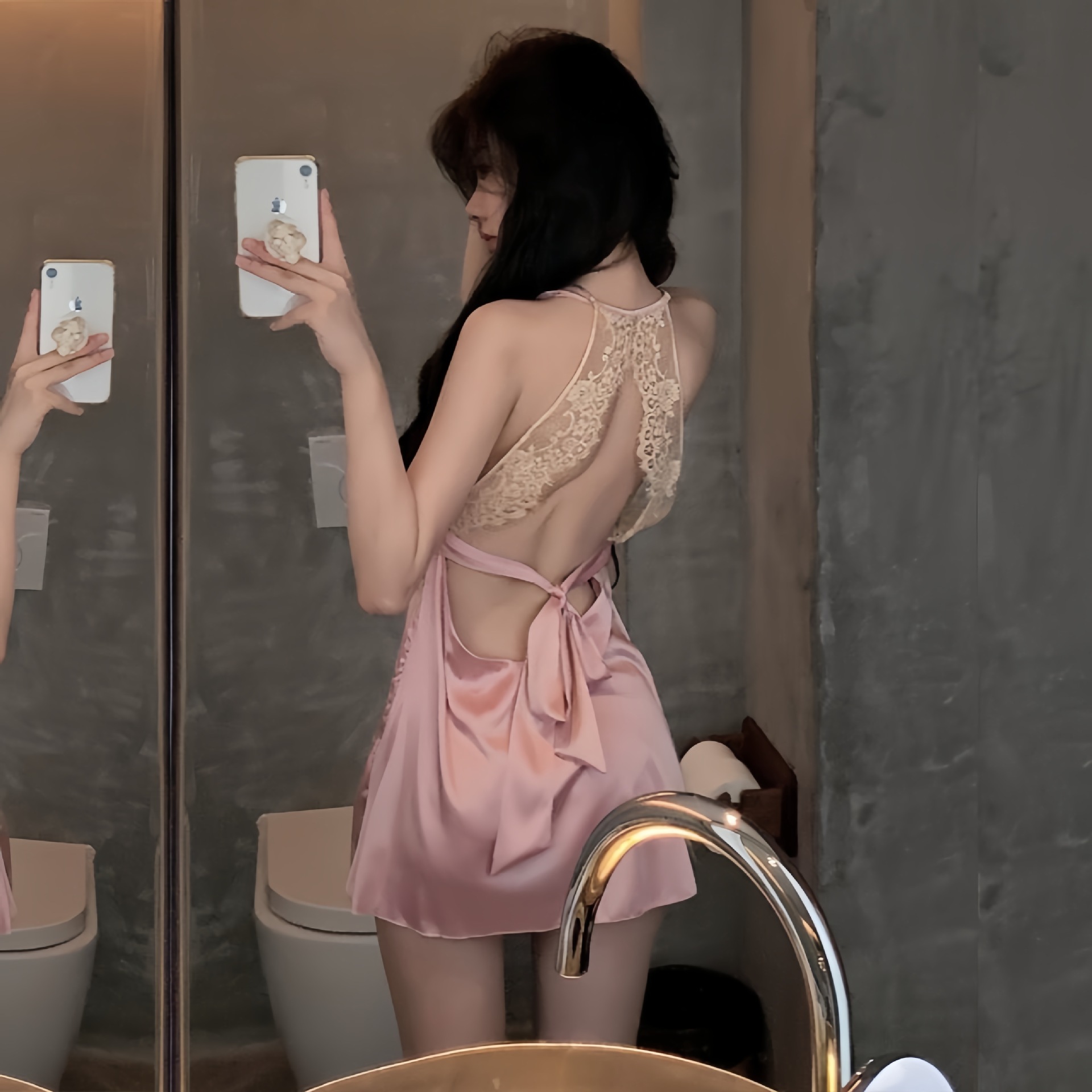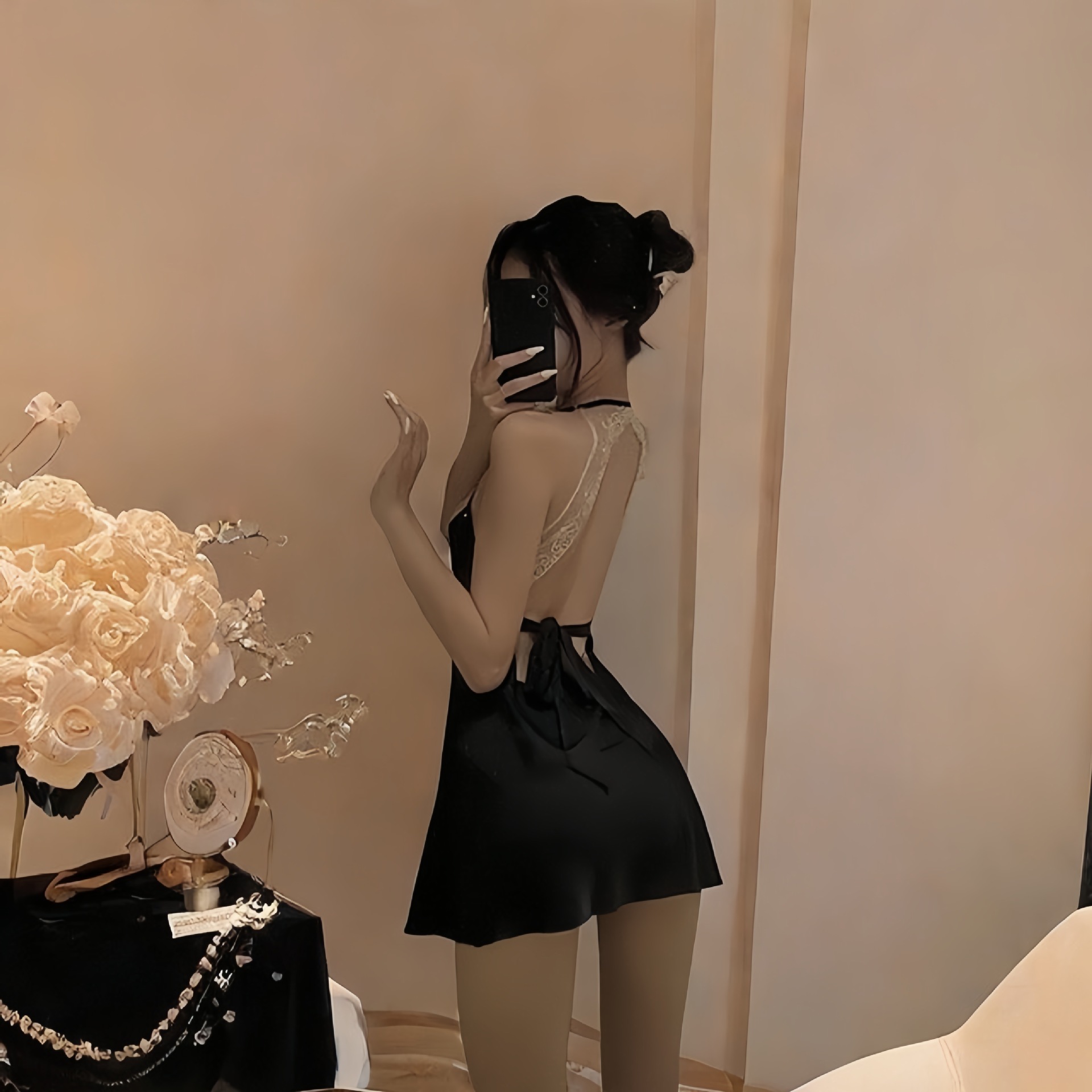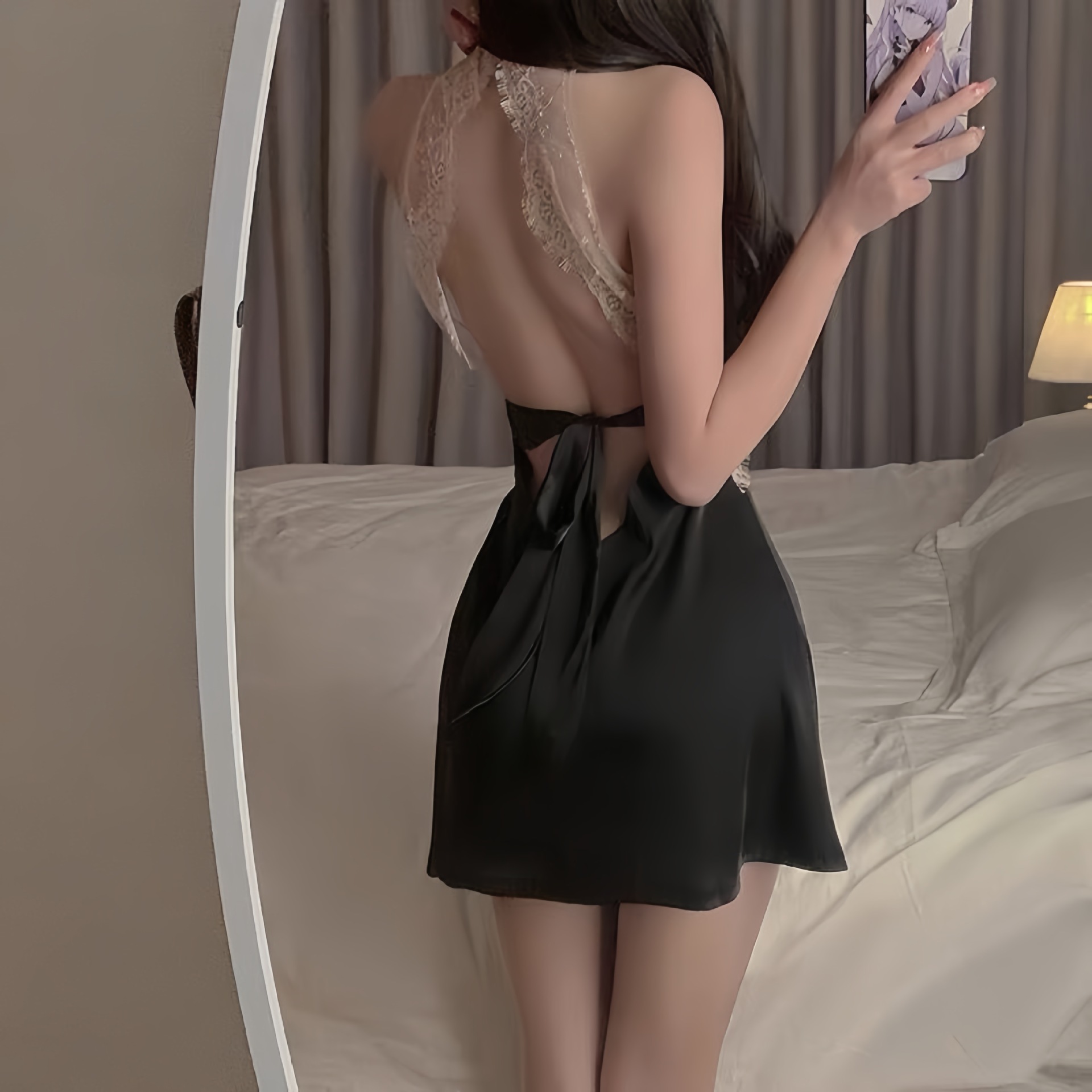 color: lotus root pink nightdress, black nightgown