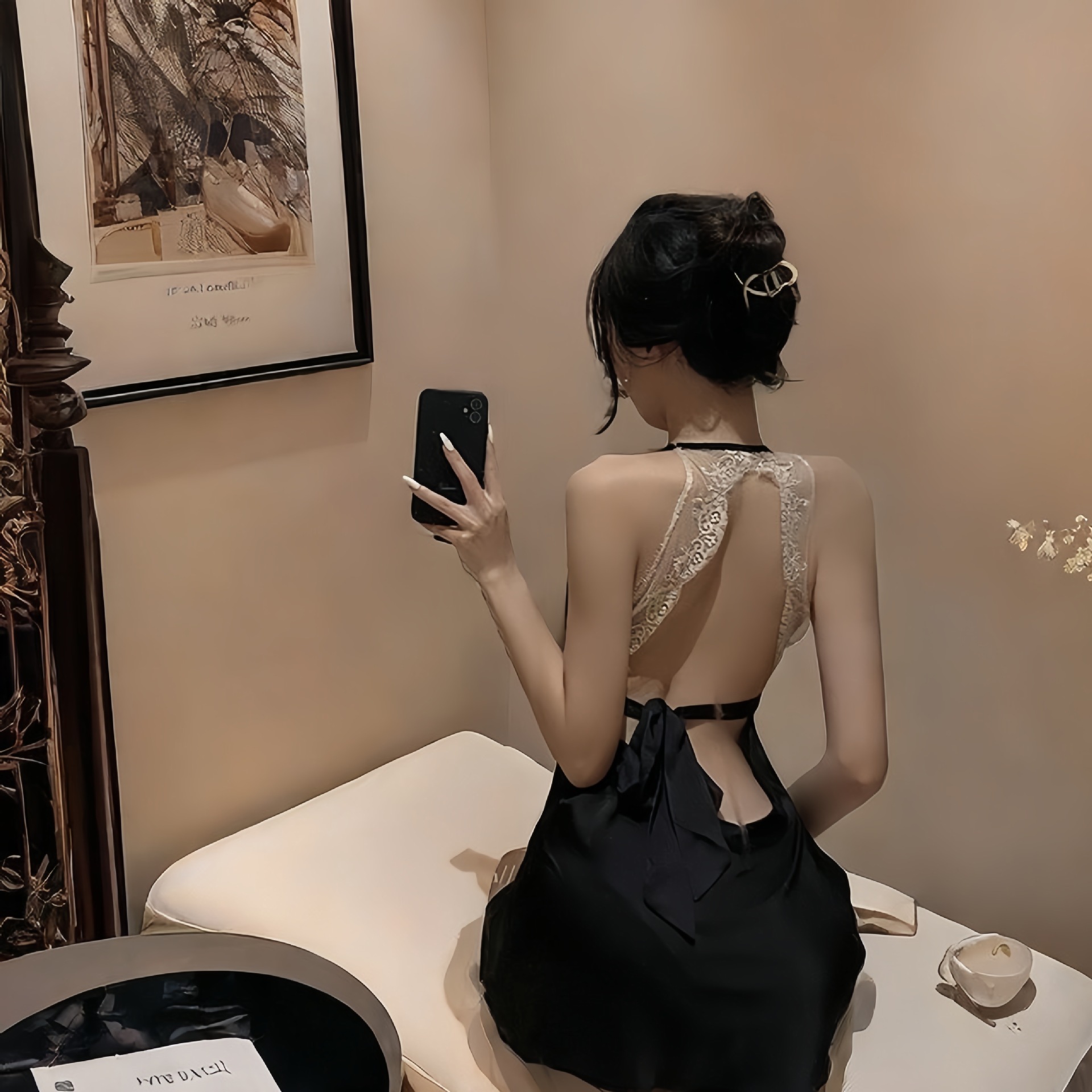 lotus root pink nightdress, black nightgown
