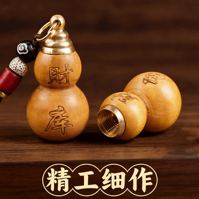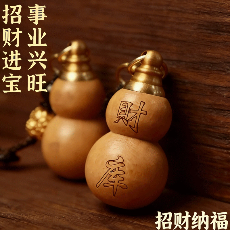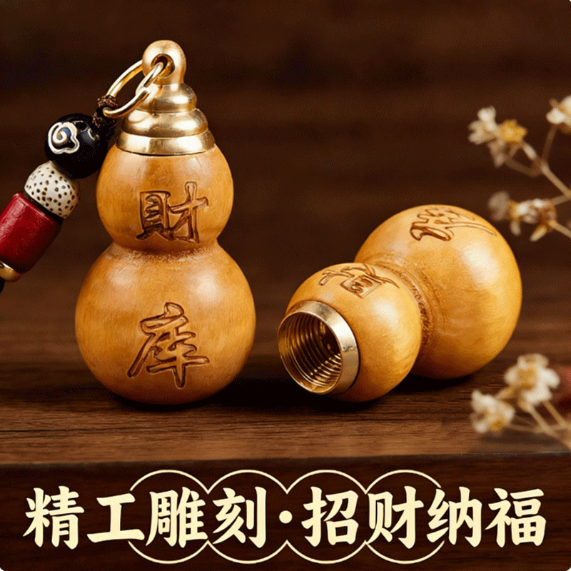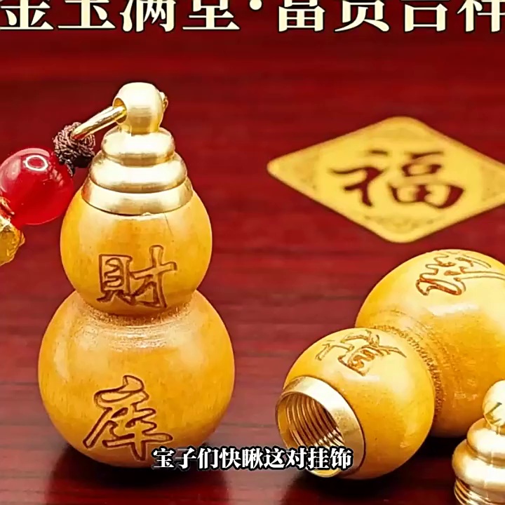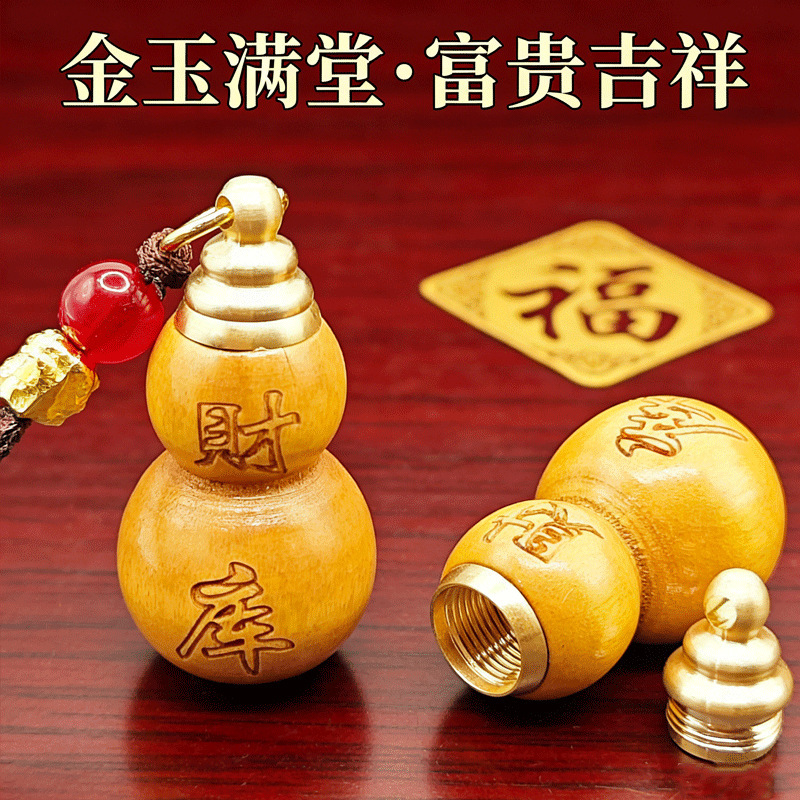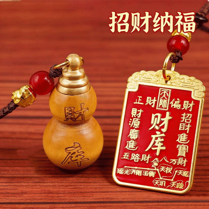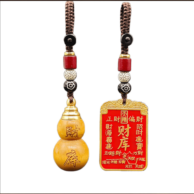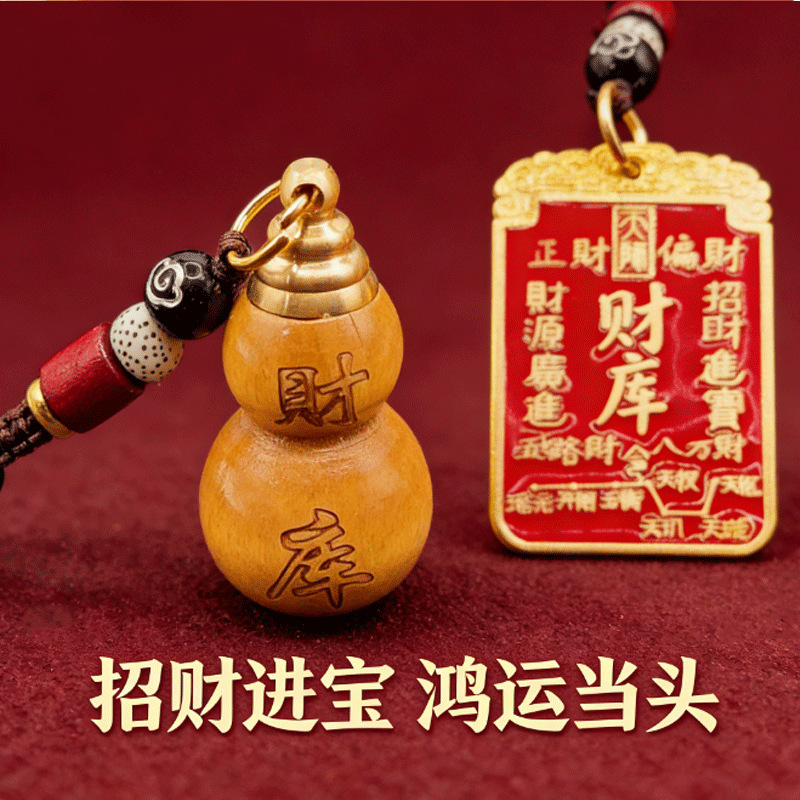 [fortune treasury] one mahogany gourd + one red fortune treasury plaque with auspicious cloud rope each {with cinnabar gift}