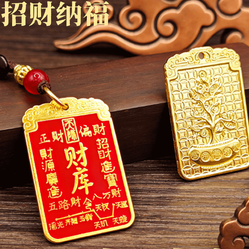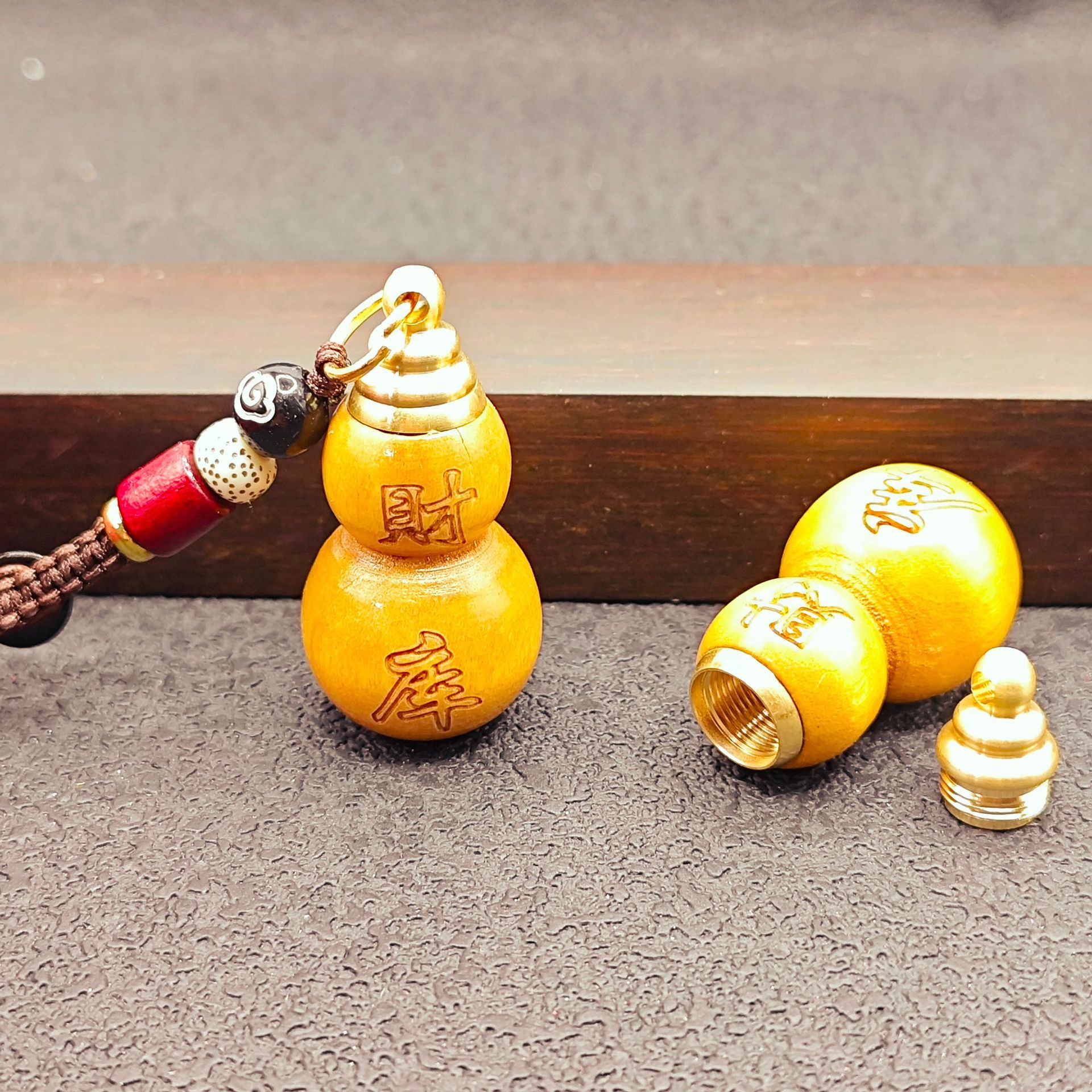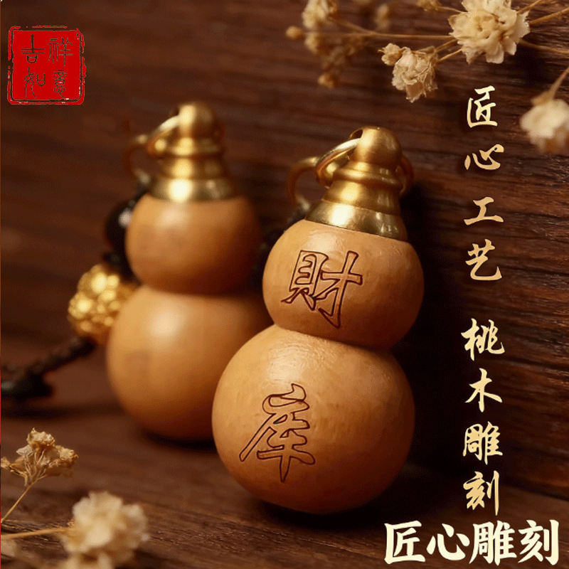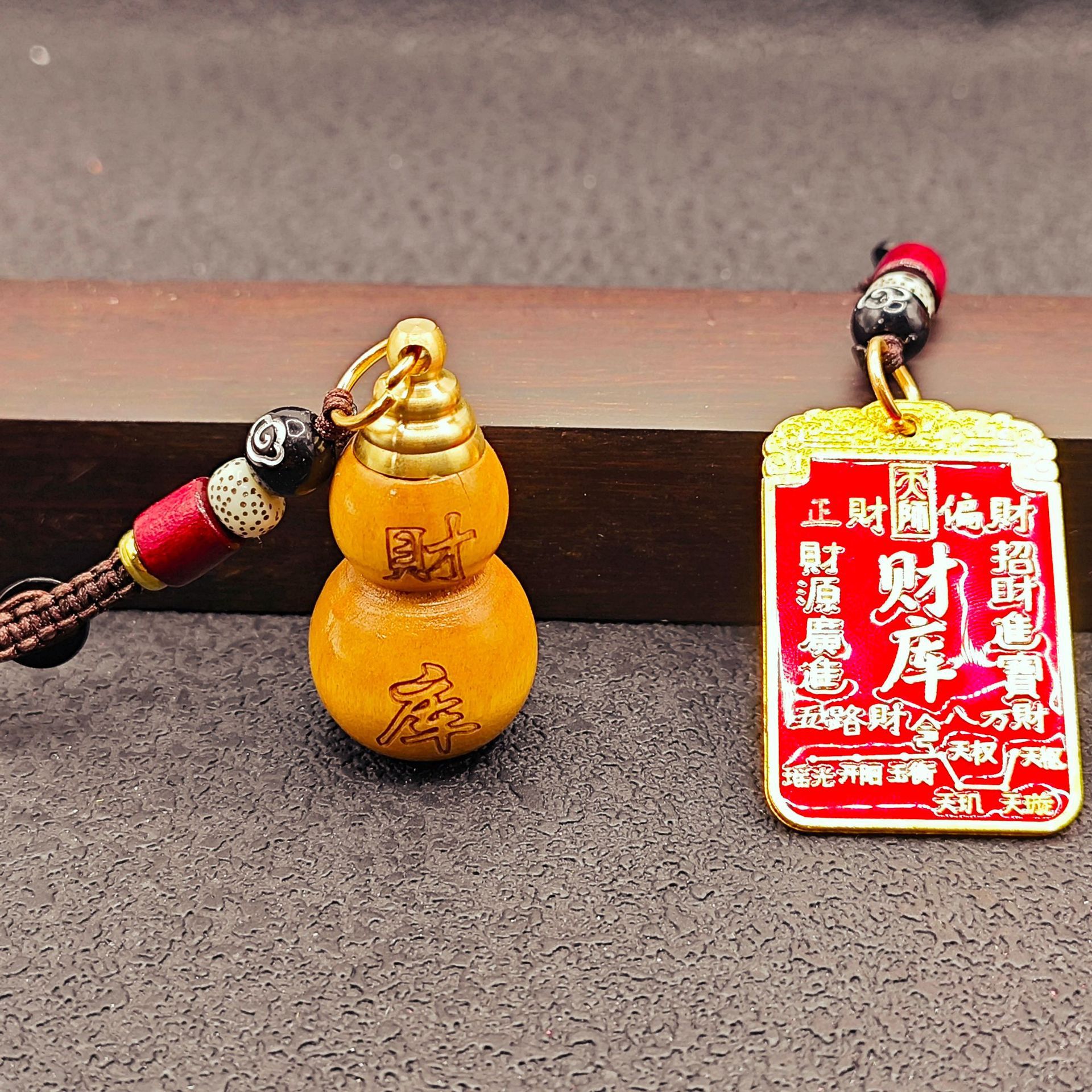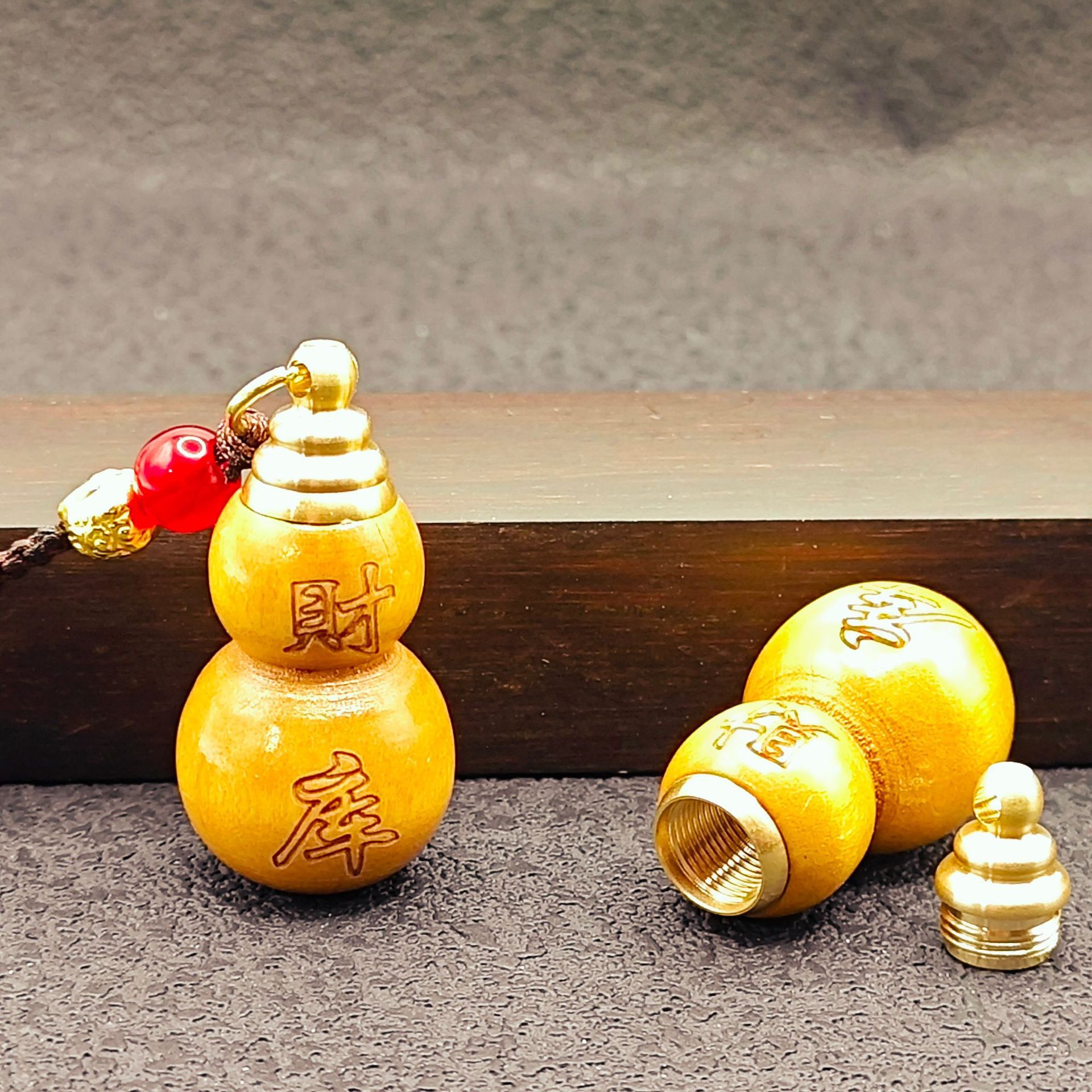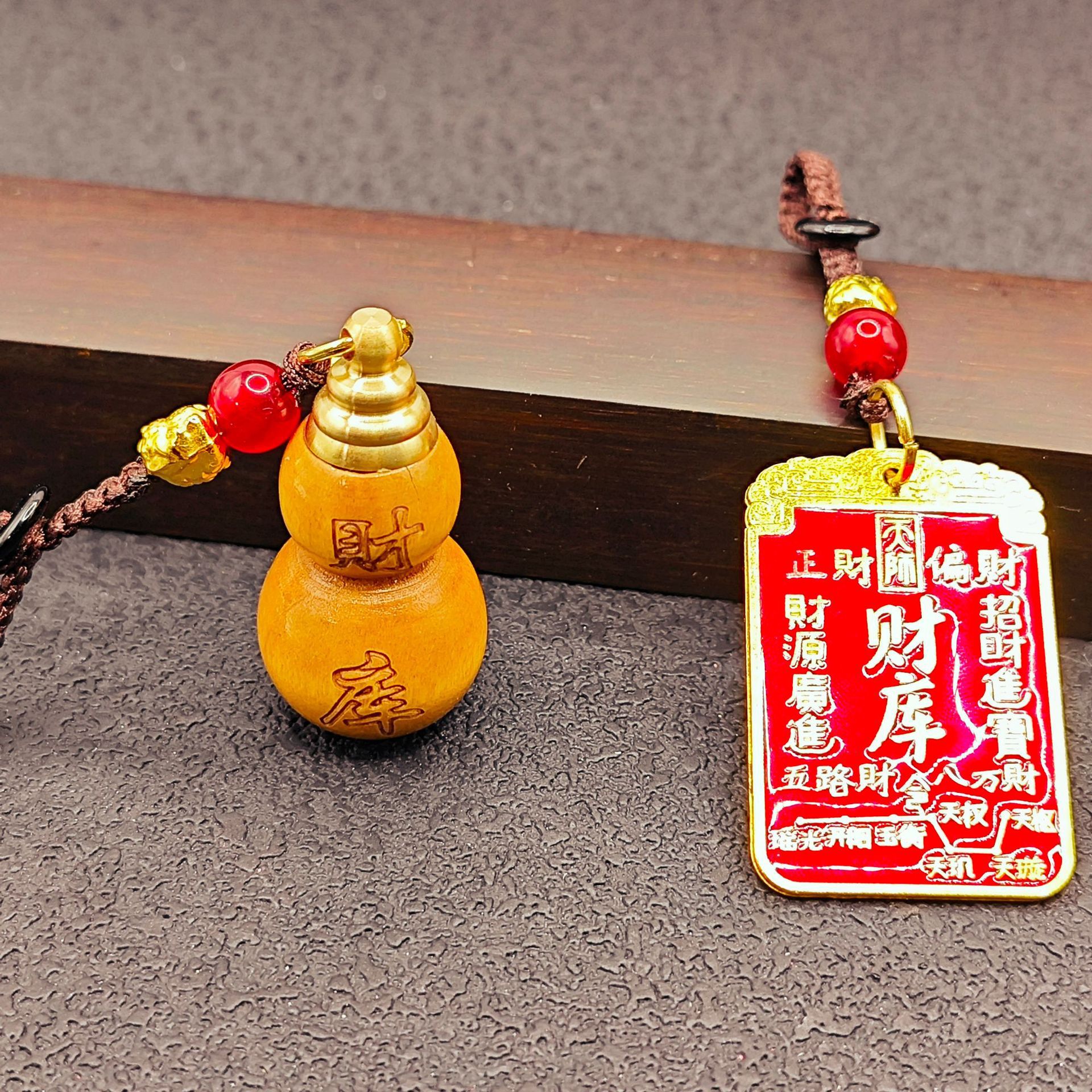 [fortune treasury] one mahogany gourd + one red fortune treasury plaque with auspicious cloud rope each {with cinnabar gift}