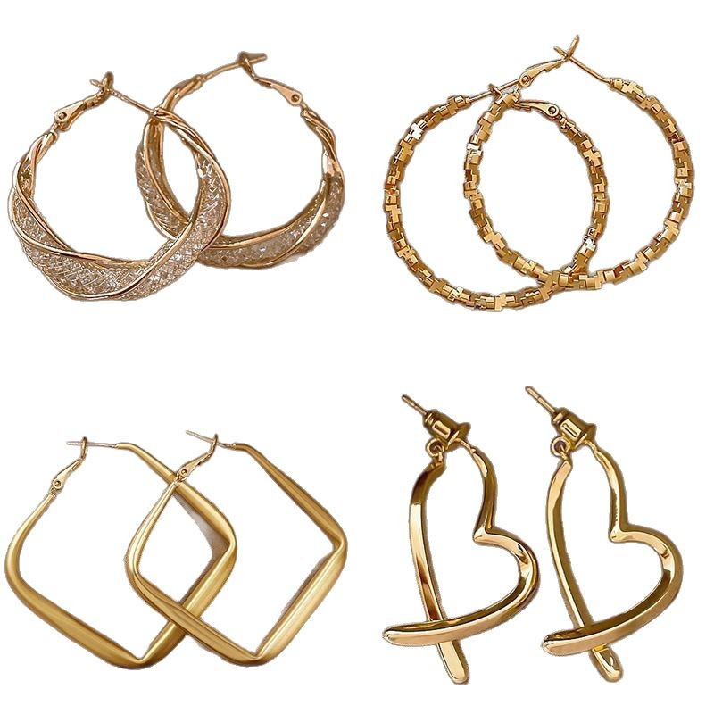 gold square earrs_gold twisted hollow stud earrings
