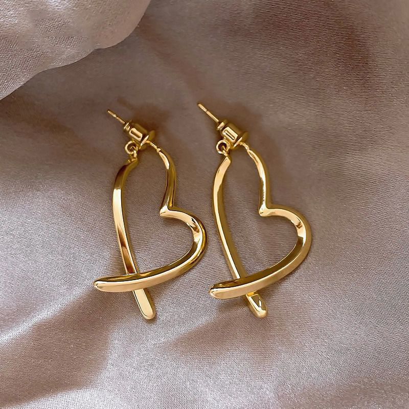 golden love heart stud earrings