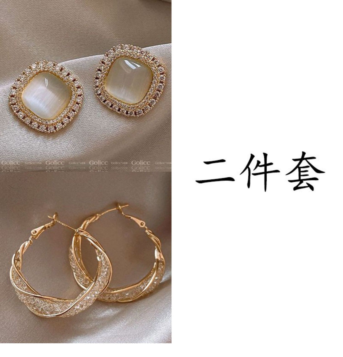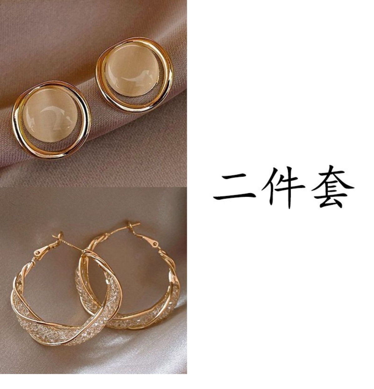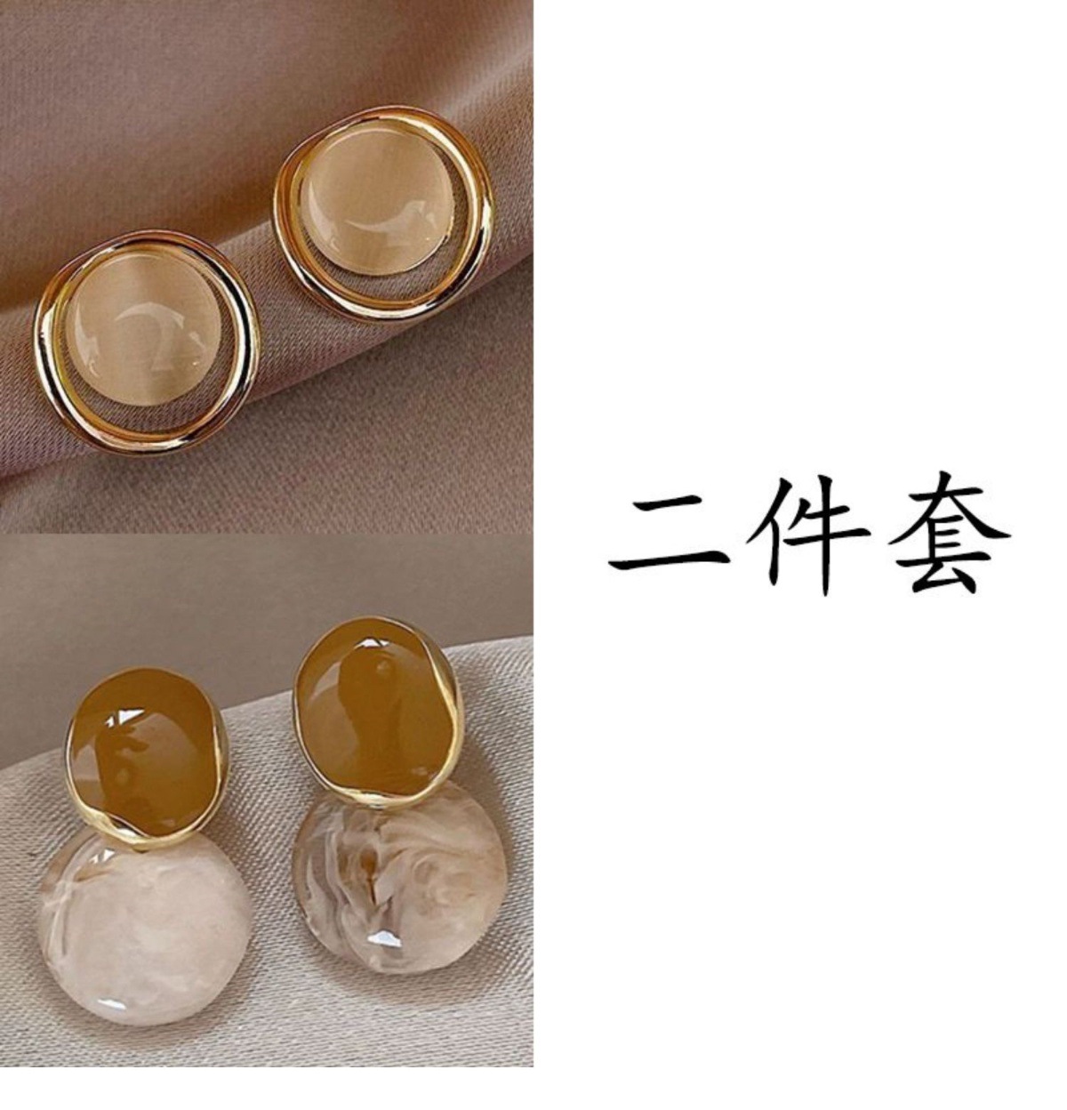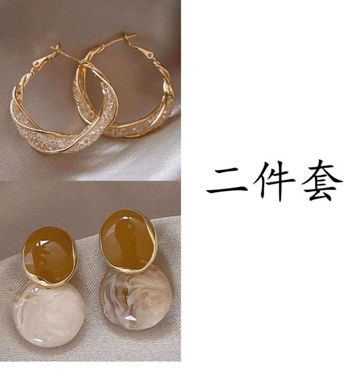 golden twisted hollow + khaki water drop [two-piece set]]