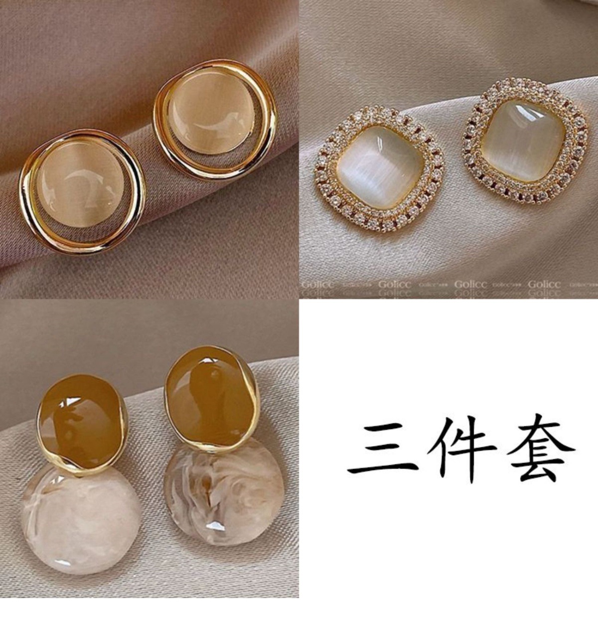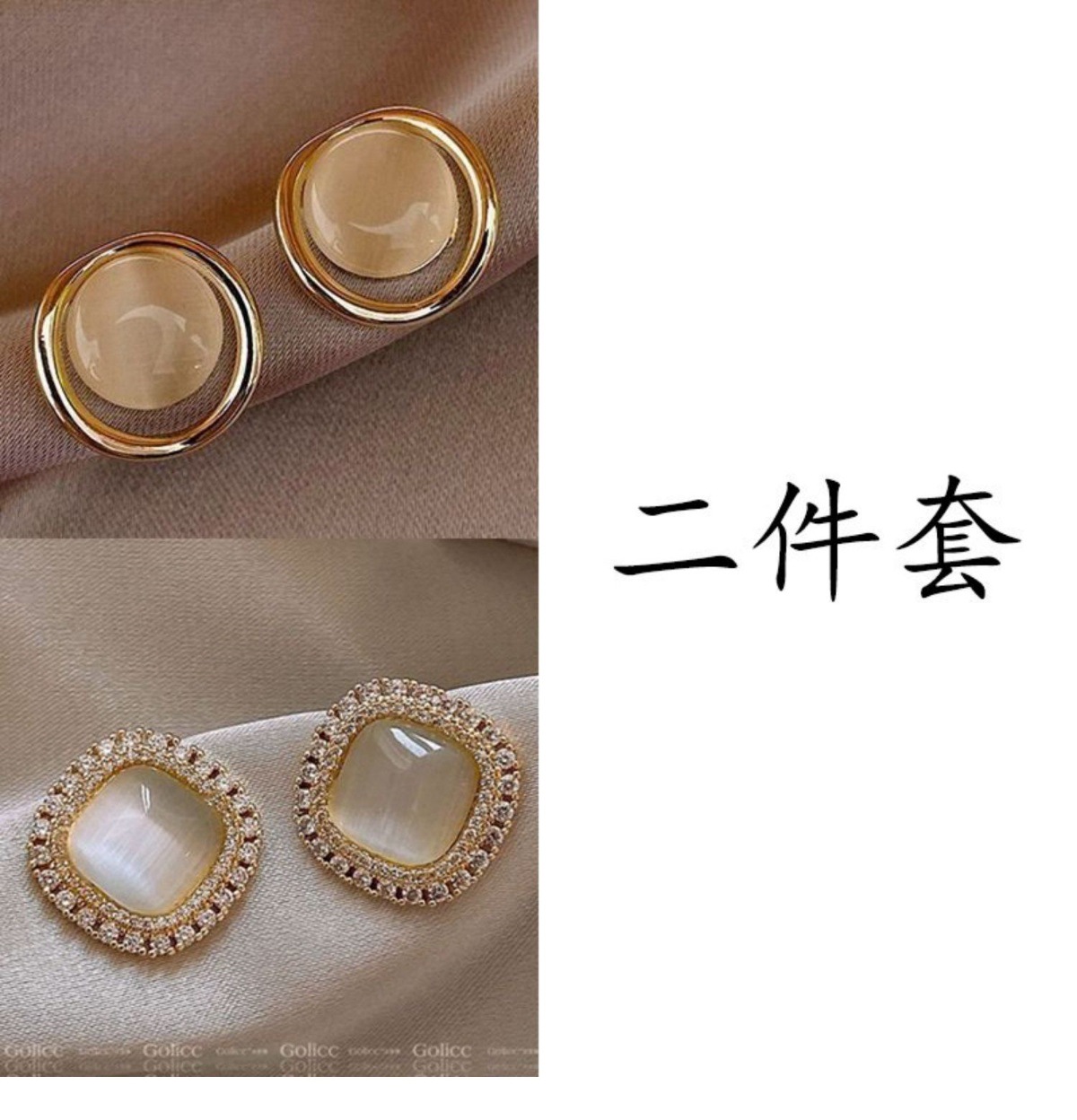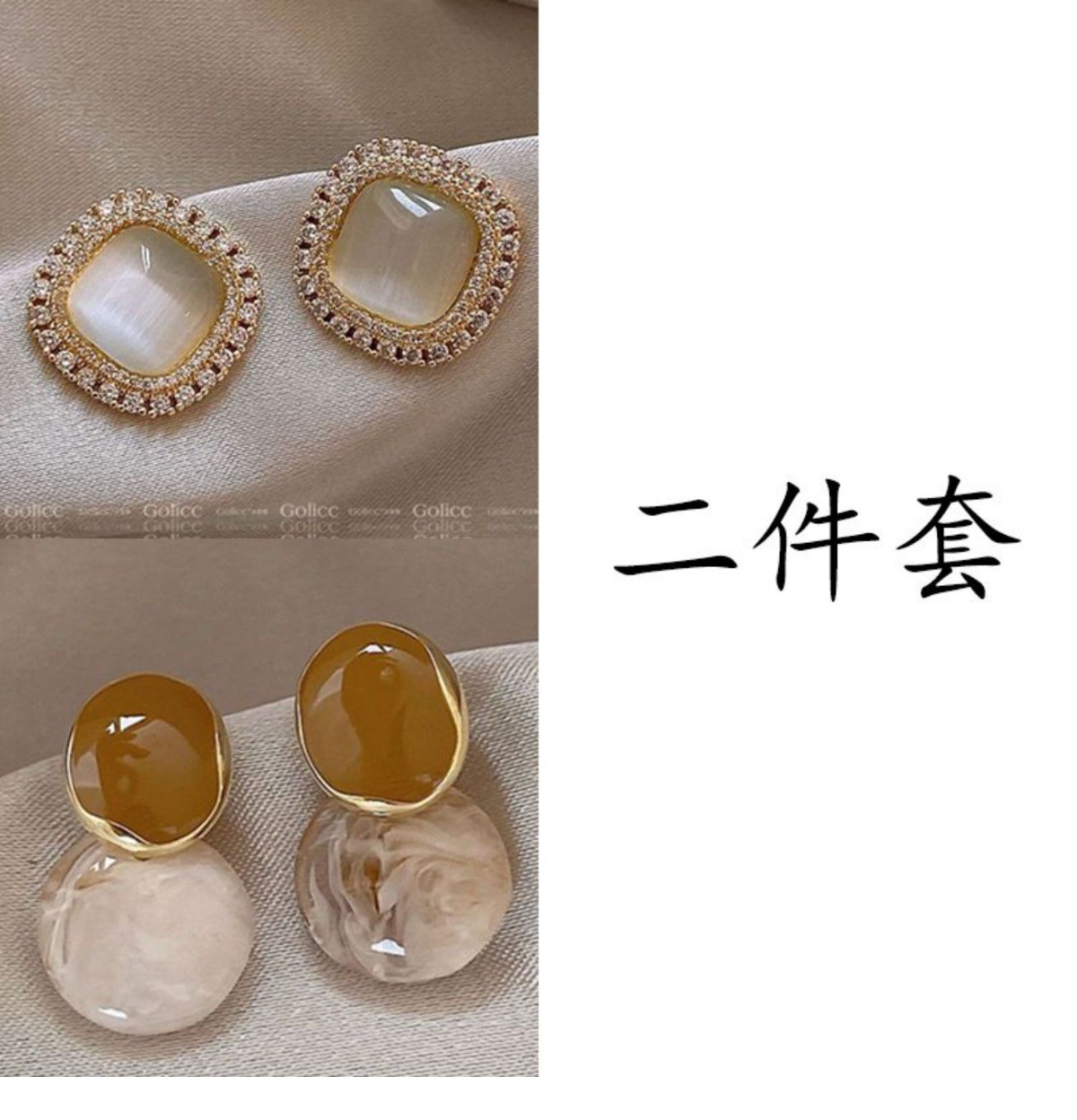 golden square opal + khaki water drops [two-piece set]]