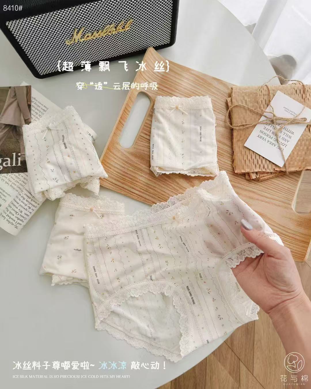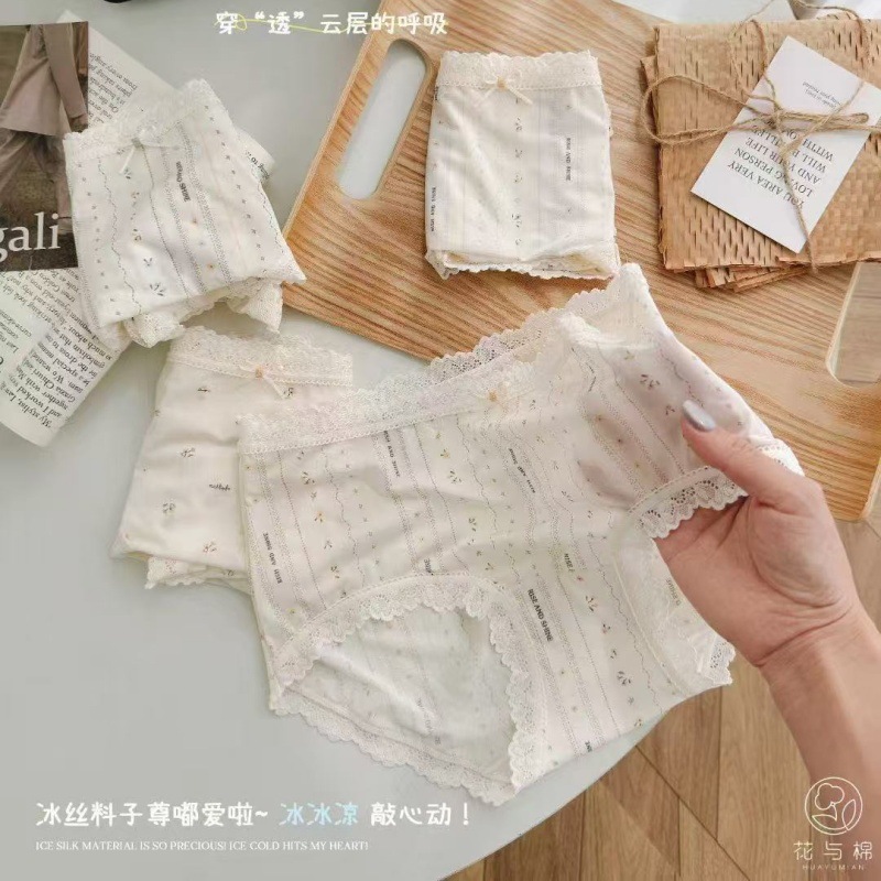 2026 summer ultra-thin ice silk underwear girl's comfortable skin-friendly breathable cute girl lace trim briefs
