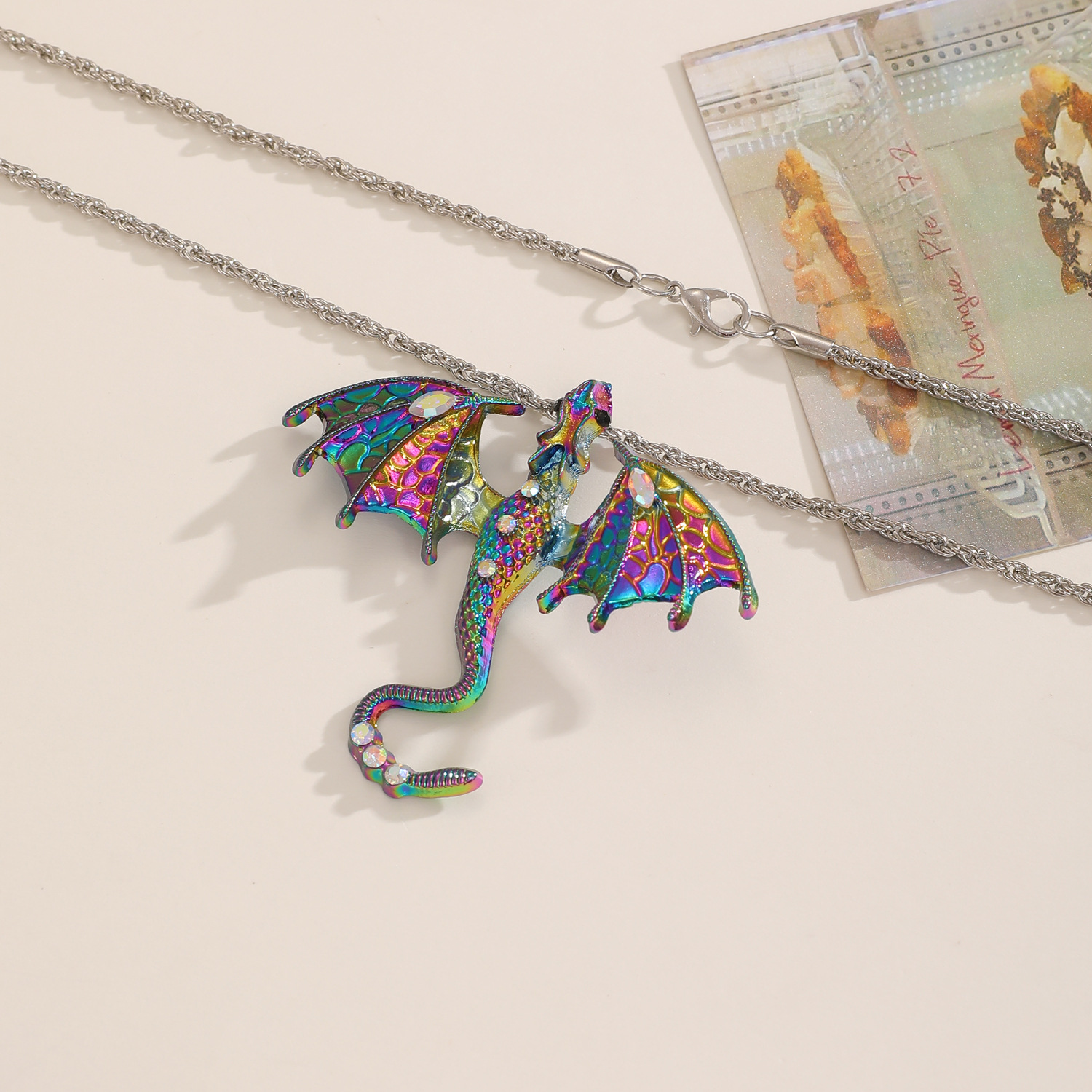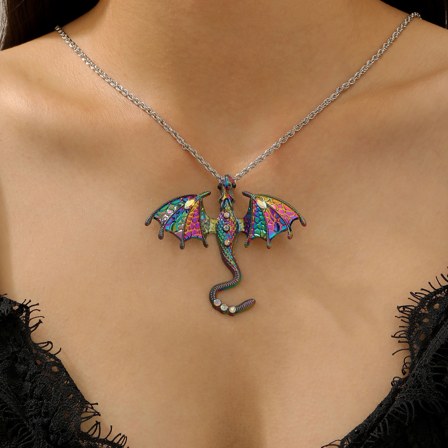 (necklace) antique silver colorful 12330