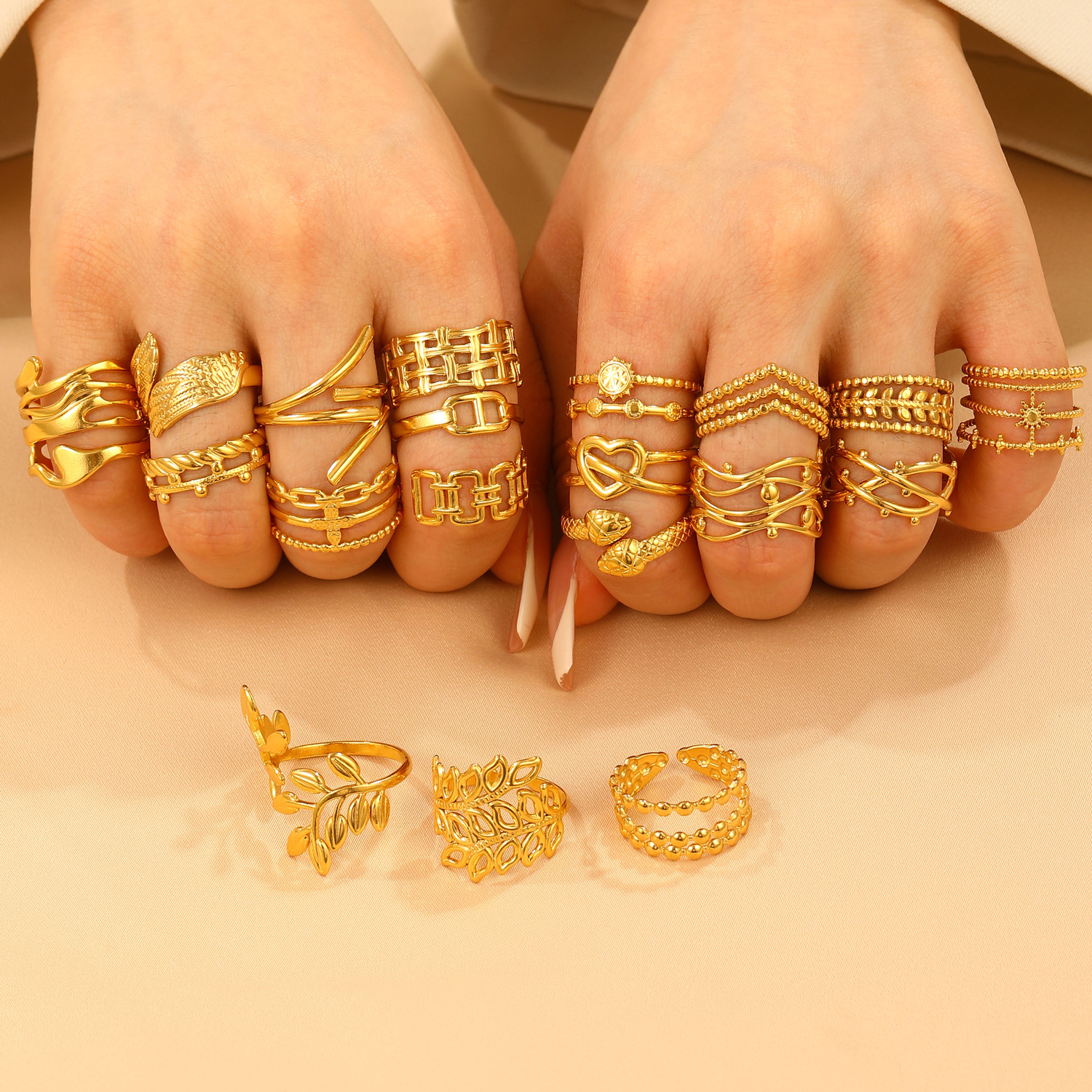 28 18k real gold three-layer hemp ring n-045