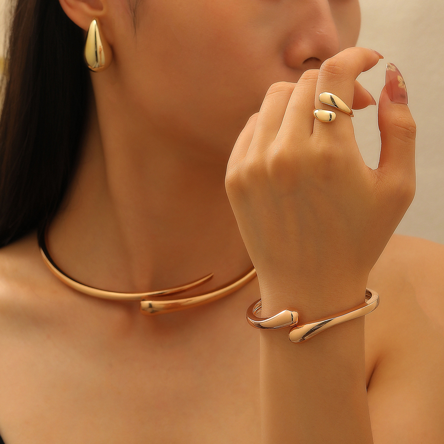 35 耳钉+项圈+大手镯+戒指