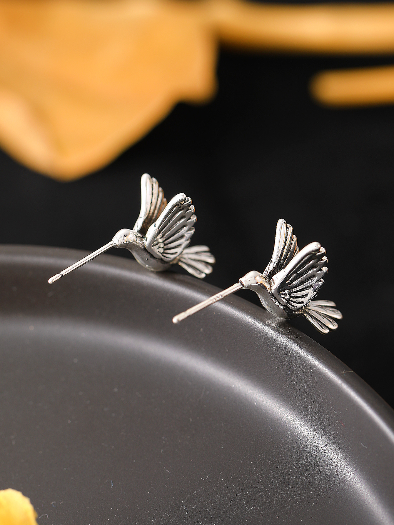 antique silver black flower a- 1330