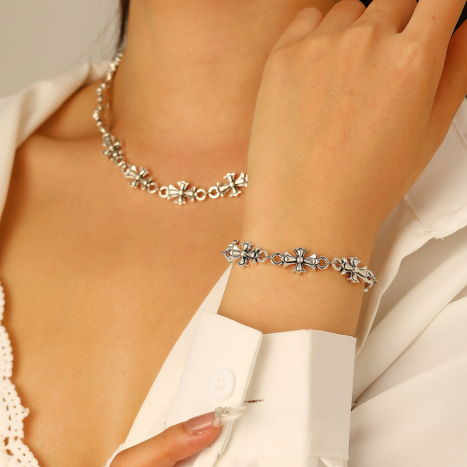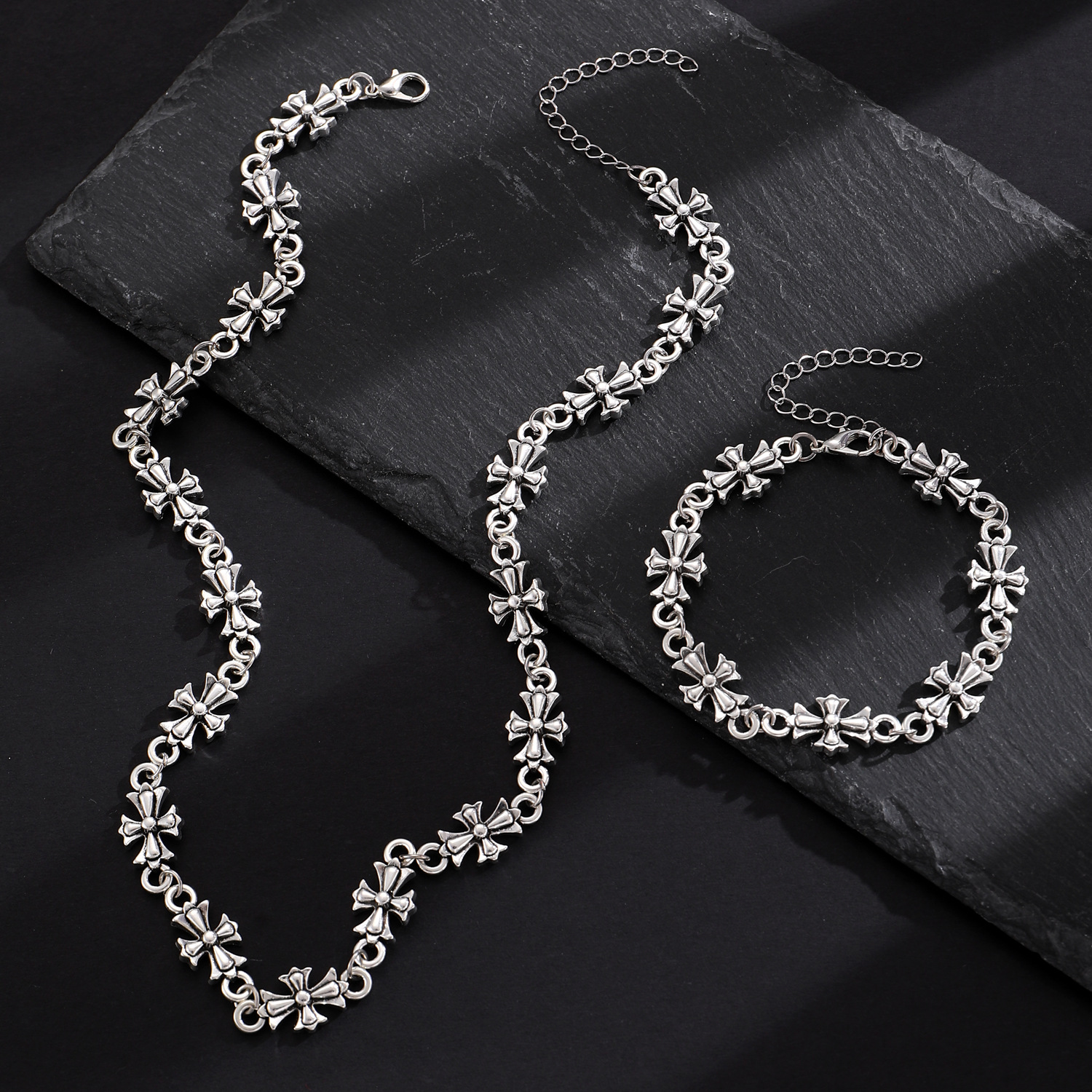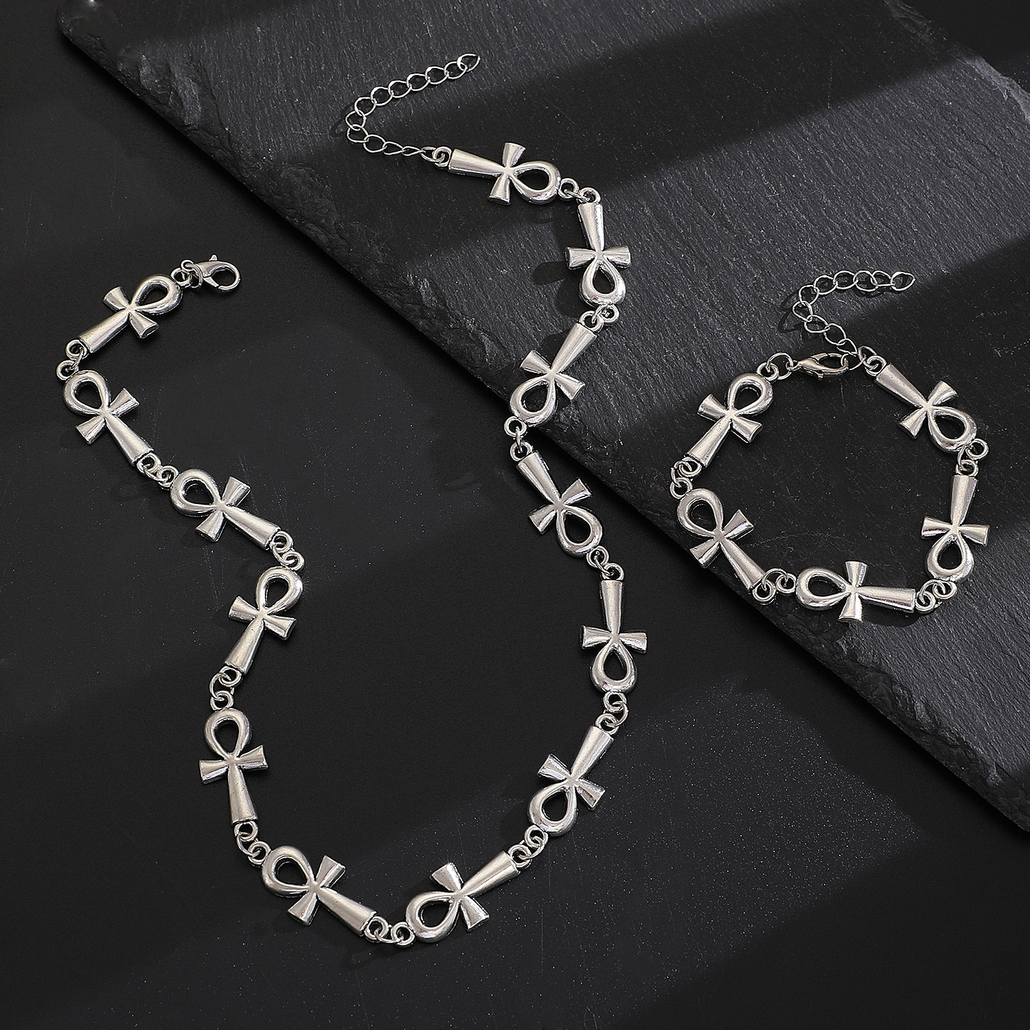 10 antique silver necklace, bracelet set (pattern)
