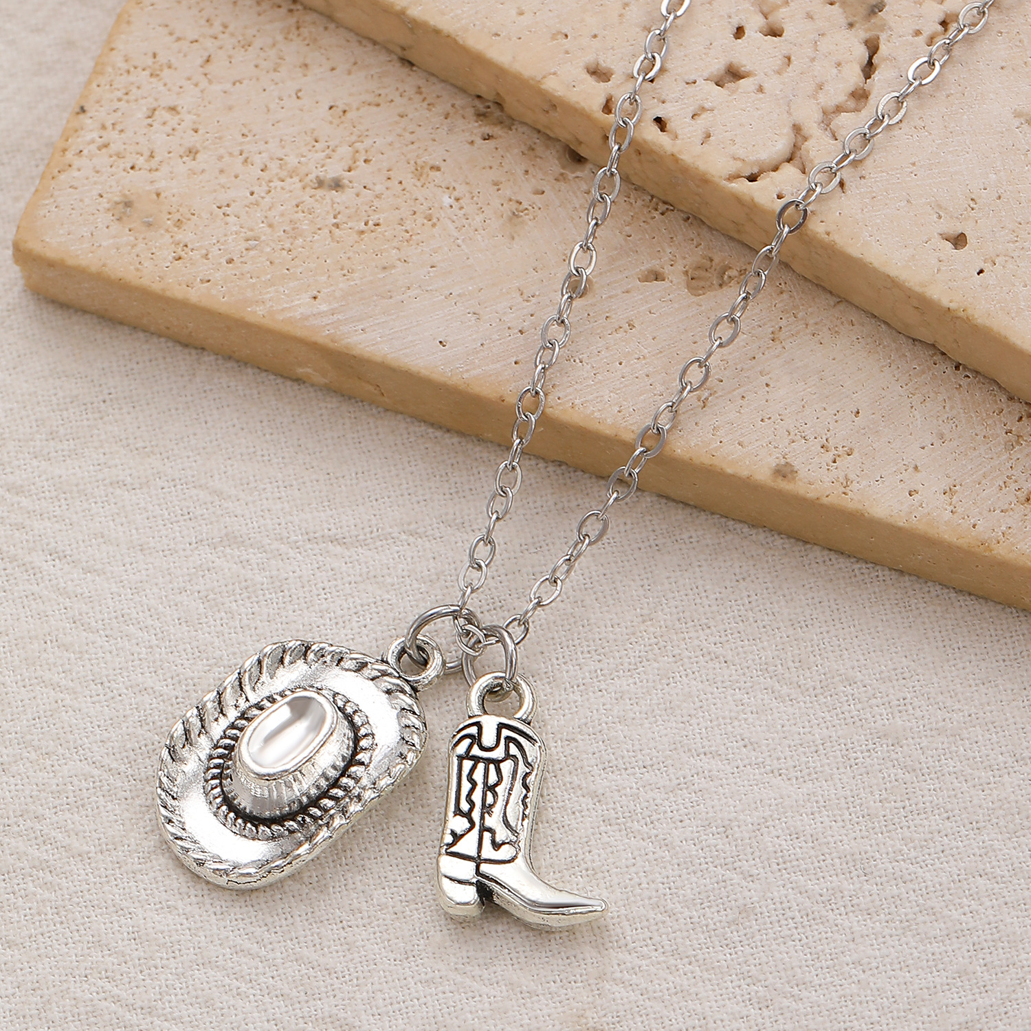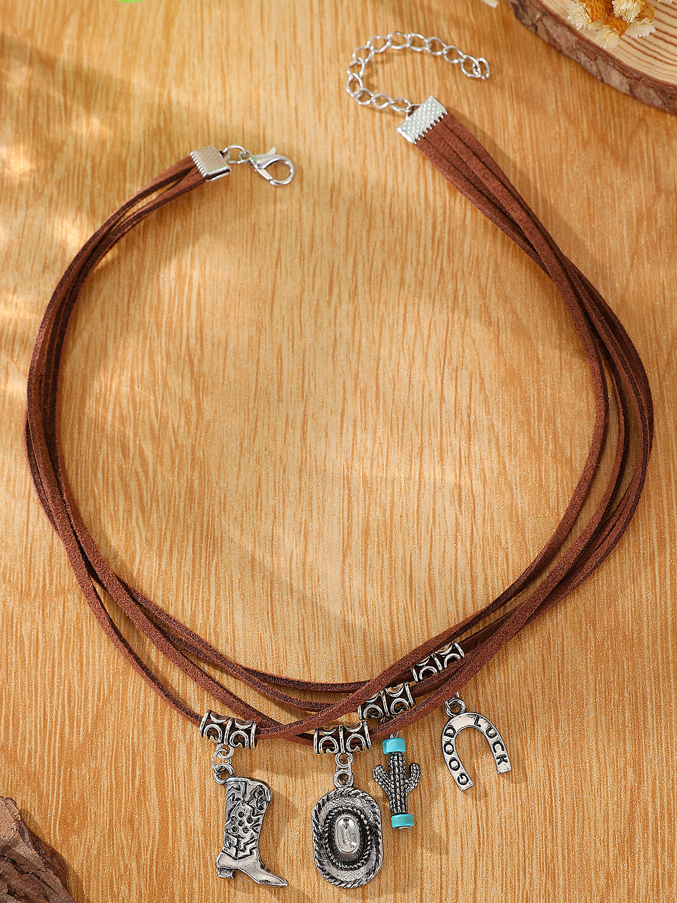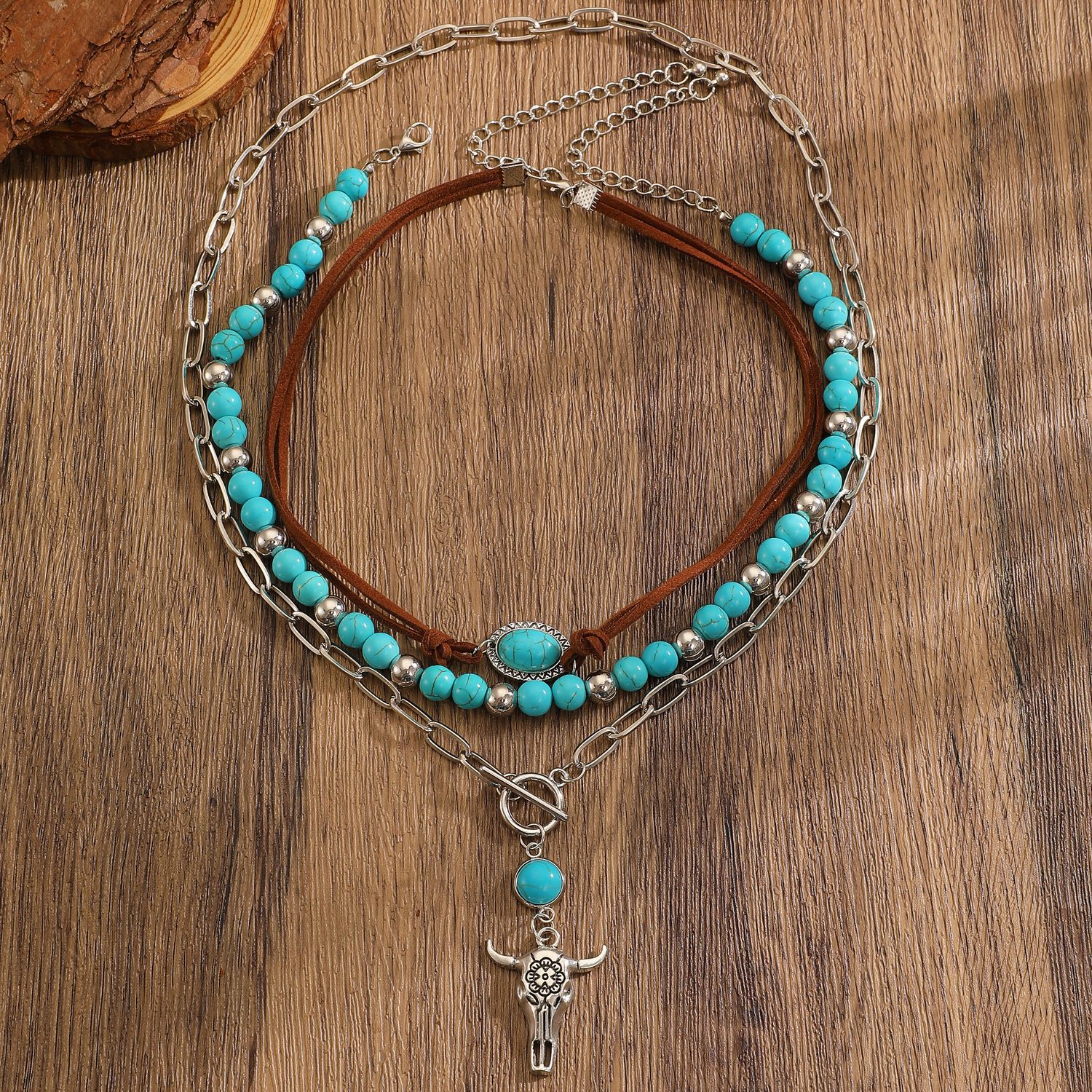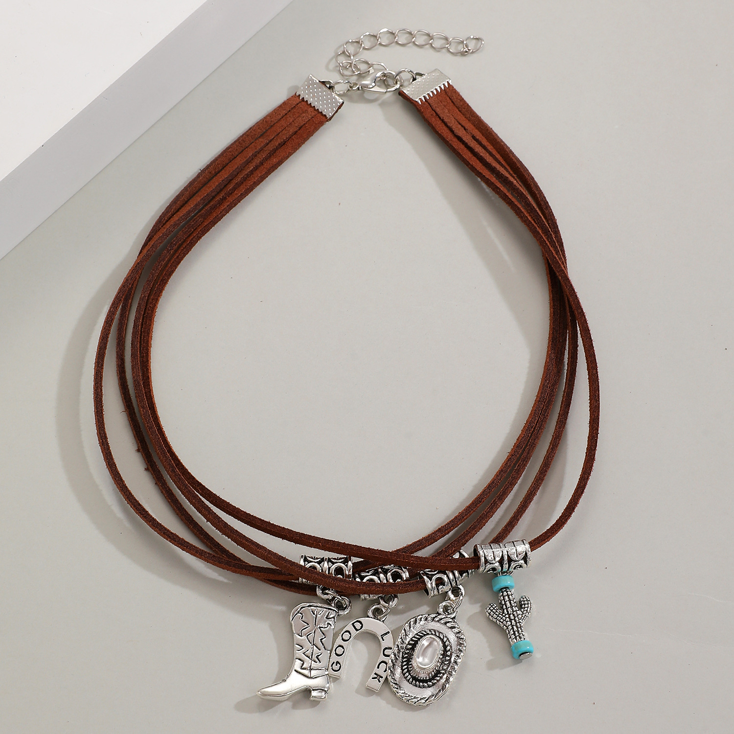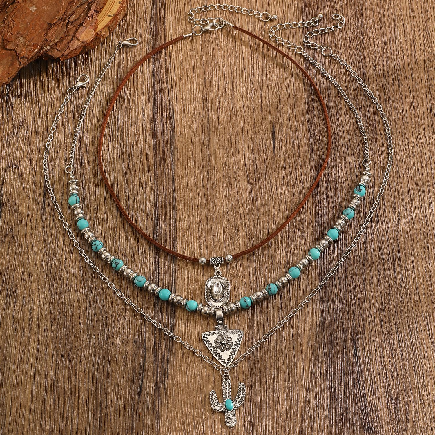 01 antique silver brown necklace 8877