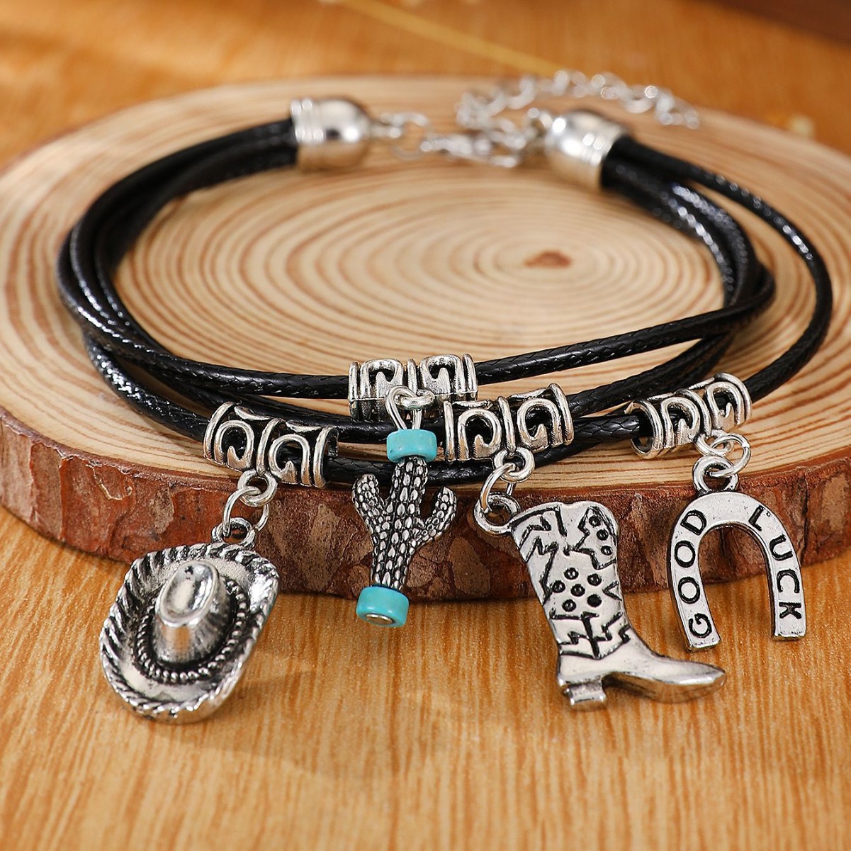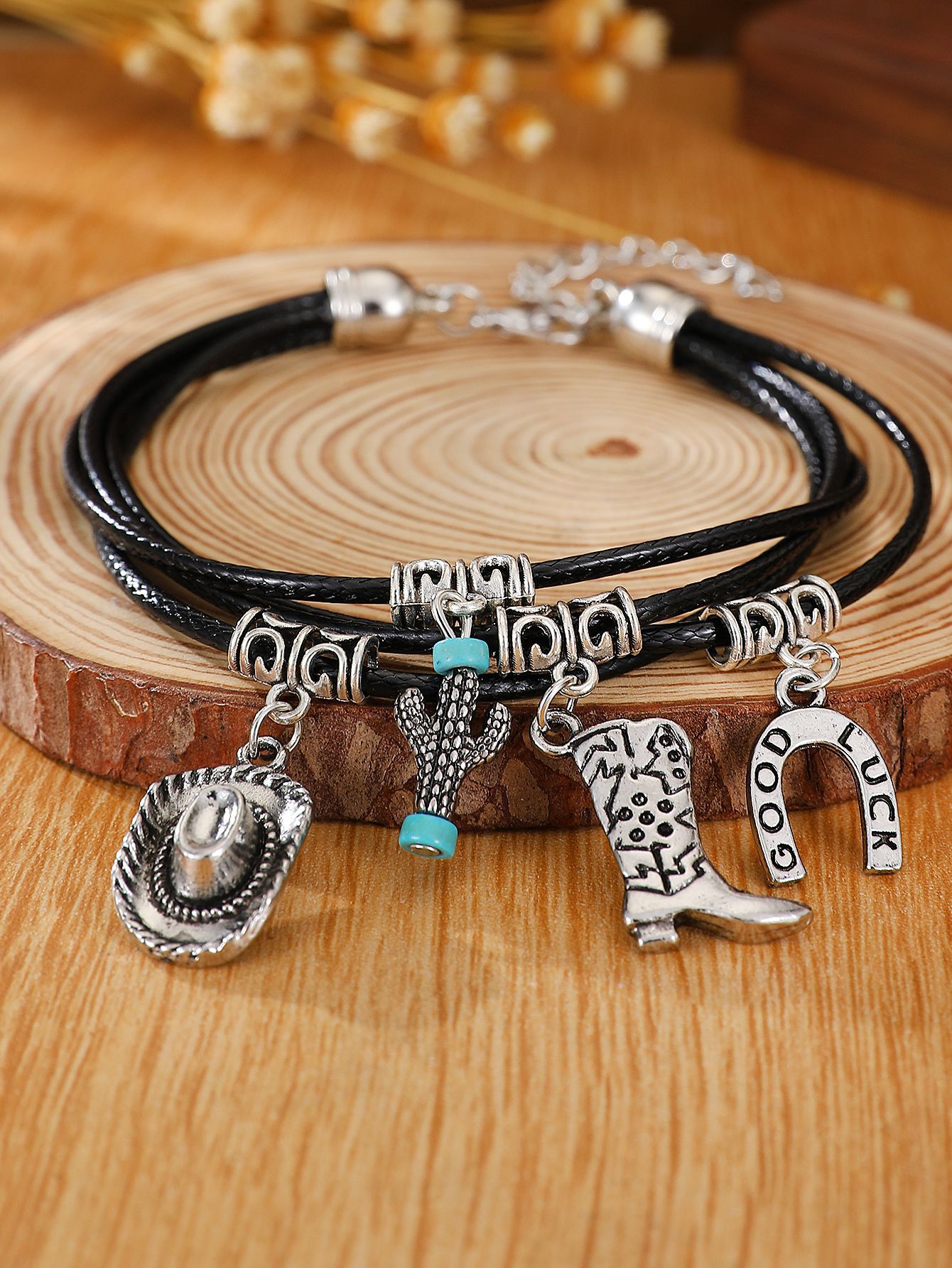 02 antique silver black bracelet 8732