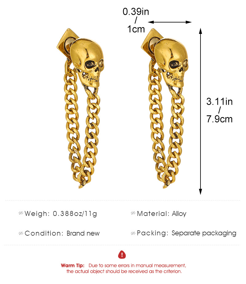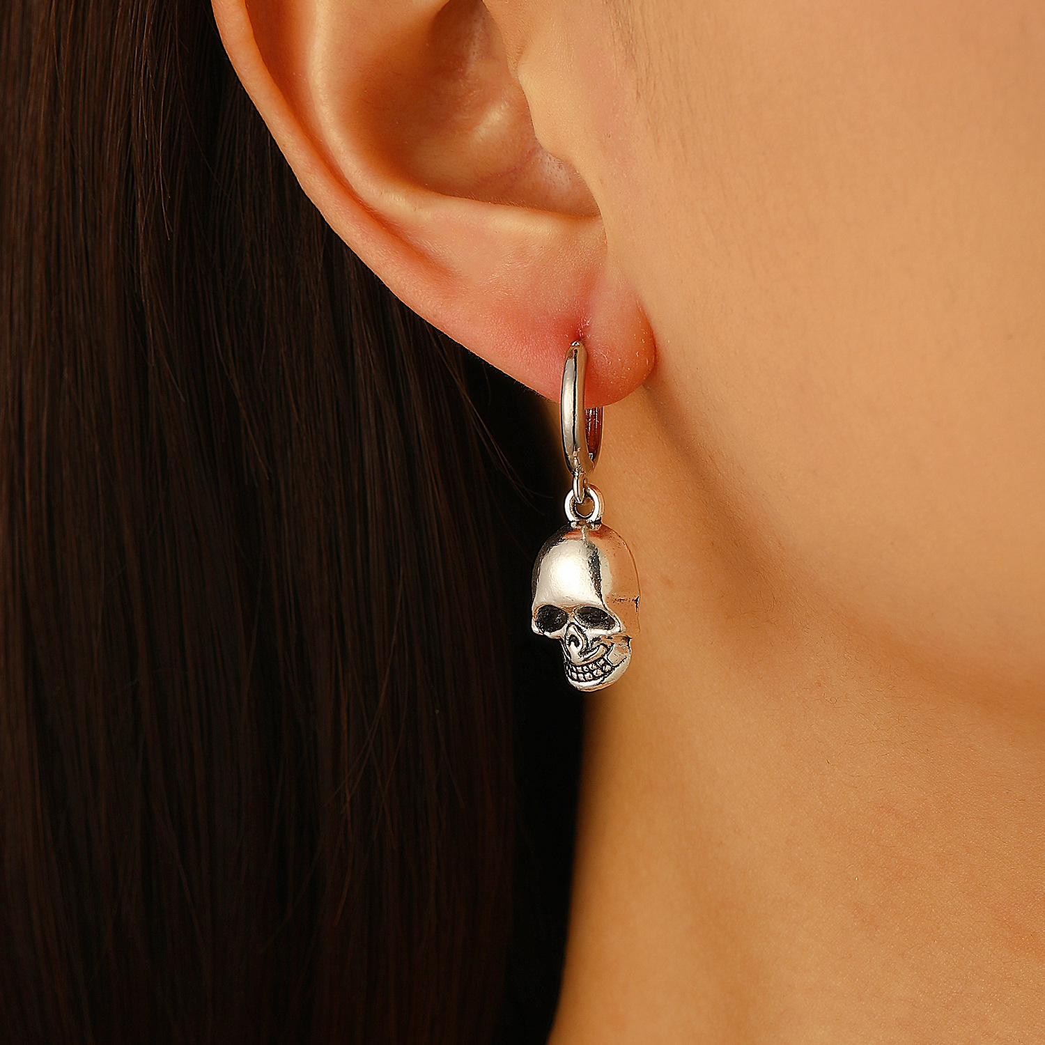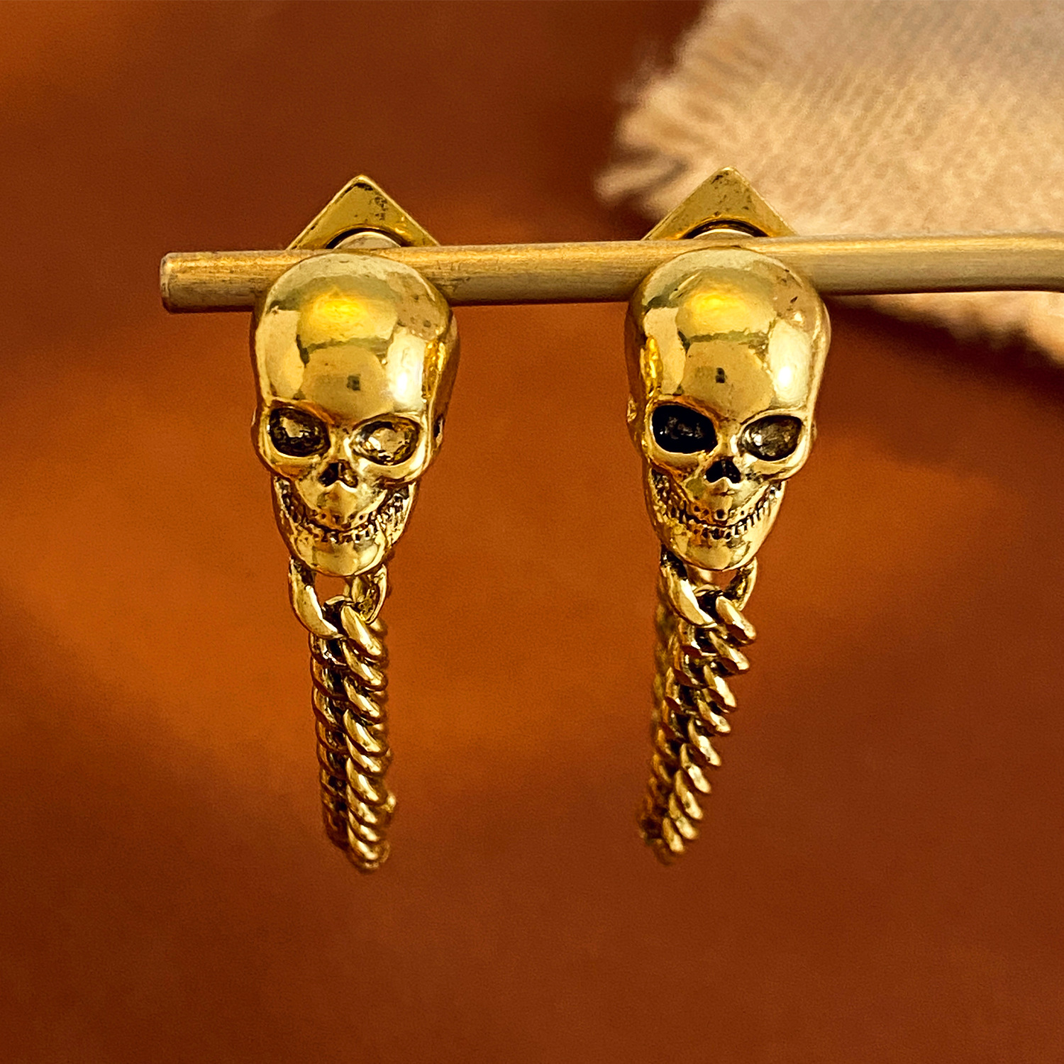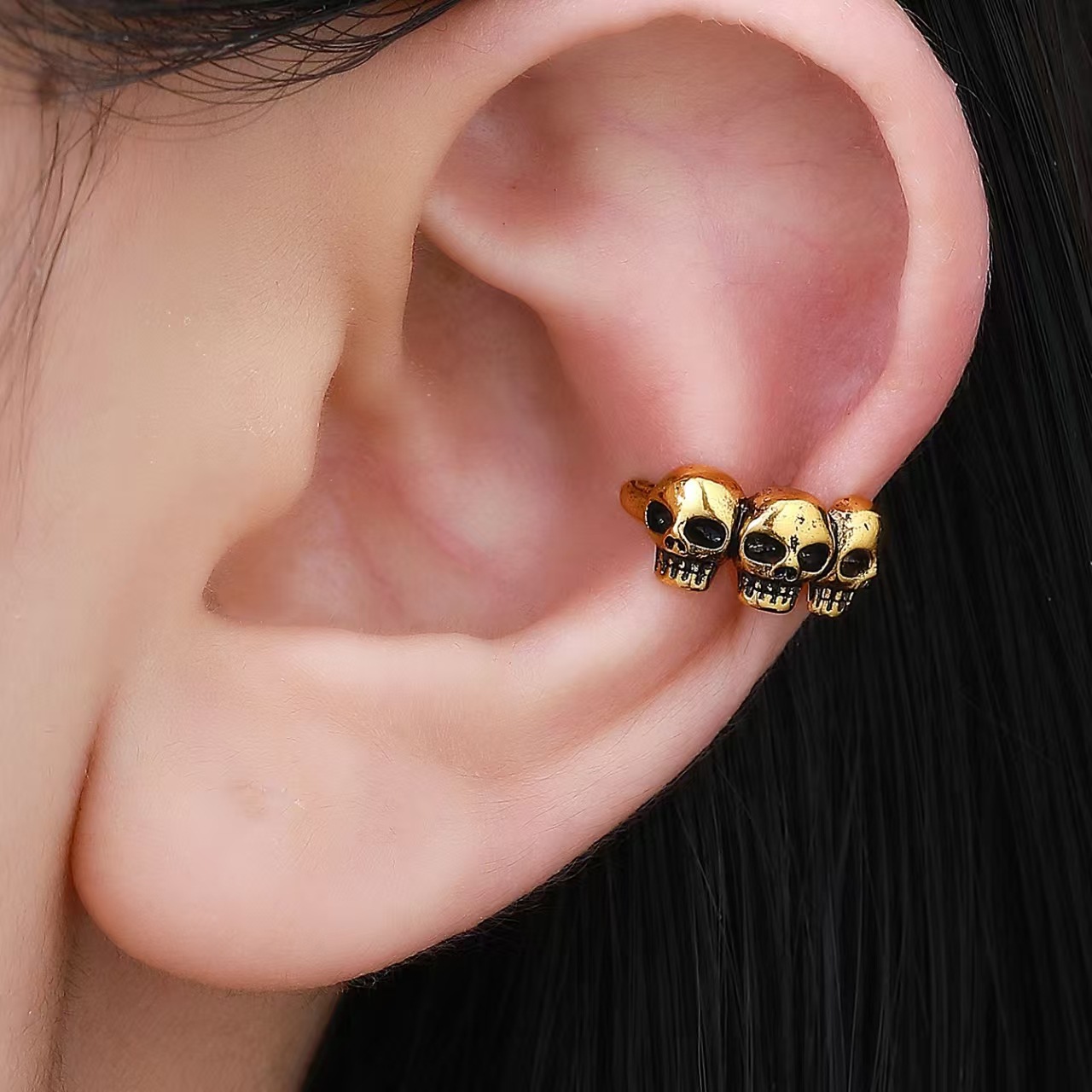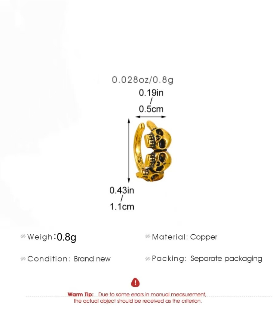 08 three skulls and two ear clips (copper)