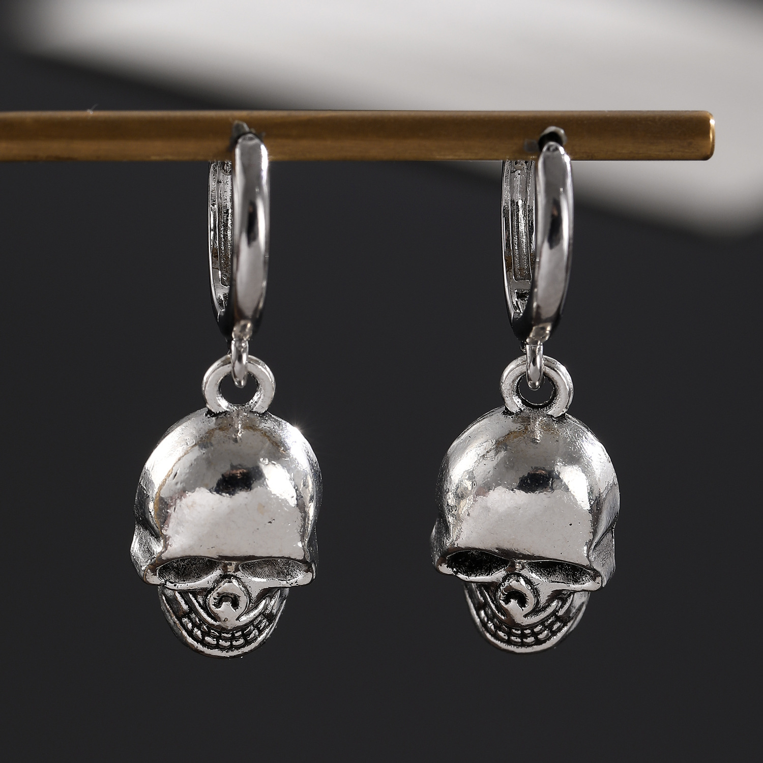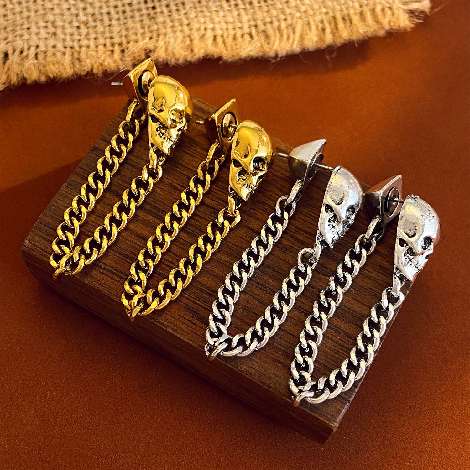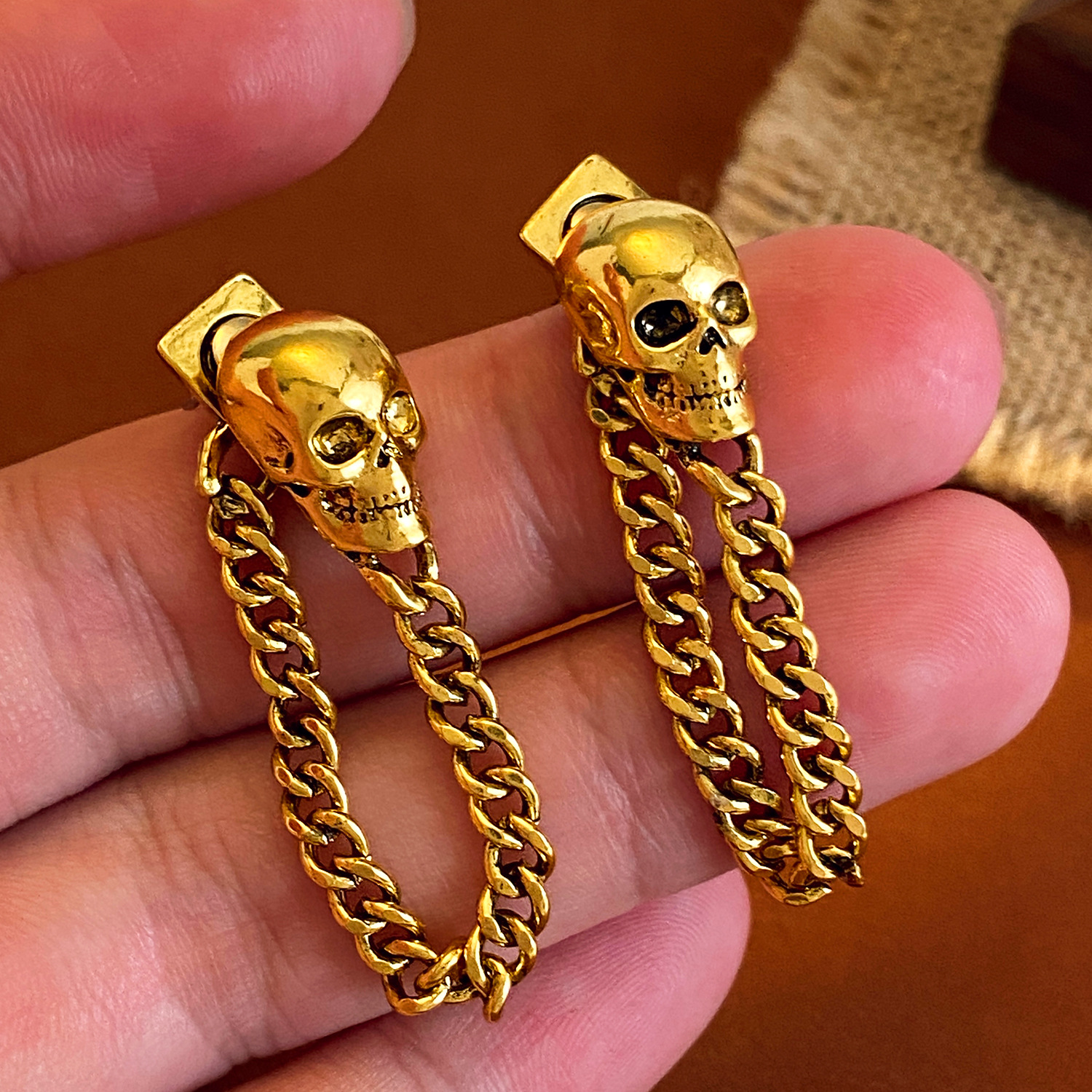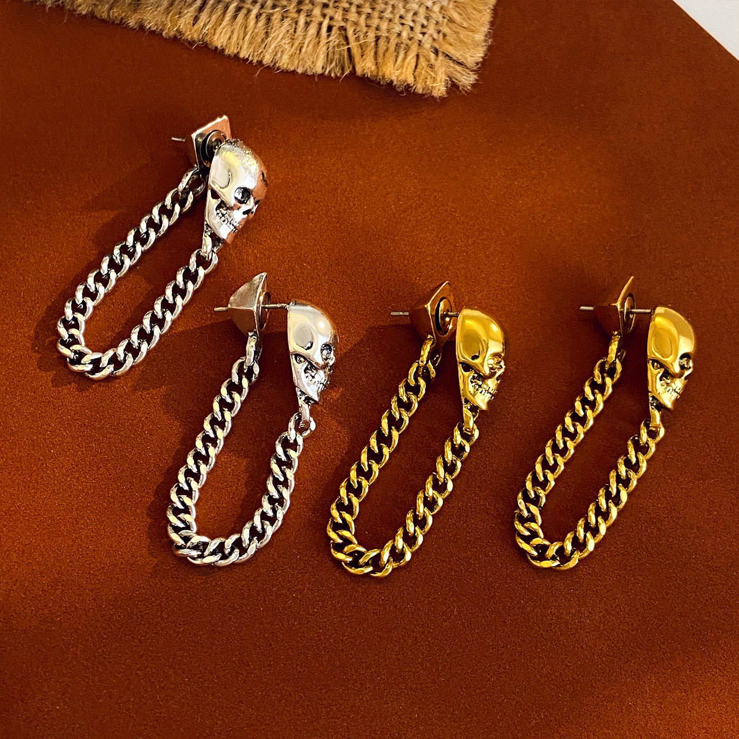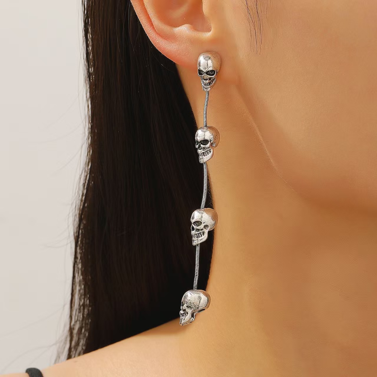 08 three skulls and two ear clips (copper)