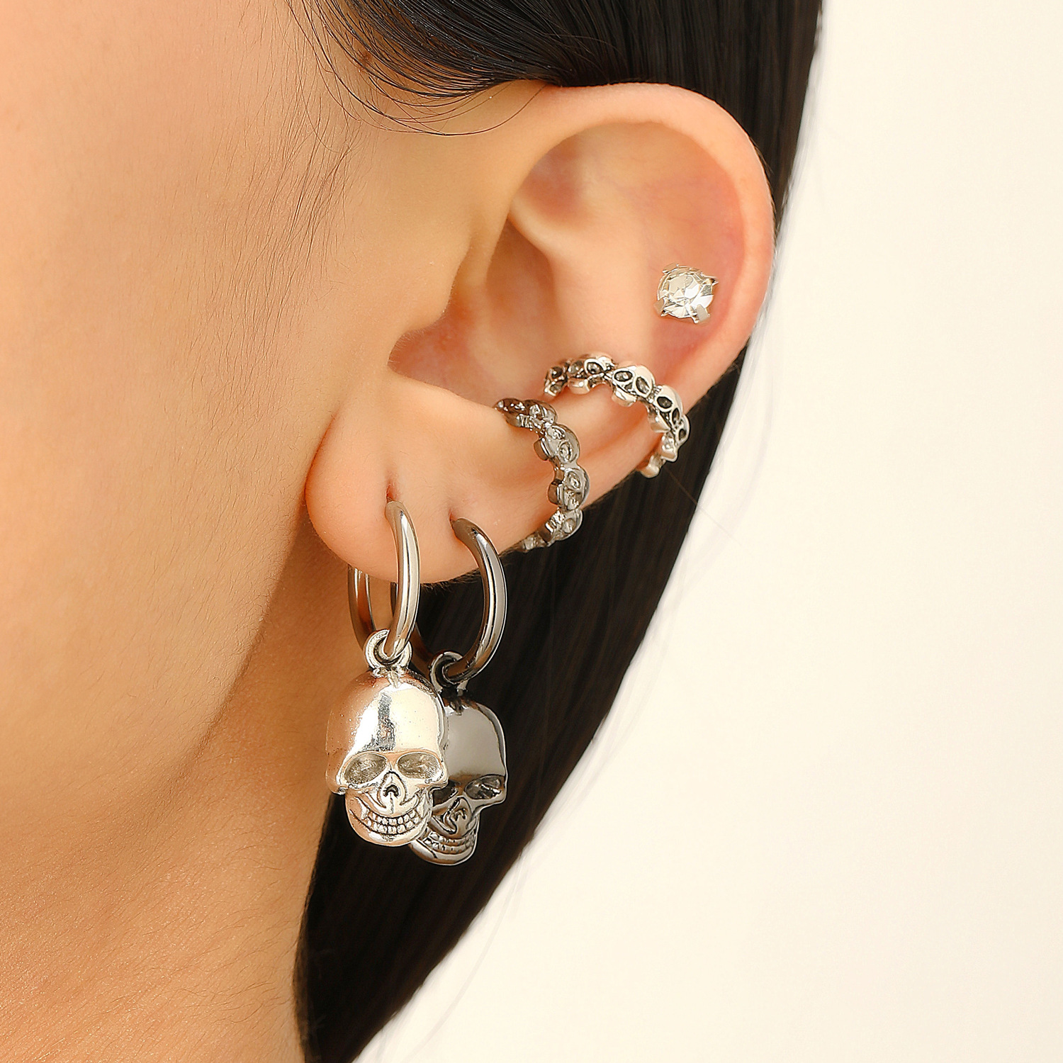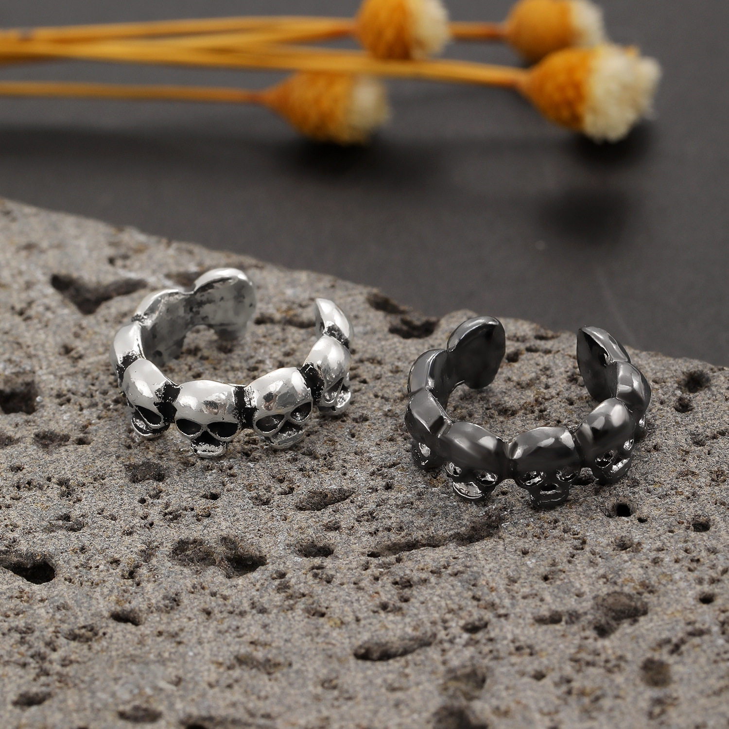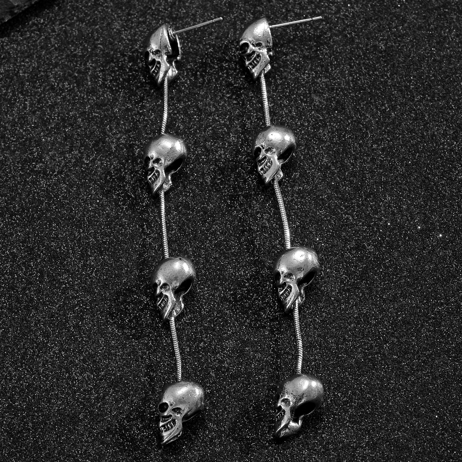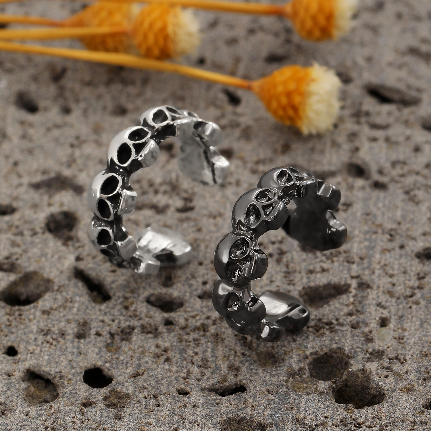 08 three skulls and two ear clips (copper)