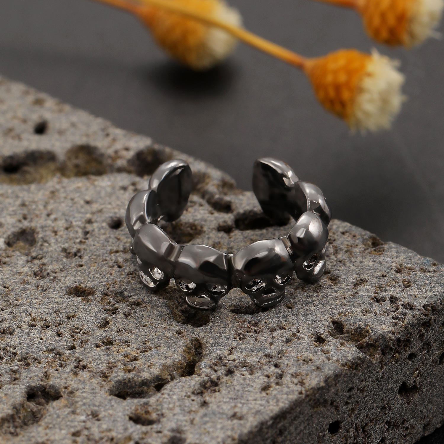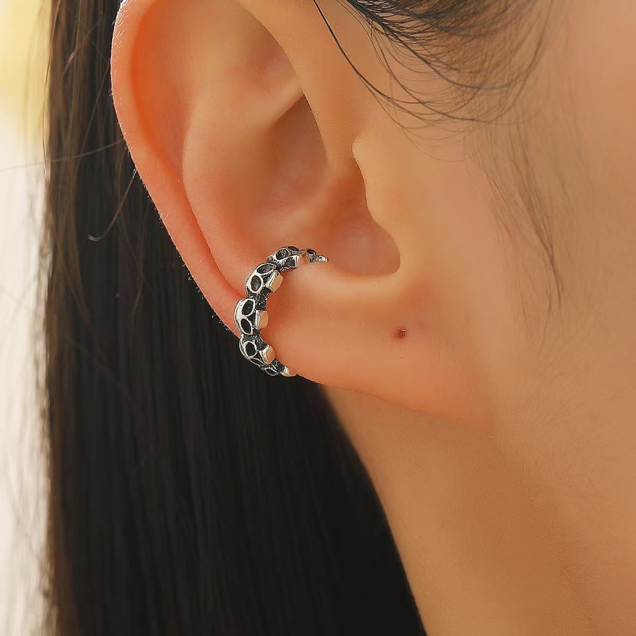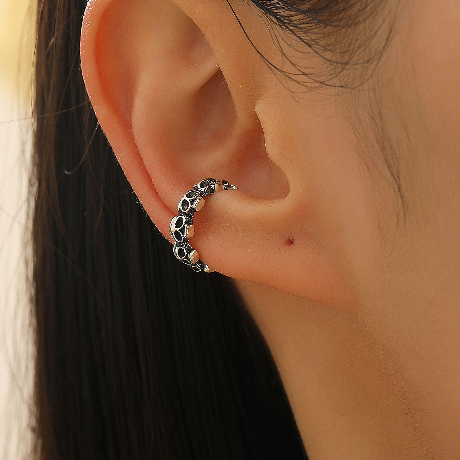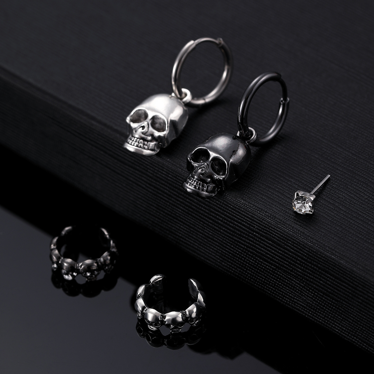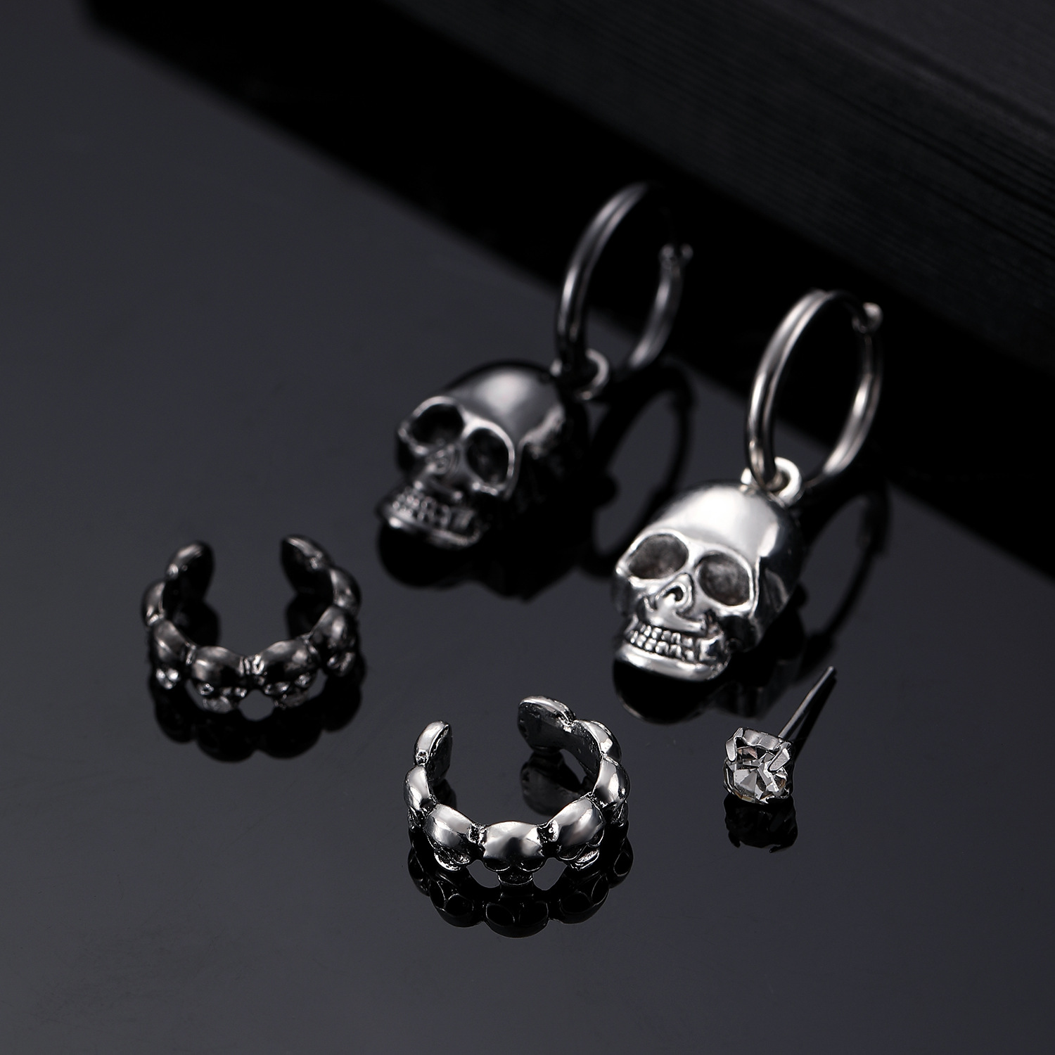 08 three skulls and two ear clips (copper)